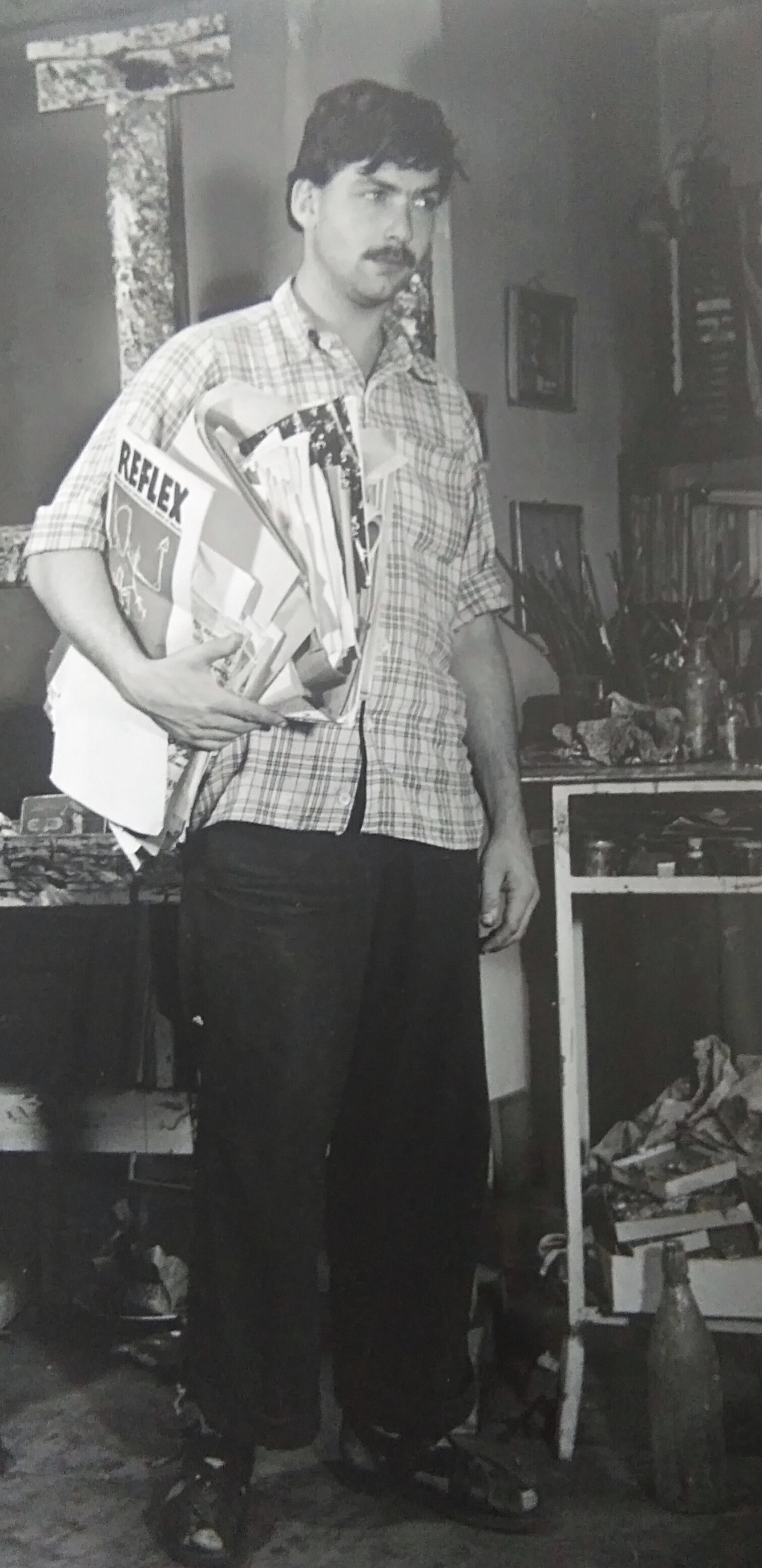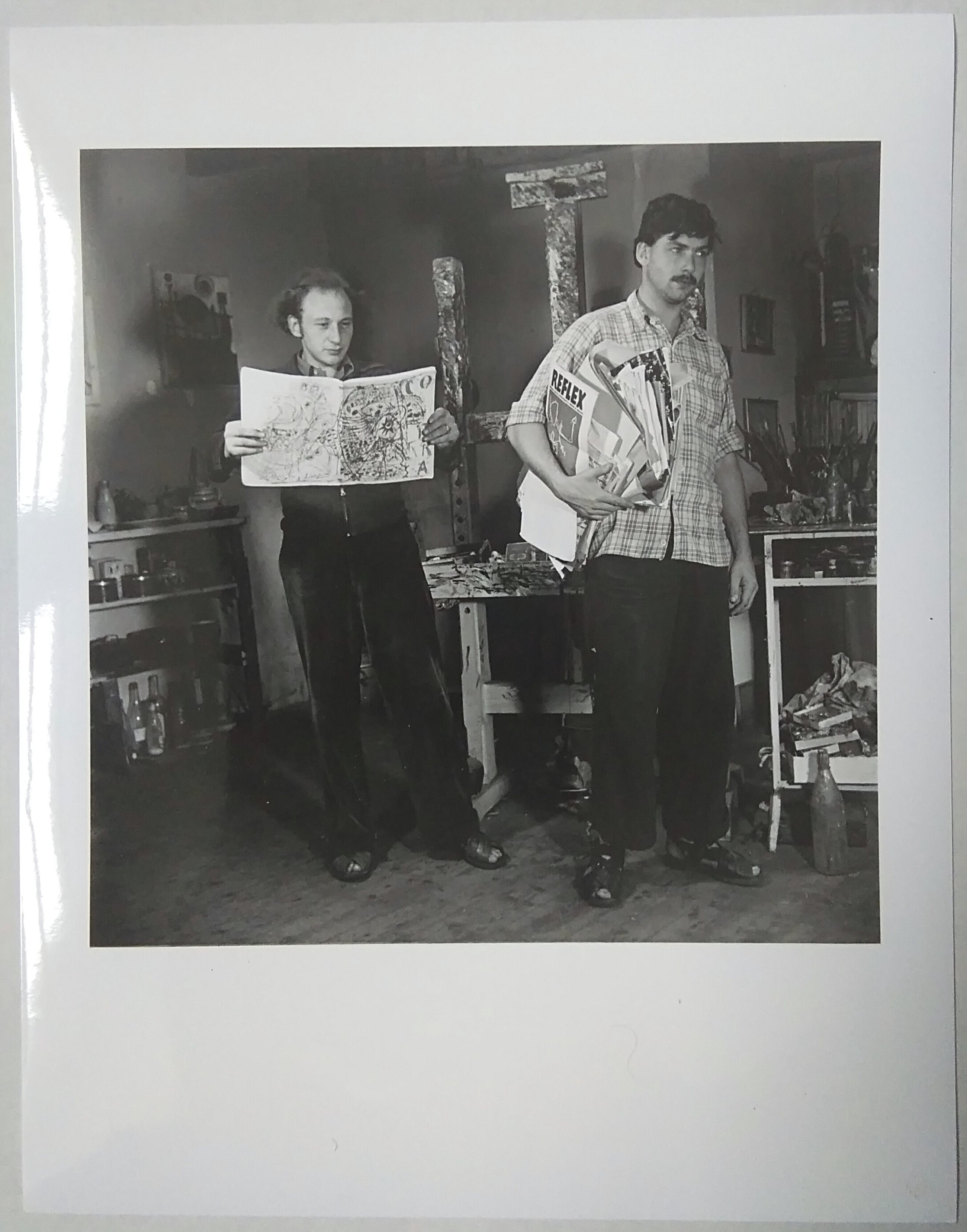 Henny Riemens Fotograaf. Fotoportret Karel Appel en Theo Wolvecamp. Afmetingen 24 x 30,5 cm. Zeer redelijke staat. Vintage afdruk jaren 90.