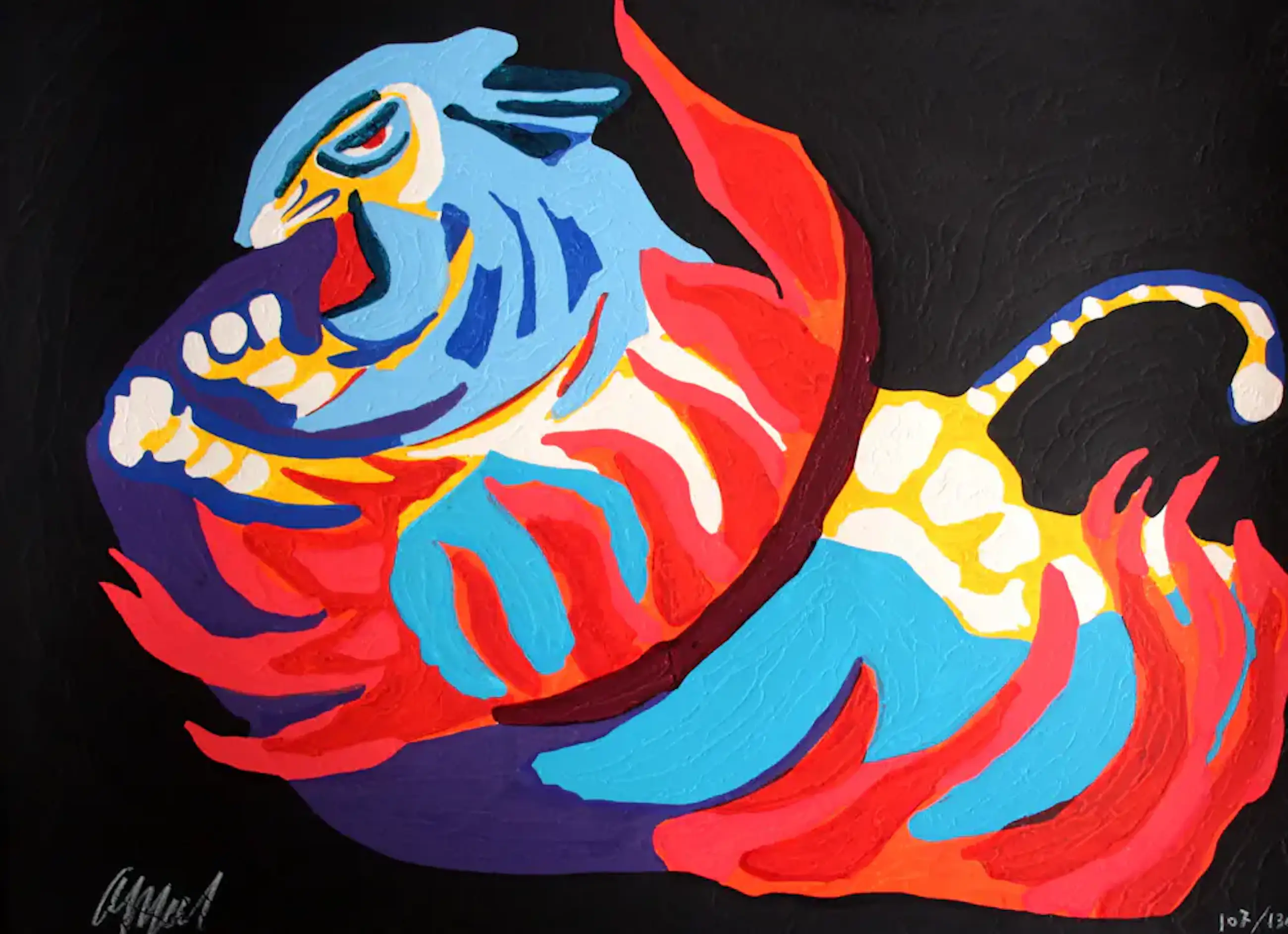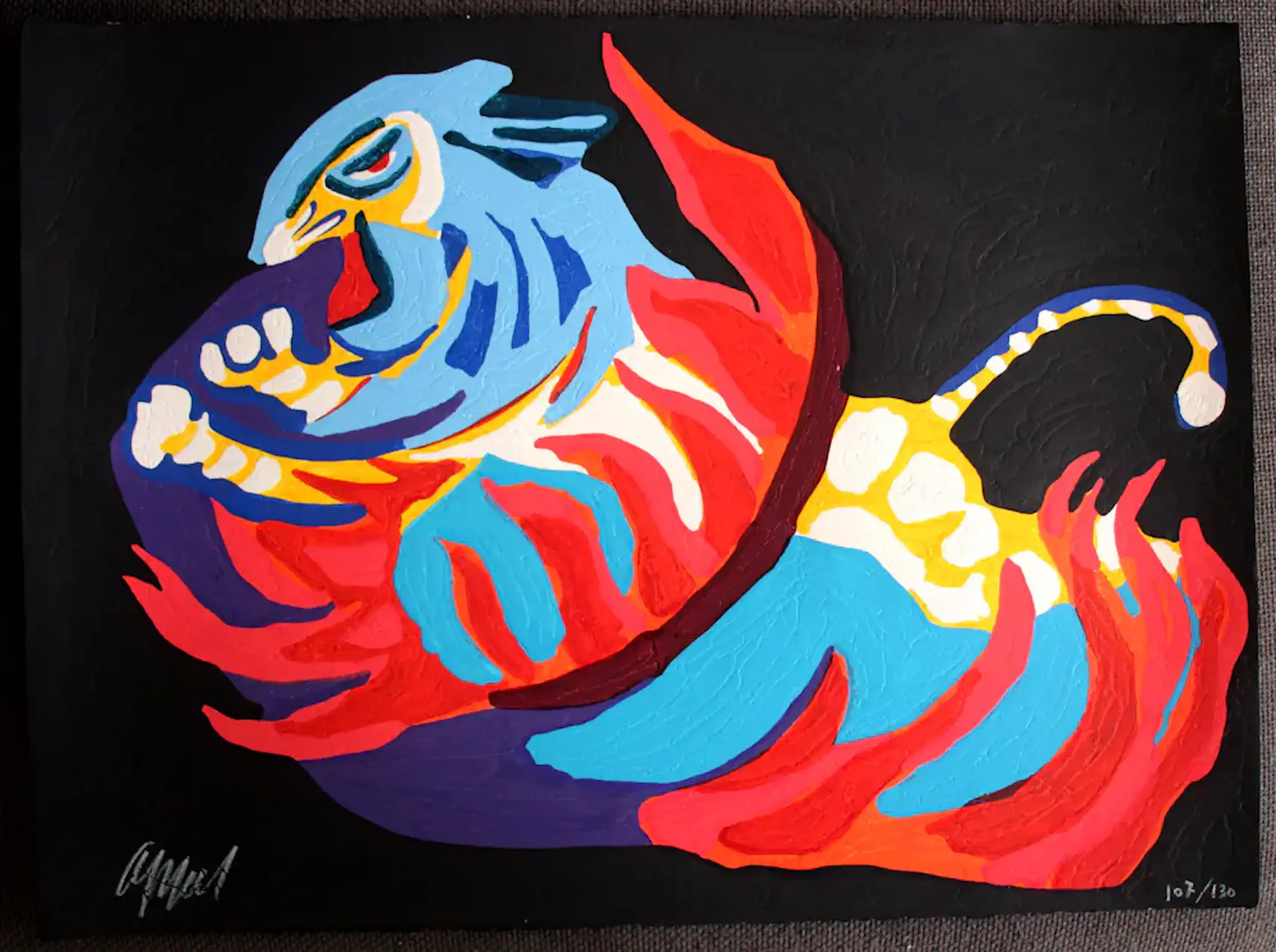 Karel Appel - Houtdruk met carborundum: Circus serie: Tigre de papier - 1978
