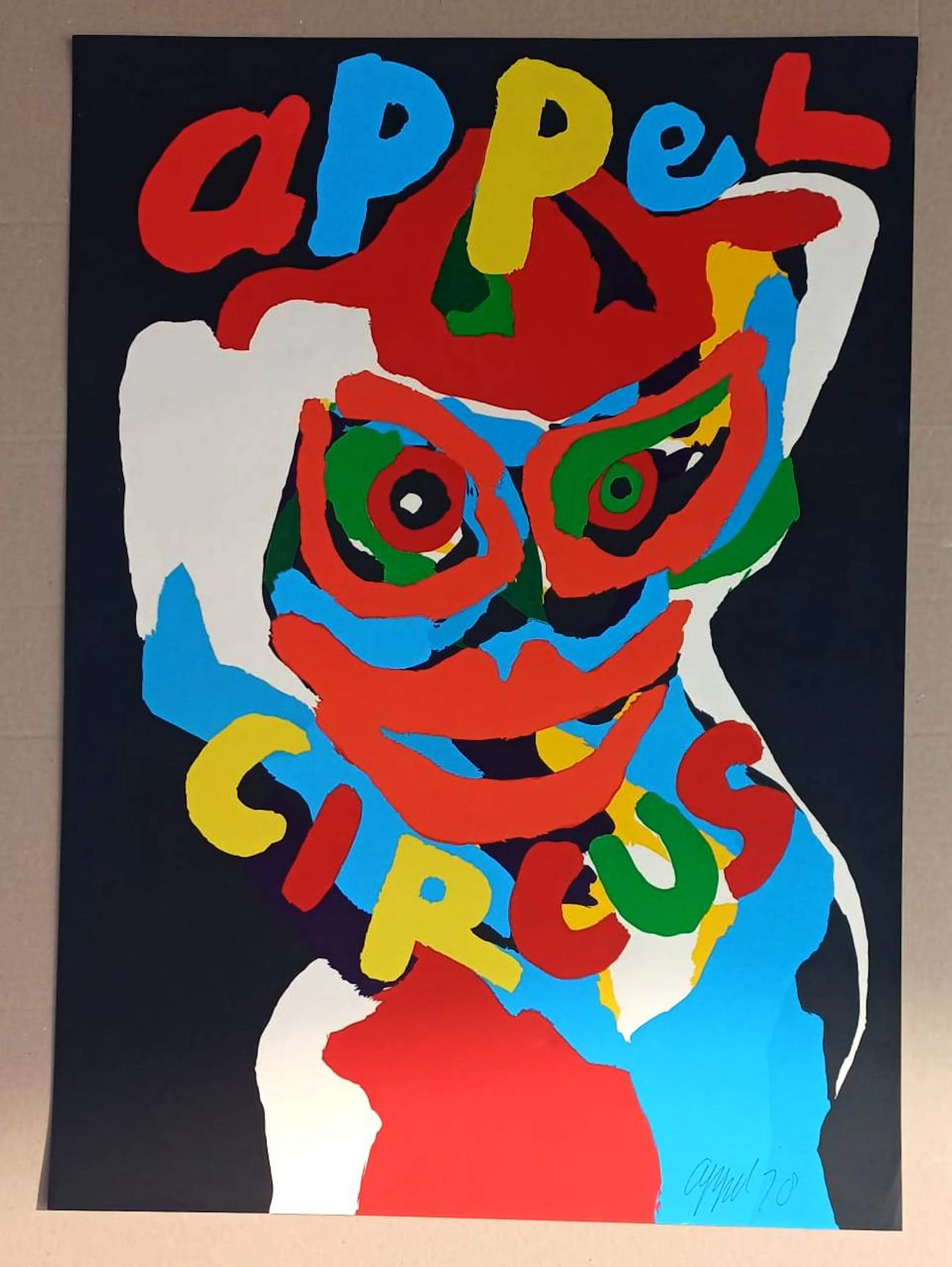 Houtsnede van Karel Appel. Titel: Circus. Jaar: 1978. Oplage: 76/200. Afmetingen blad: H84 x b61cm. Het werk is rechtsonder gesigneerd door Karel Appel. De authenticiteit van het aangeboden werk wordt volledig gegarandeerd. Een certificaat van echtheid kan, op aanvraag, worden gemaild.