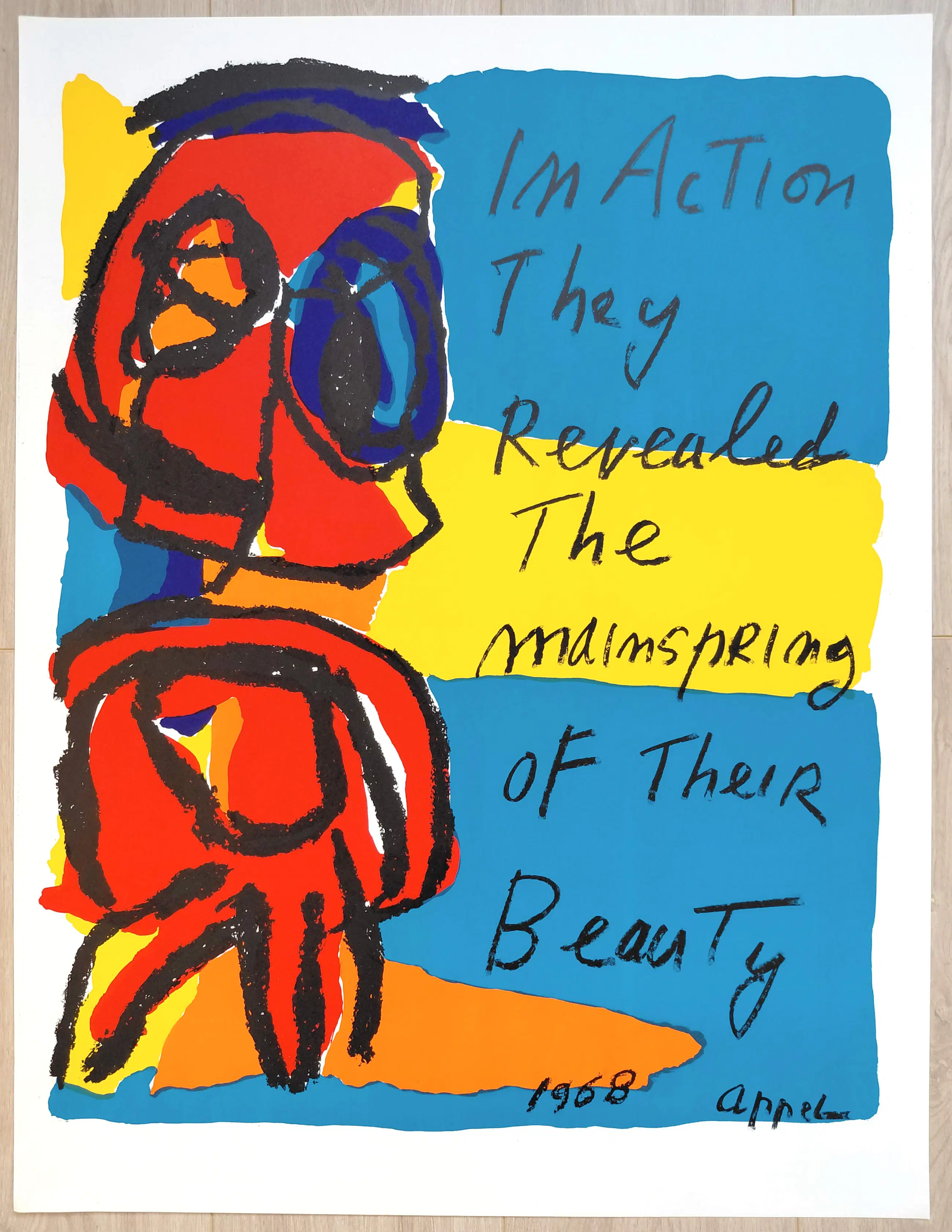 Wereldberoemde ‘studentenlitho’ uit 1968. Door Appel ontworpen in het voorjaar van 1968 tijdens de Franse studentenopstanden. Veel kunstenaars wilden hun solidariteit tonen en galerie Maeght gaf een reeks affiches uit naar ontwerpen van o.a. Alechinsky, Calder, Zao Wou-Ki en dus ook Appel.
