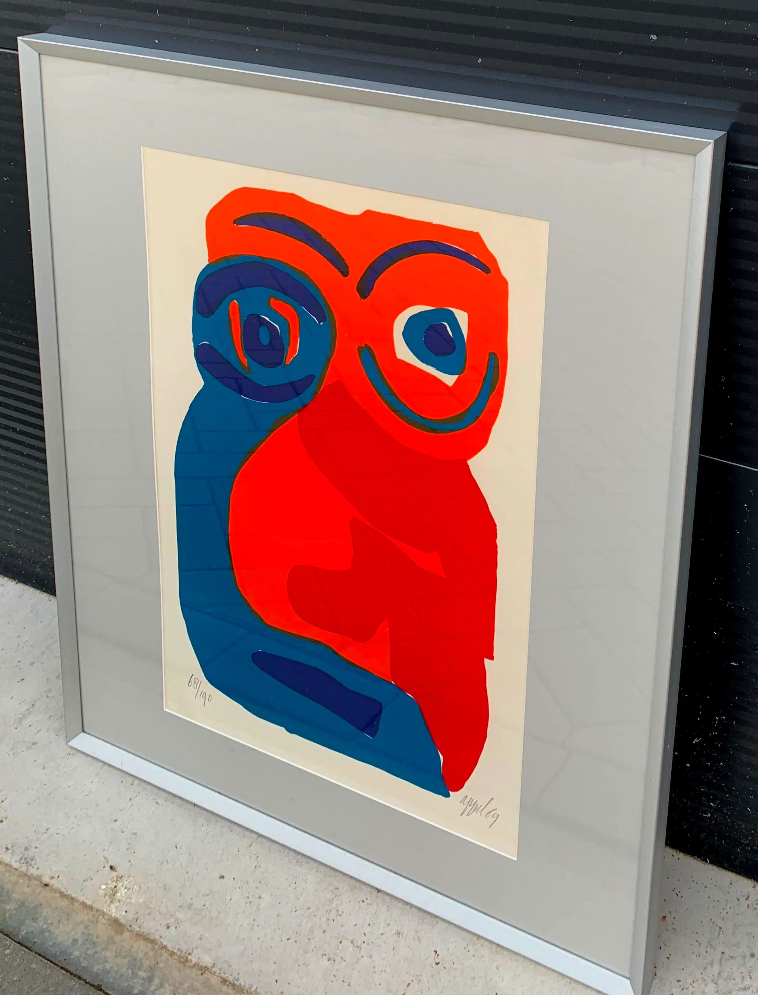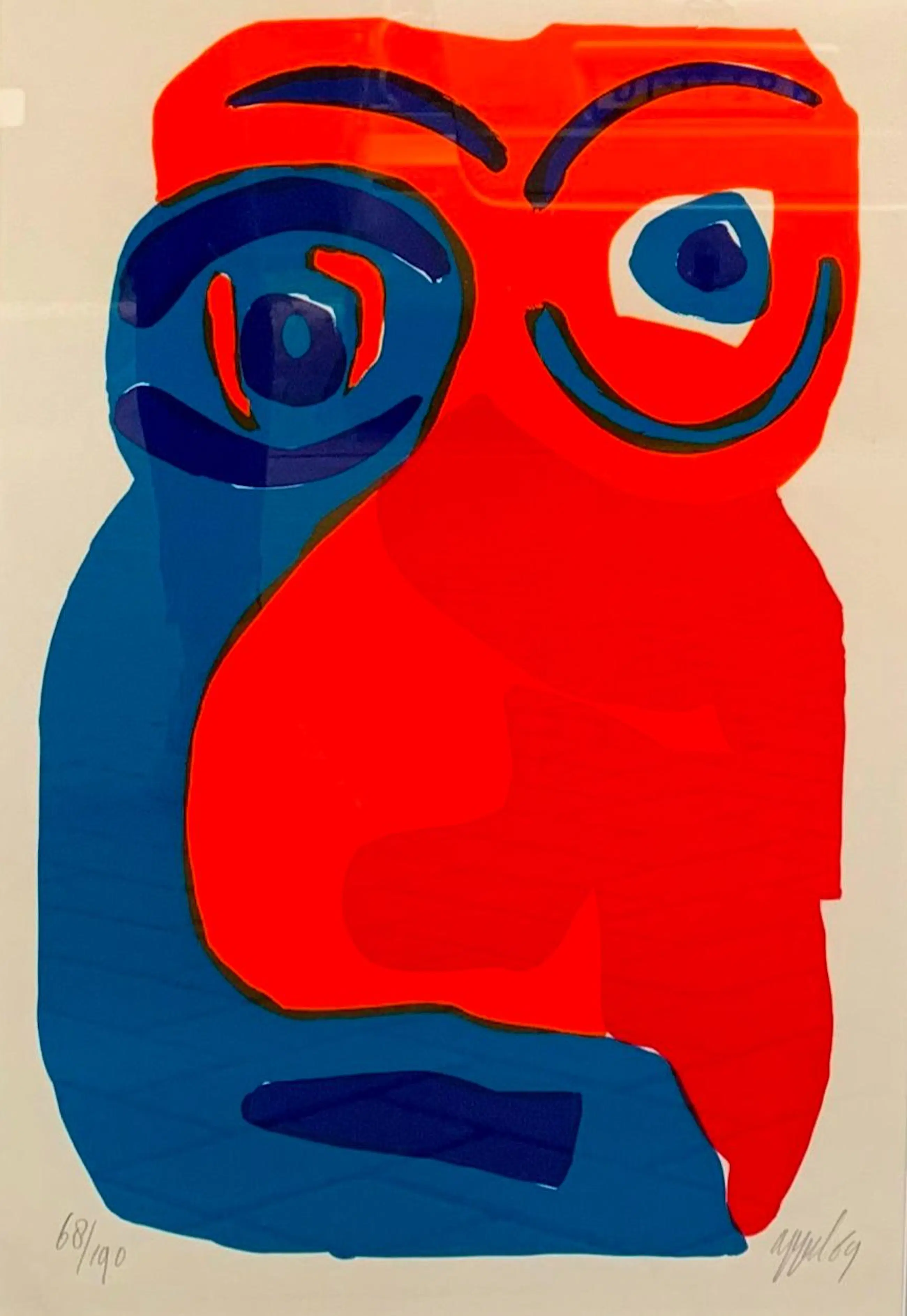 Ingelijste kleurenlitho van Karel Appel. Titel: Happy face. Jaar: 1969. Oplage: 68/190. Afmetingen incl lijst: H71 x b61cm. Afmetingen voorstelling: H50 x b33cm. Het werk is rechtsonder gesigneerd door Karel Appel. De authenticiteit van het aangeboden werk wordt volledig gegarandeerd. Een certificaat van echtheid kan, op aanvraag, worden gemaild.