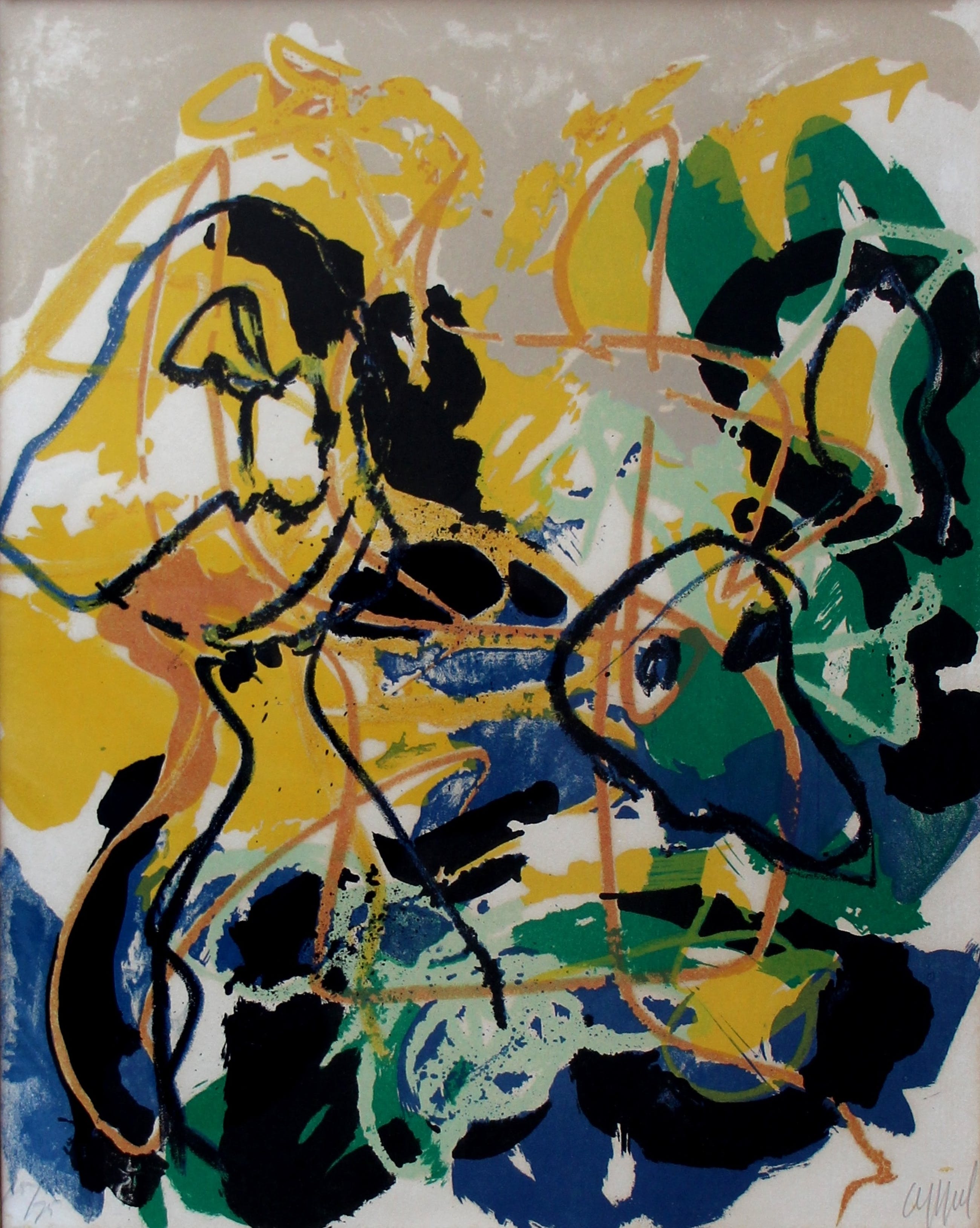 Oude litho van Karel Appel uit 1961. Titel: A beast drawn man. Nummer: 75/75. Het werk verdient absoluut een betere lijst en pass- partout. Het is nu ingelijst in de oorspronkelijke lijst it de 60 'er jaren. De authenticiteit van het aangeboden werk wordt voor 100% gegarandeerd. Een certificaat van echtheid kan, op aanvraag worden gemaild.