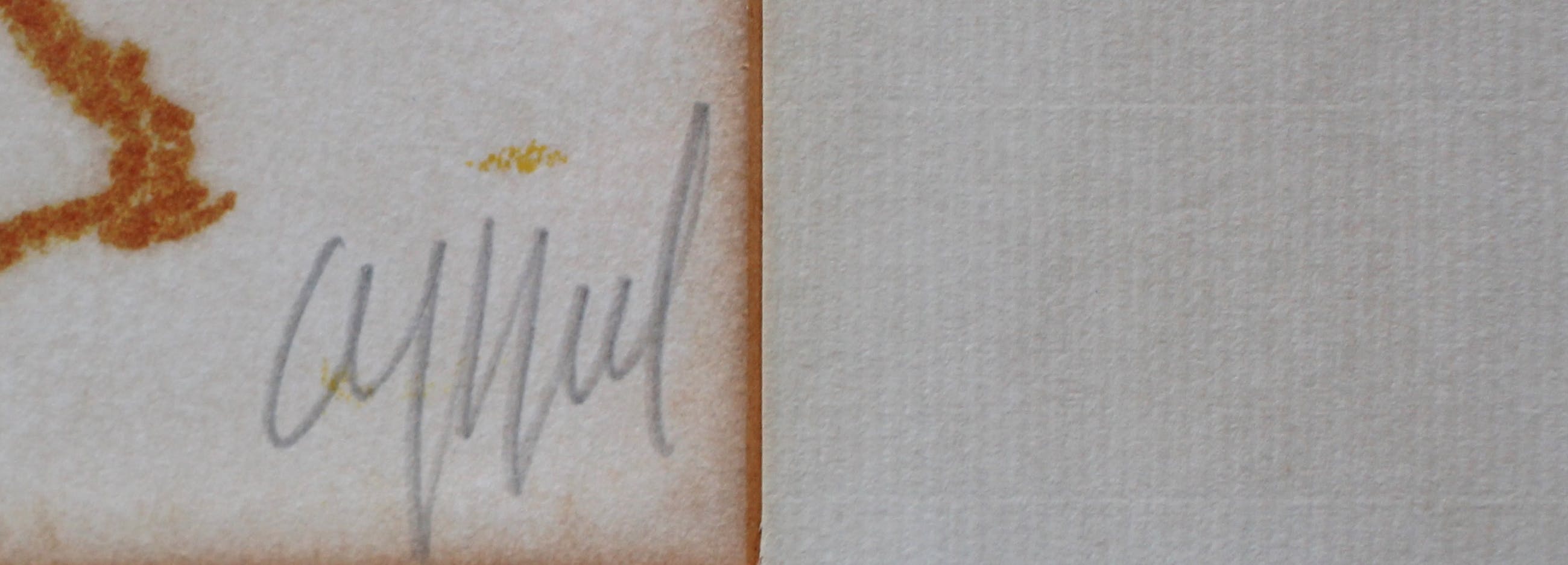 Het werk is licht verkleurd binnen de randen van het passe-partout, goed ingelijst met nieuw passe-partout valt dit niet meer op.