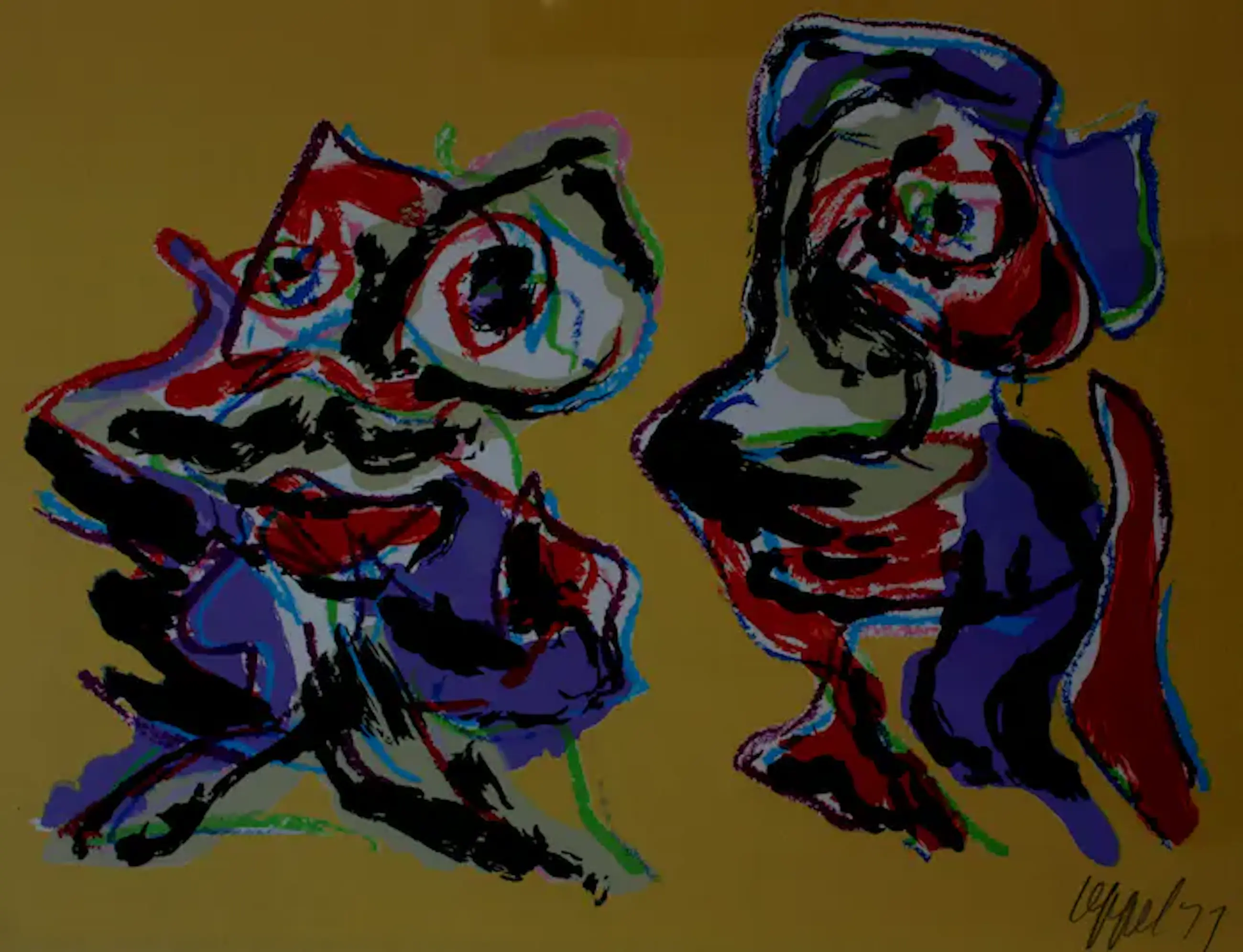 Ingelijste litho van karel Appel. Jaar: 1977. Oplage: 2/75. Titel: Oiseau Hurlant. Afmetingen incl lijst: H68 x b83cm. Afmetingen voorstelling: H37 x b55cm. Het werk is rechts onderaan gesigneerd door de kunstenaar. De authenticiteit van het aangeboden werk wordt volledig gegarandeerd. Een certificaat van echtheid wordt meegeleverd (Kiewit Kunst).