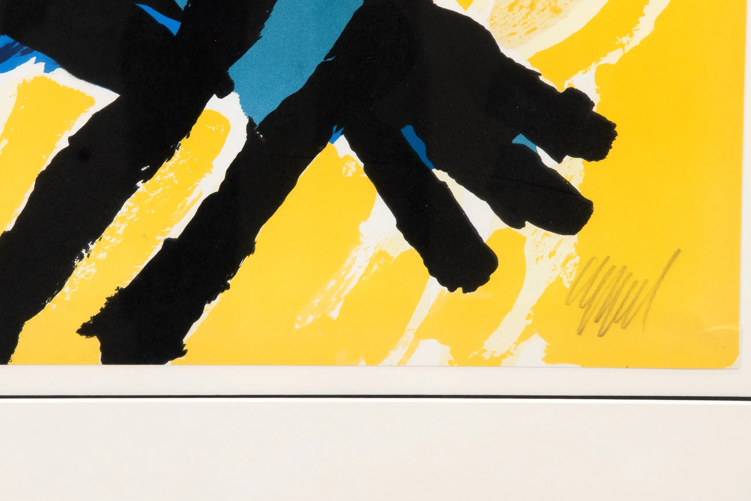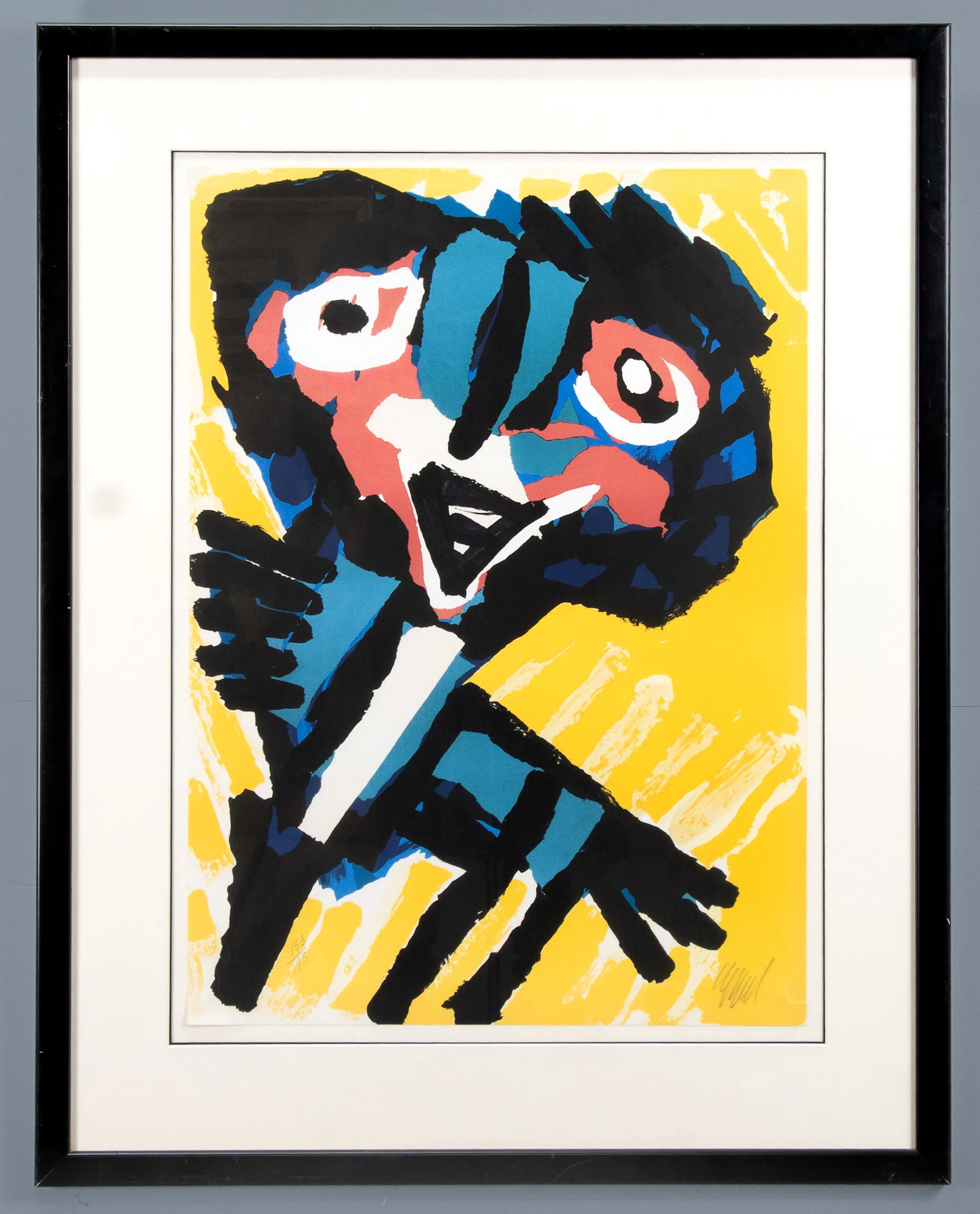 Ingelijste zeefdruk van Karel Appel. Voorstelling van een dansend meisje. Oplage: 153/175. Afmetingen incl lijst: H101 x b79.5cm. Afmetingen incl lijst: H76 x b53cm. Het werk is rechtsonder gesigneerd en gedateerd door de kunstenaar. De authenticiteit van het aangeboden werk wordt volledig gegarandeerd. Een certificaat van echtheid kan, op aanvraag, worden gemaild.