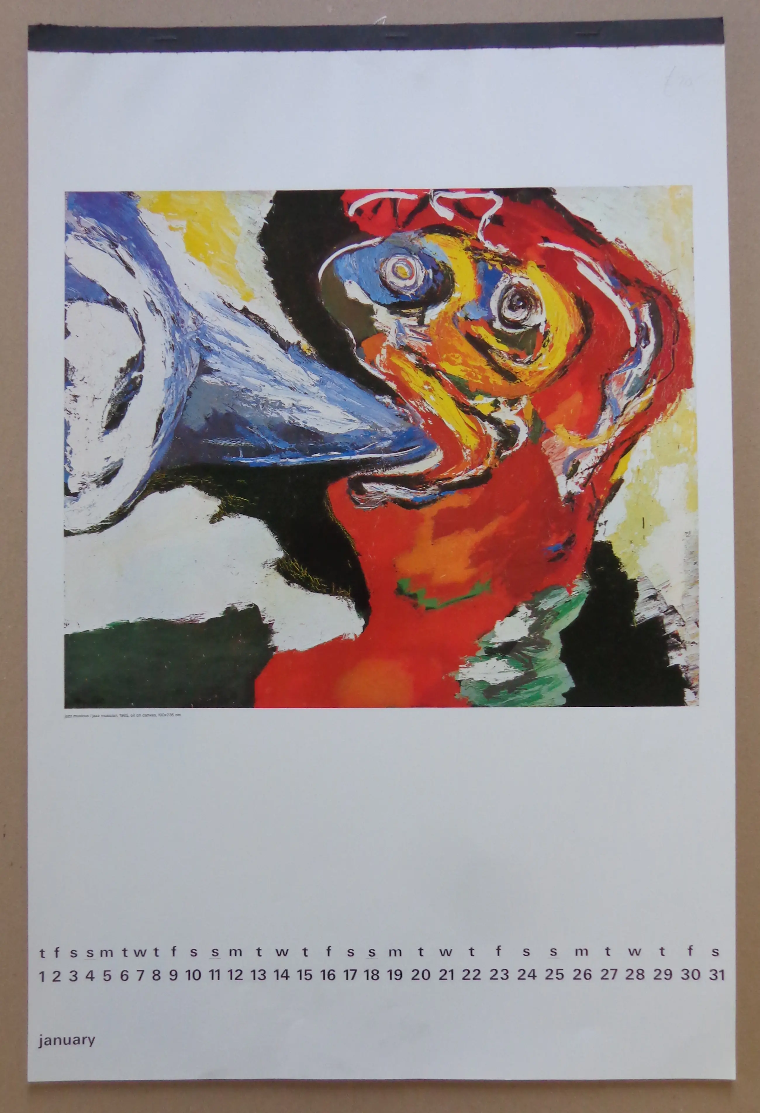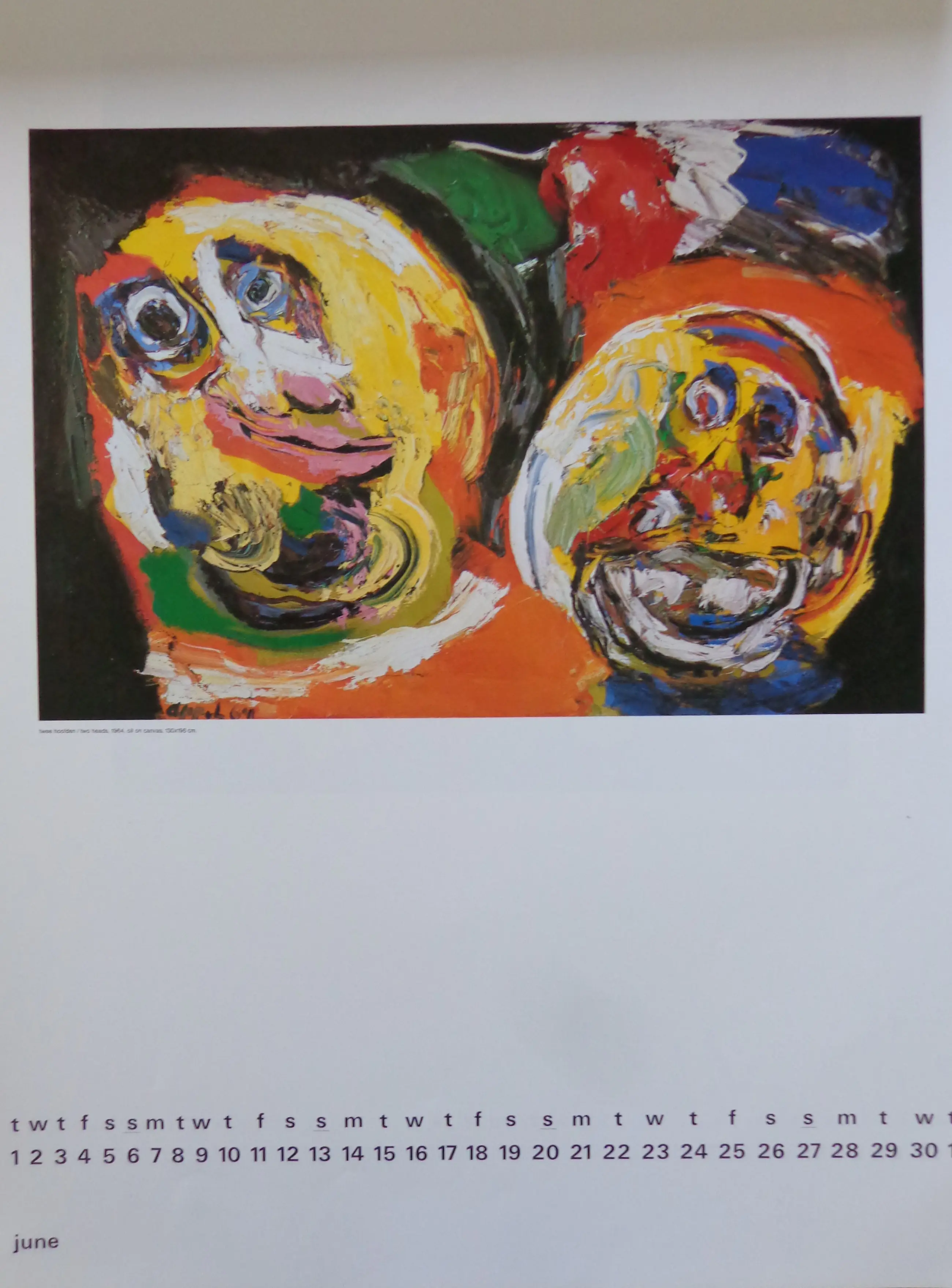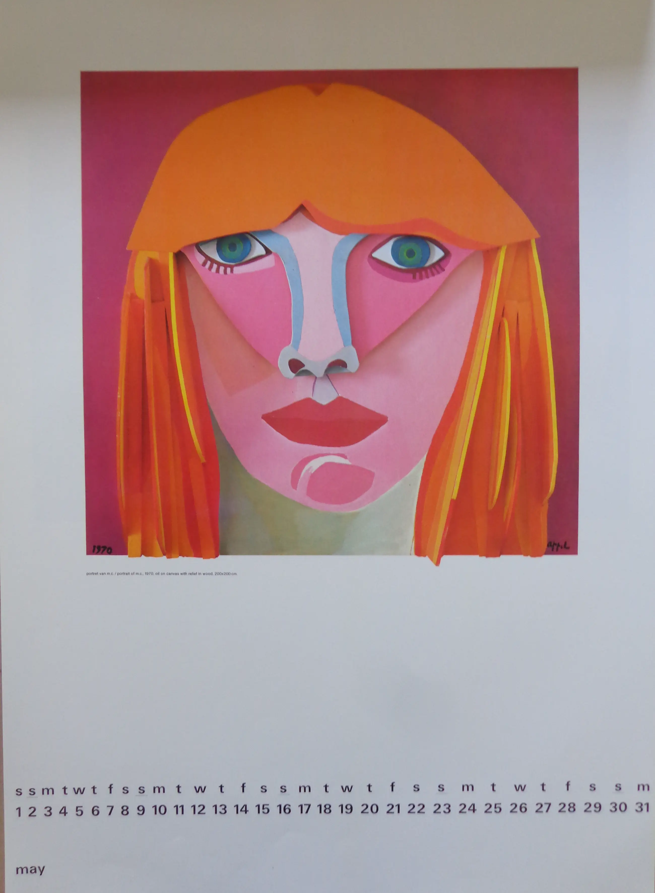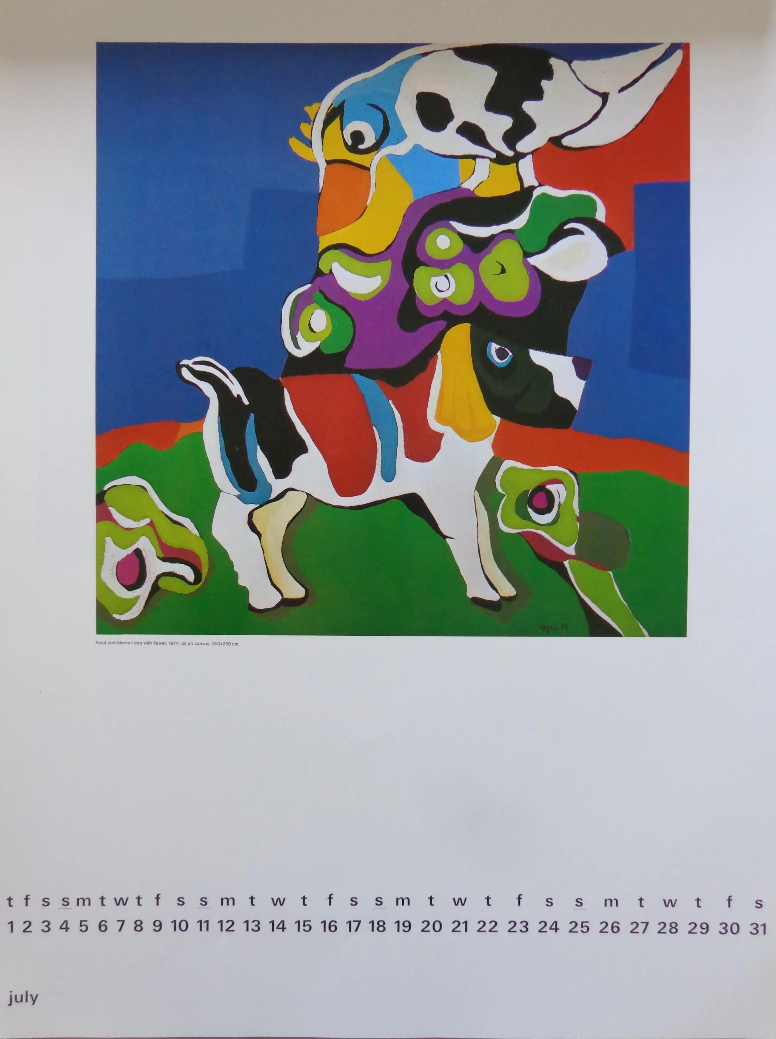 Karel Appel (1921-2006). Jaarkalender 1976. Voorblad met uitsparing kunstenaarsnaam en jaartal (losbladig). 12 prenten in kleuroffset. Kartonnen rug. Niet gesigneerd. Goede staat. Afmetingen: 60x40cm.