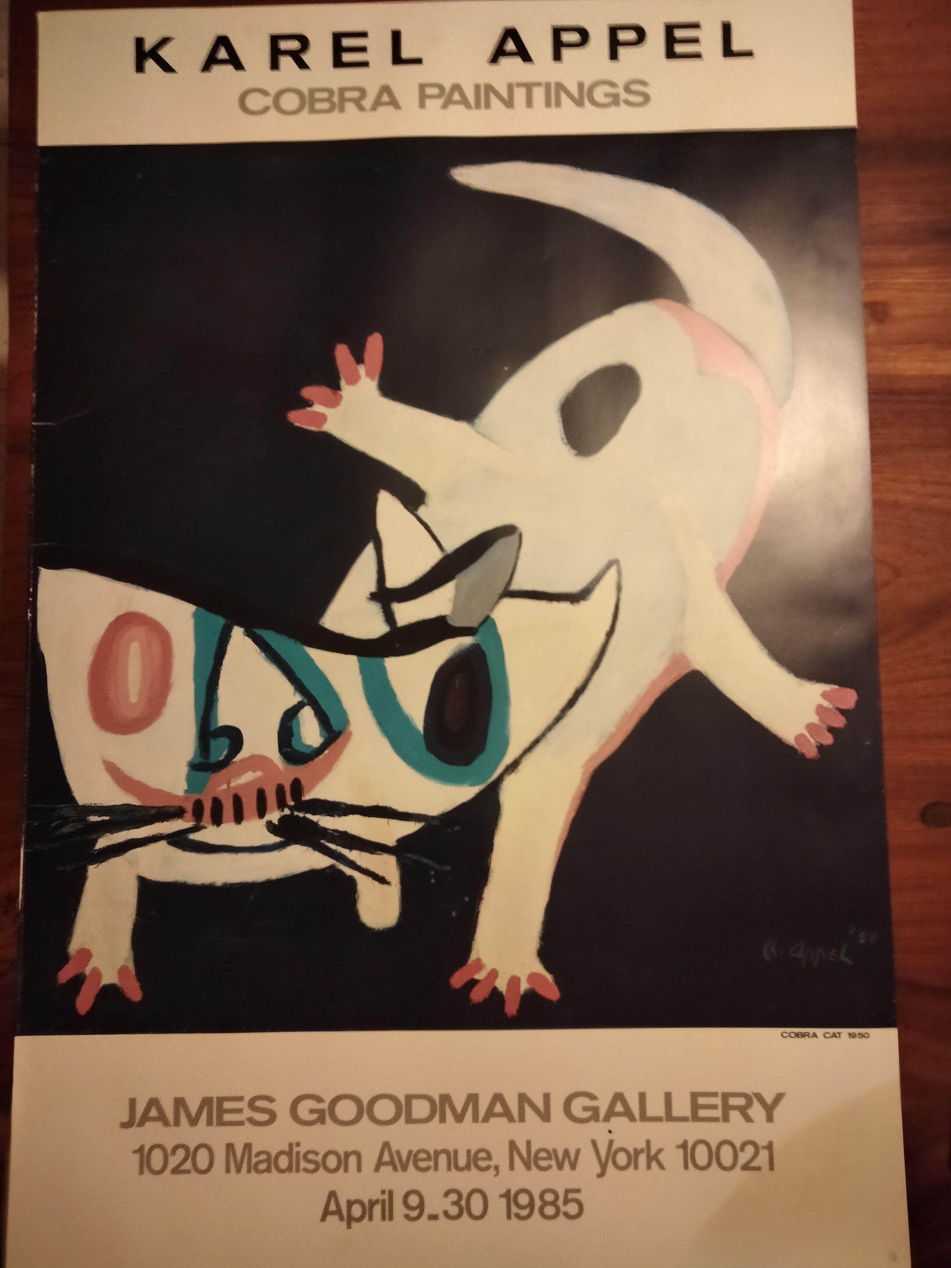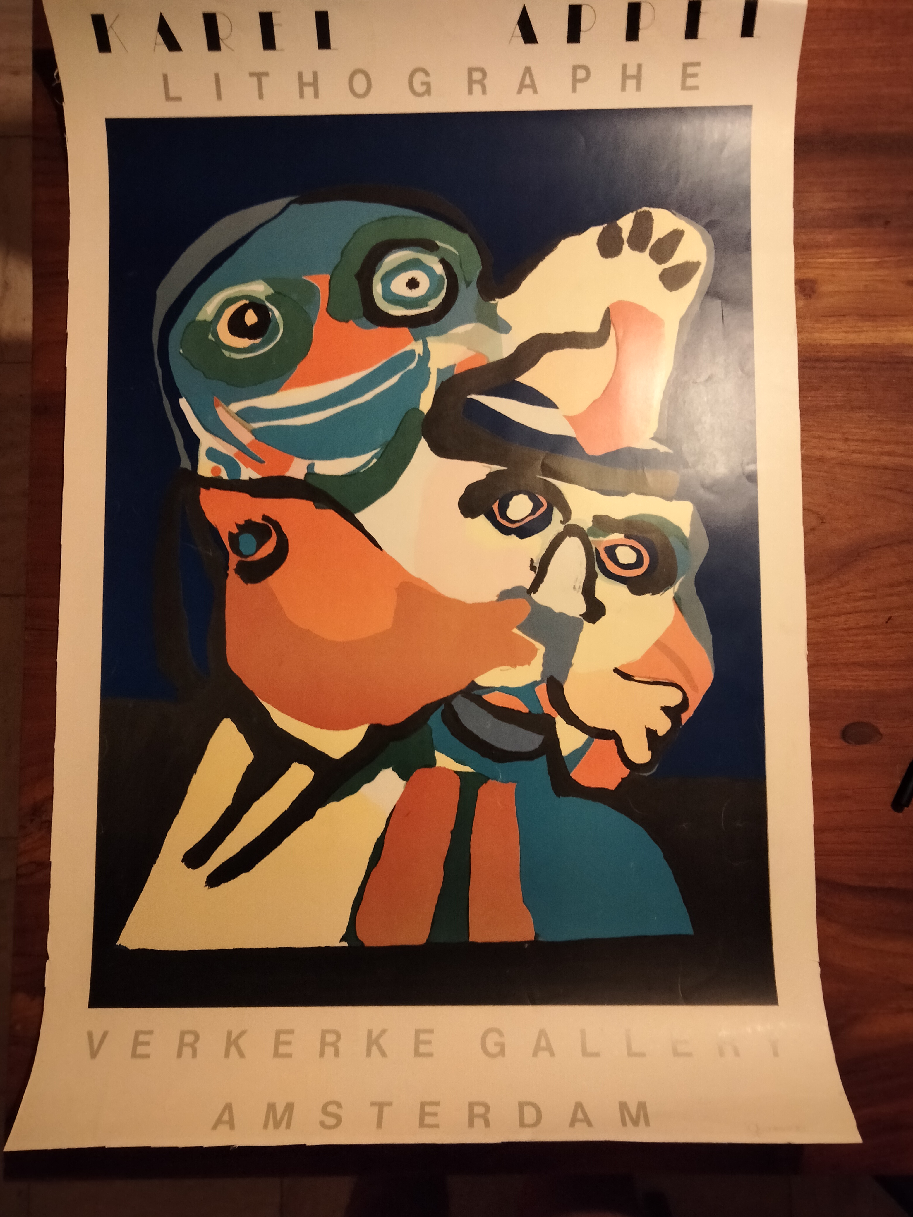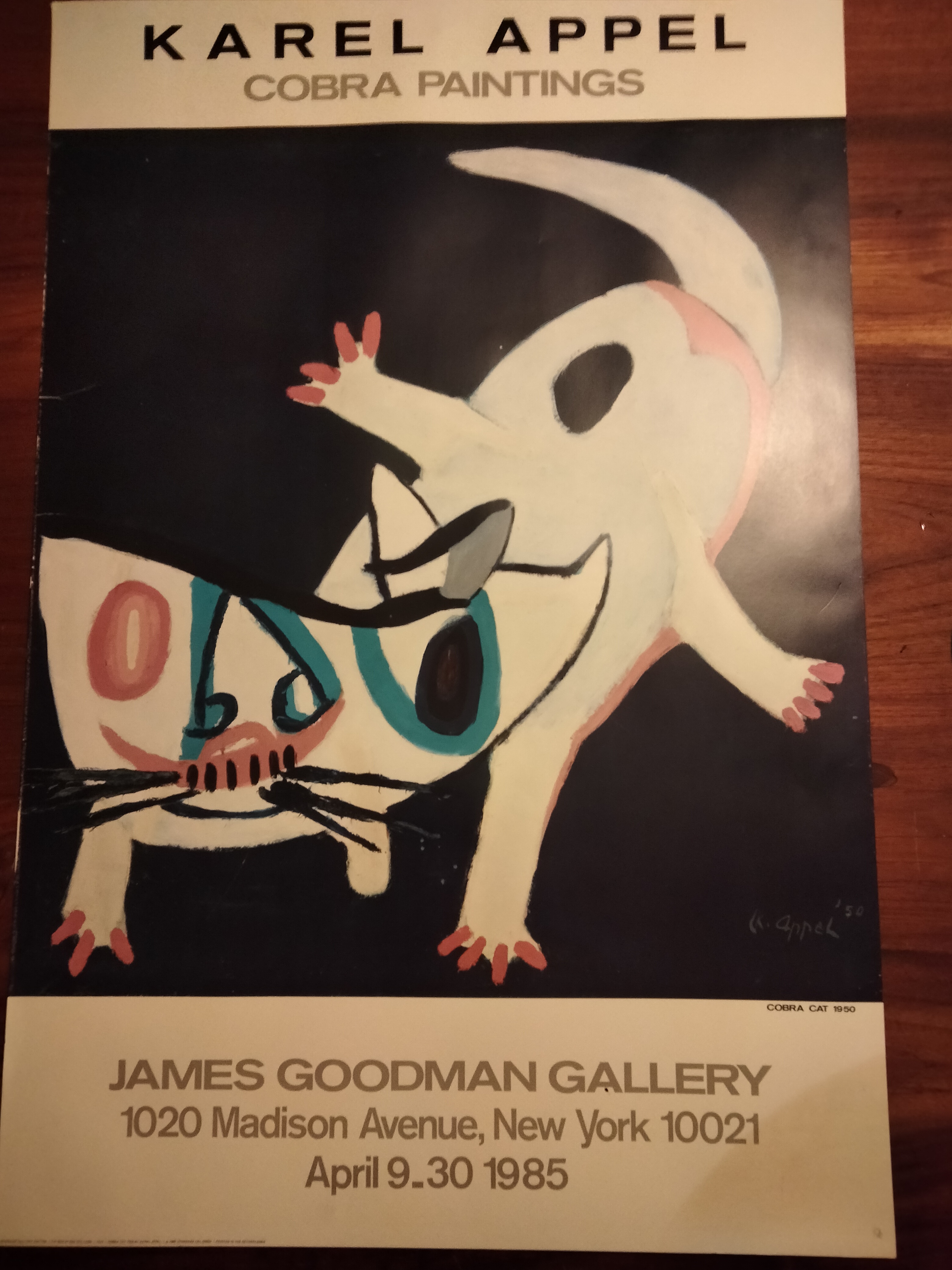 Dit kavel bevat 2 originele affiches van Karel appel. -James goodman galery 1985 -Verkerke galery 1984