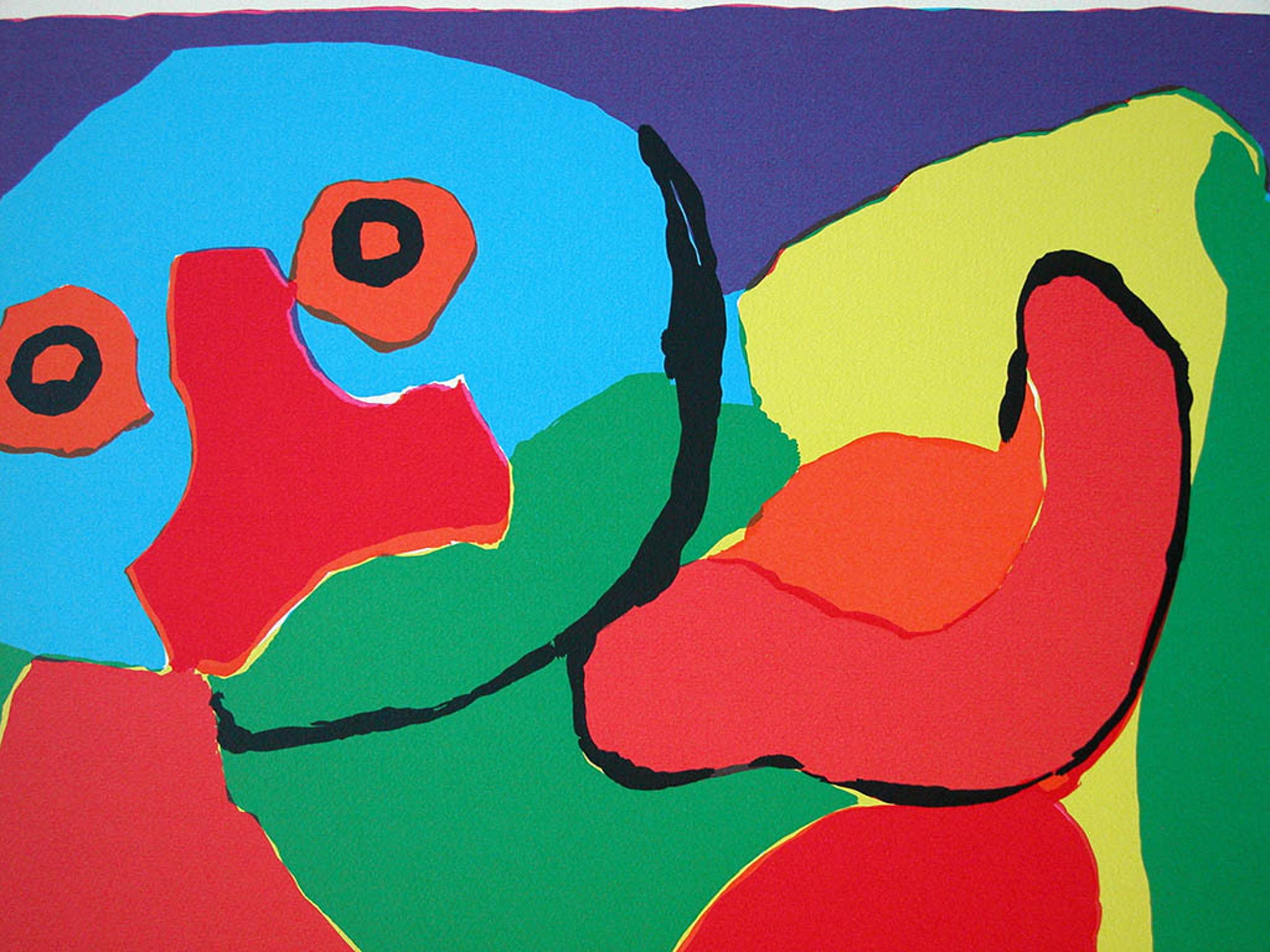 Originele kleurenlithografie op groot formaat van Karel Appel uit 1970.