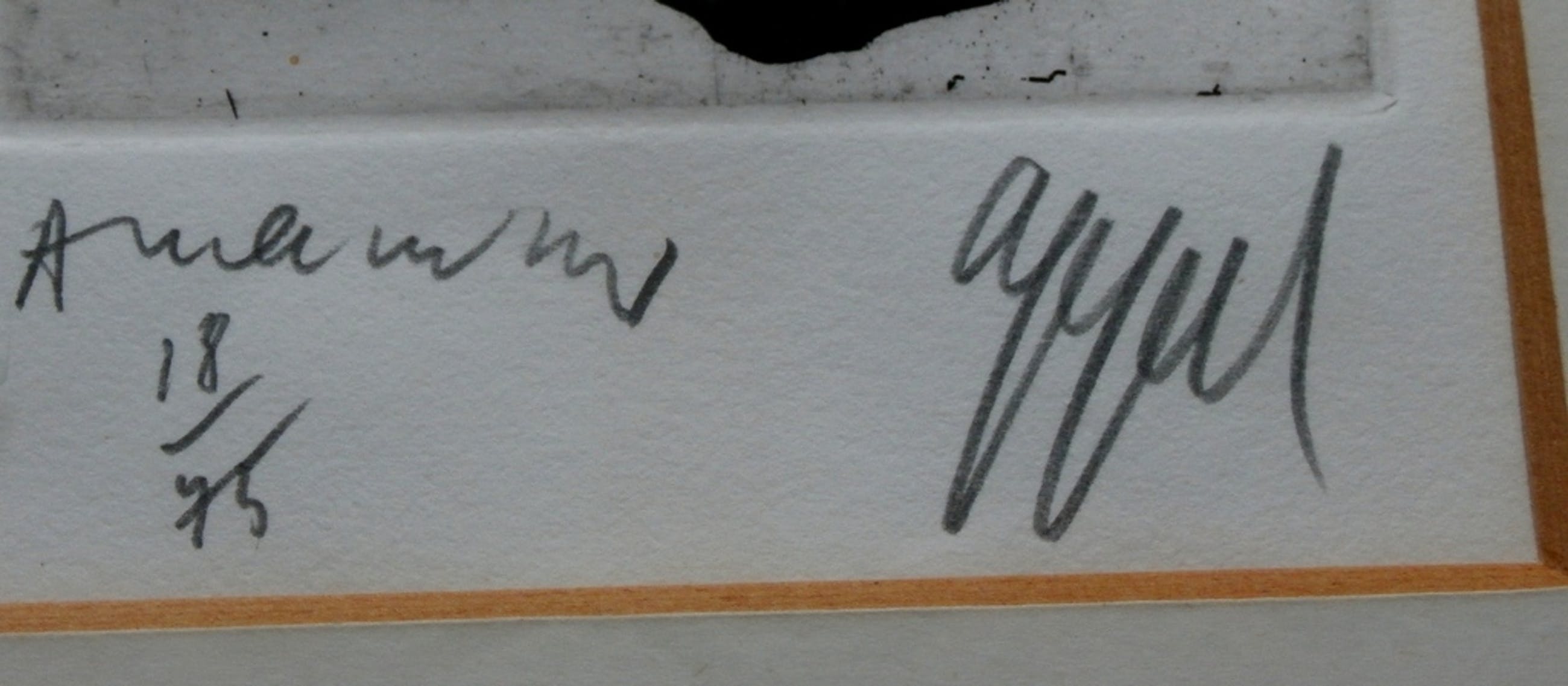 Mooie ets van Karel Appel en Pierre Alechinsky. Jaar: 1978. Nummer: 18/75. Afmetingen incl lijst: H39,5 x b29,5 cm. Afmetingen blad: H34 x b25 cm. Afmetingen voorstelling: H13,5 x b9,5 cm. Conditie: in goede staat. Passe-partout heeft wat vuile plekjes. De authenciteit van het aangeboden werk wordt voor 100% gegarandeerd. Een certificaat van echtheid kan, op aanvraag worden meegestuurd.