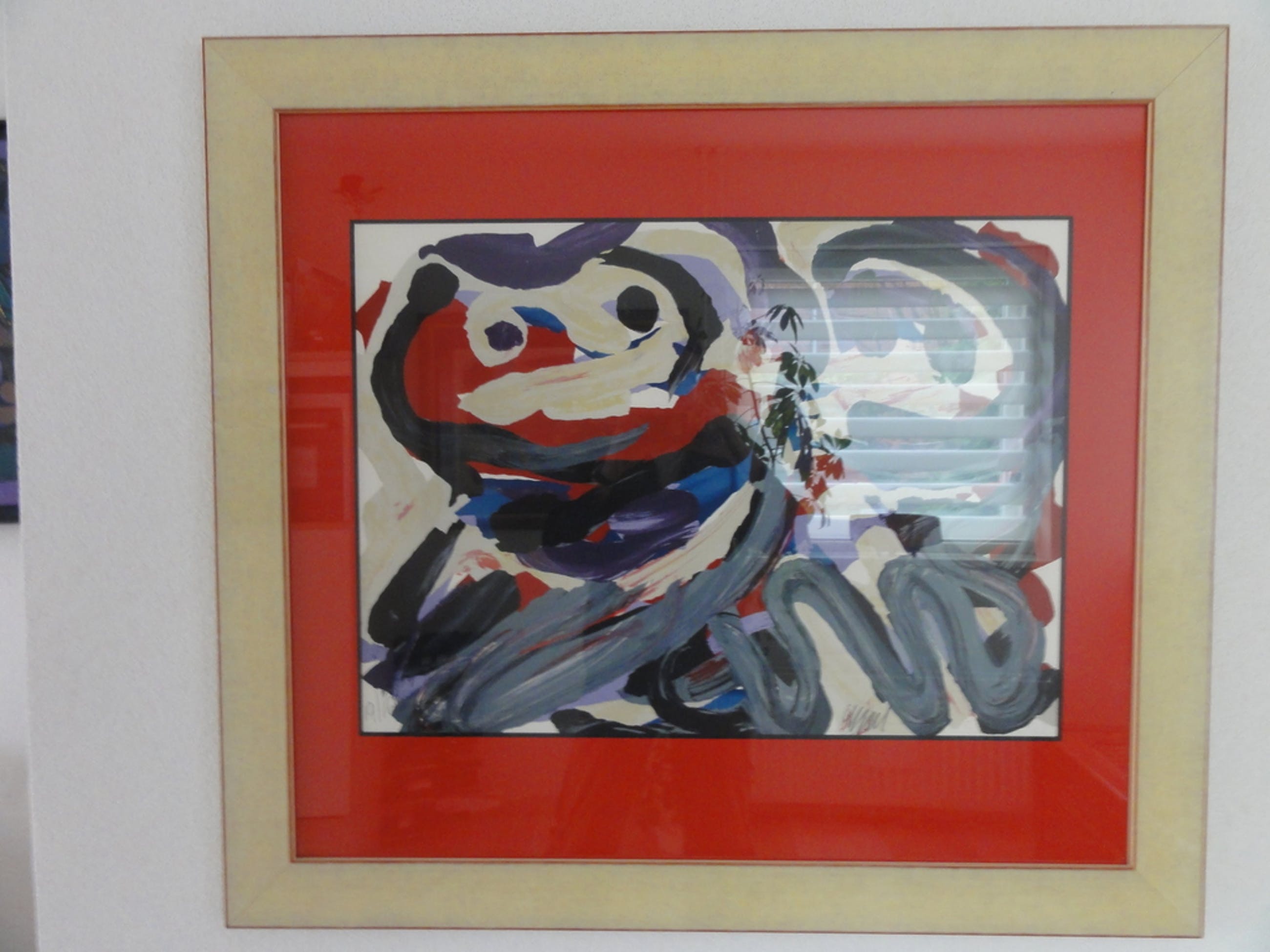 Mooie KLEURENLITHO van KAREL APPEL: "Happy Battle", nr. 19 uit een serie van 160. Afmetingen Litho: 54 cm hoog en 74 cm breed. Afmetingen met passepartout en in zeer mooie, zware lijst: 94 cm hoog en 1 meter en 4 cm breed. Met Certificaat van echtheid, factuurbon van Galerie Ritsart, en begeleidende brief van Galerie Ritsart. In overleg wordt de litho bij de koper opgehaald of tegen betaling door de verkoper bij de koper thuis bezorgd.
