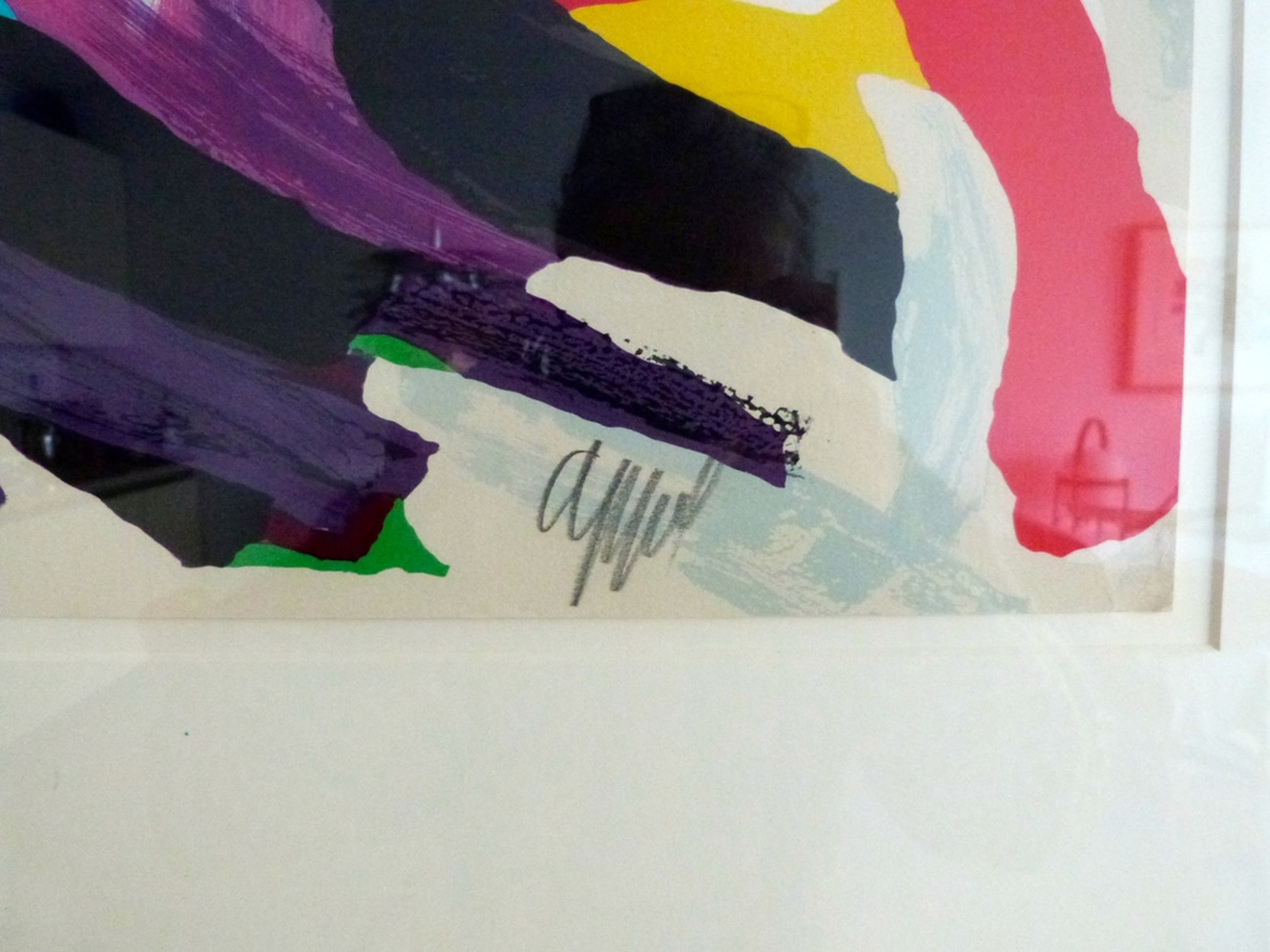 Zeer mooie kleurrijke litho van Karel Appel uit 1979 in mooie neutrale lijst.