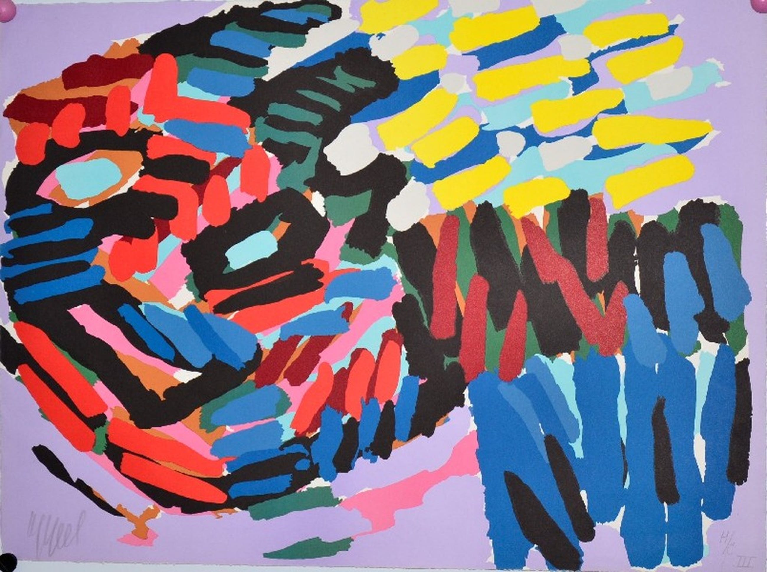 Mooie kleurrijke litho van Karel Appel in 1 van zijn kenmerkende stijlen. Volledig gegarandeerd.