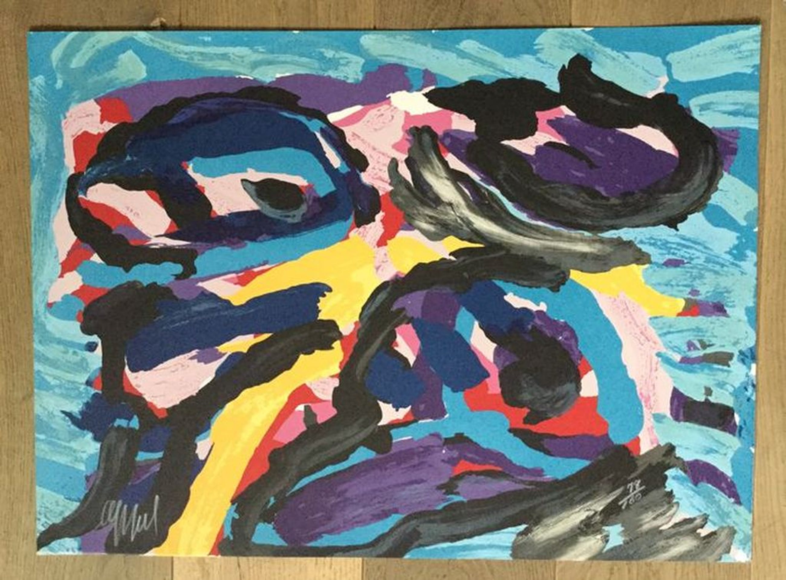 Karel Appel - "Drie gezichten als wolken." Originele kleuren lithografie .