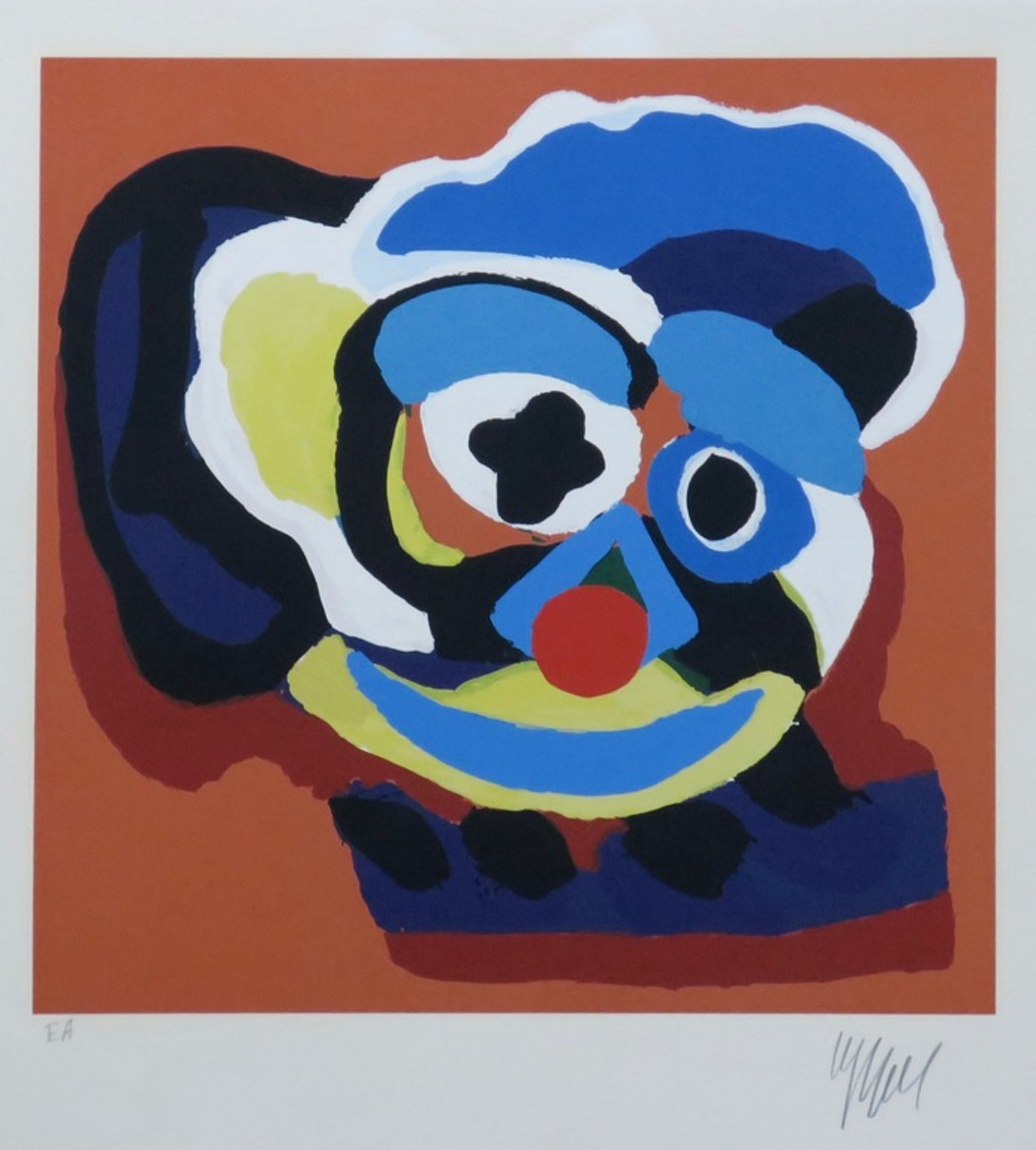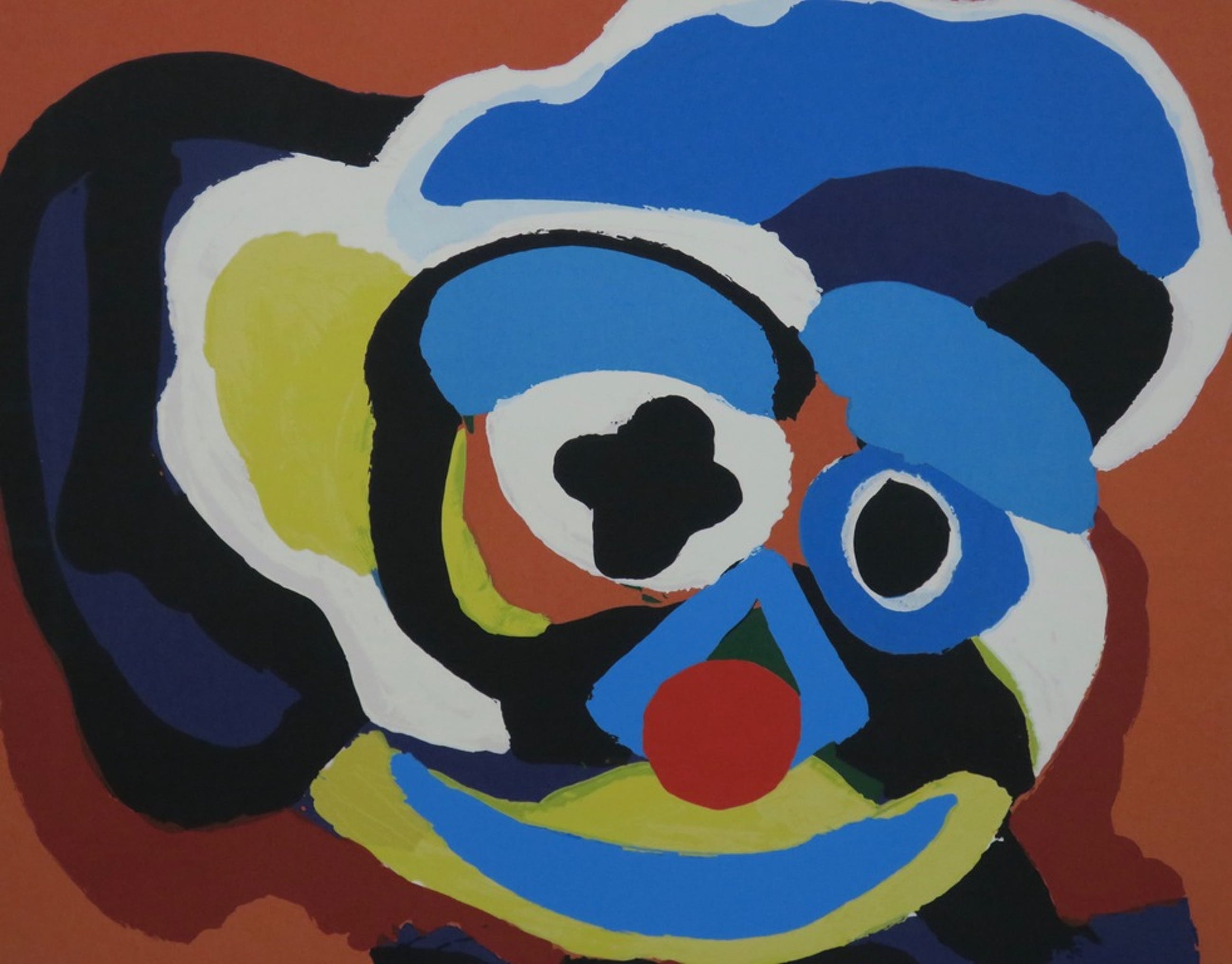 Grote zeefdruk van Karel Appel "Clowntje" mooi ingelijst in een luxe, zware lijst!