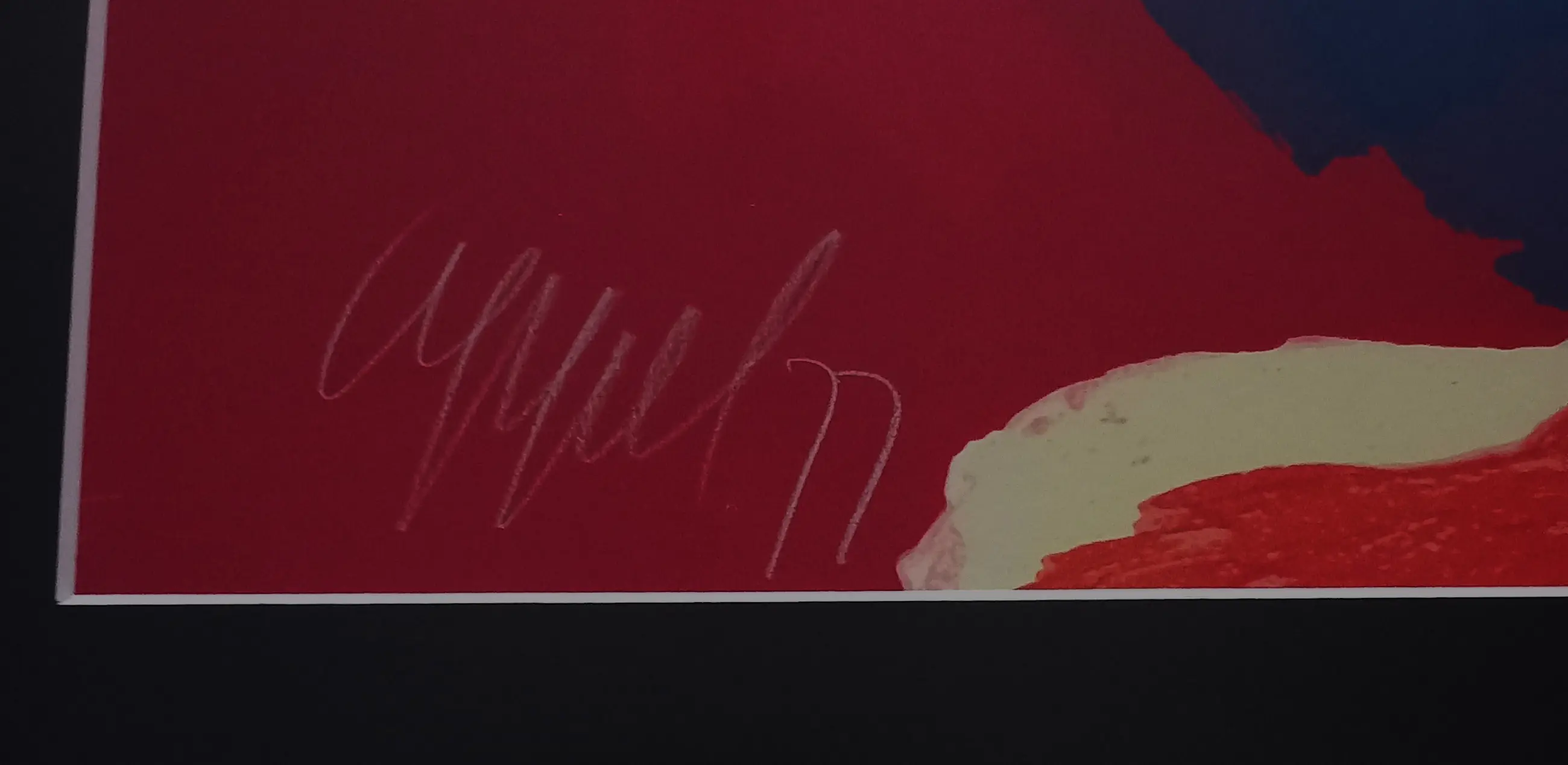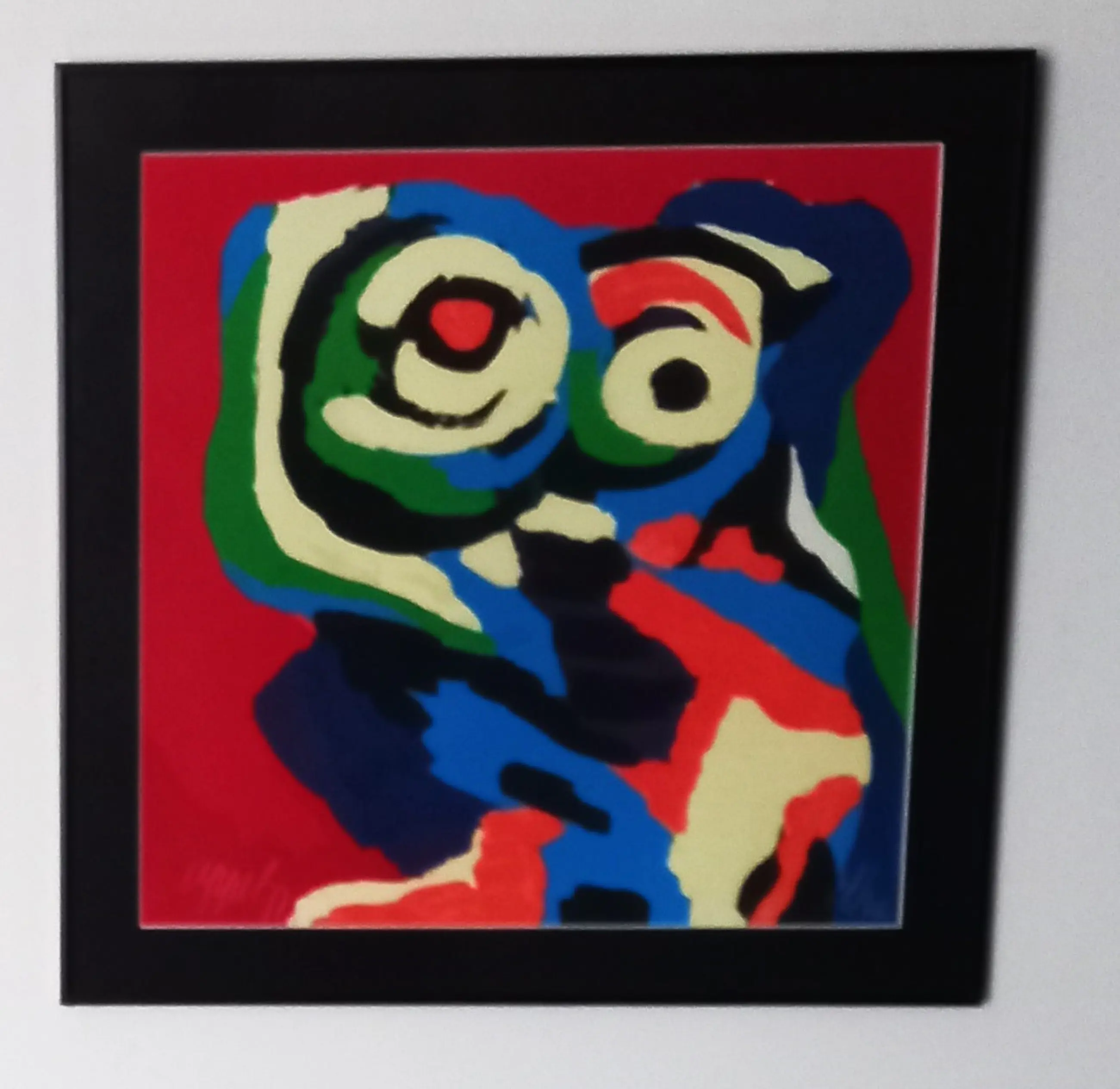 Prachtig, zeer gewild werk van Karel Appel Handgesigneerd, genummerd en gedateerd Nieuwe strakke, zwarte aluminium lijst met ontspiegeld glas en passepartout