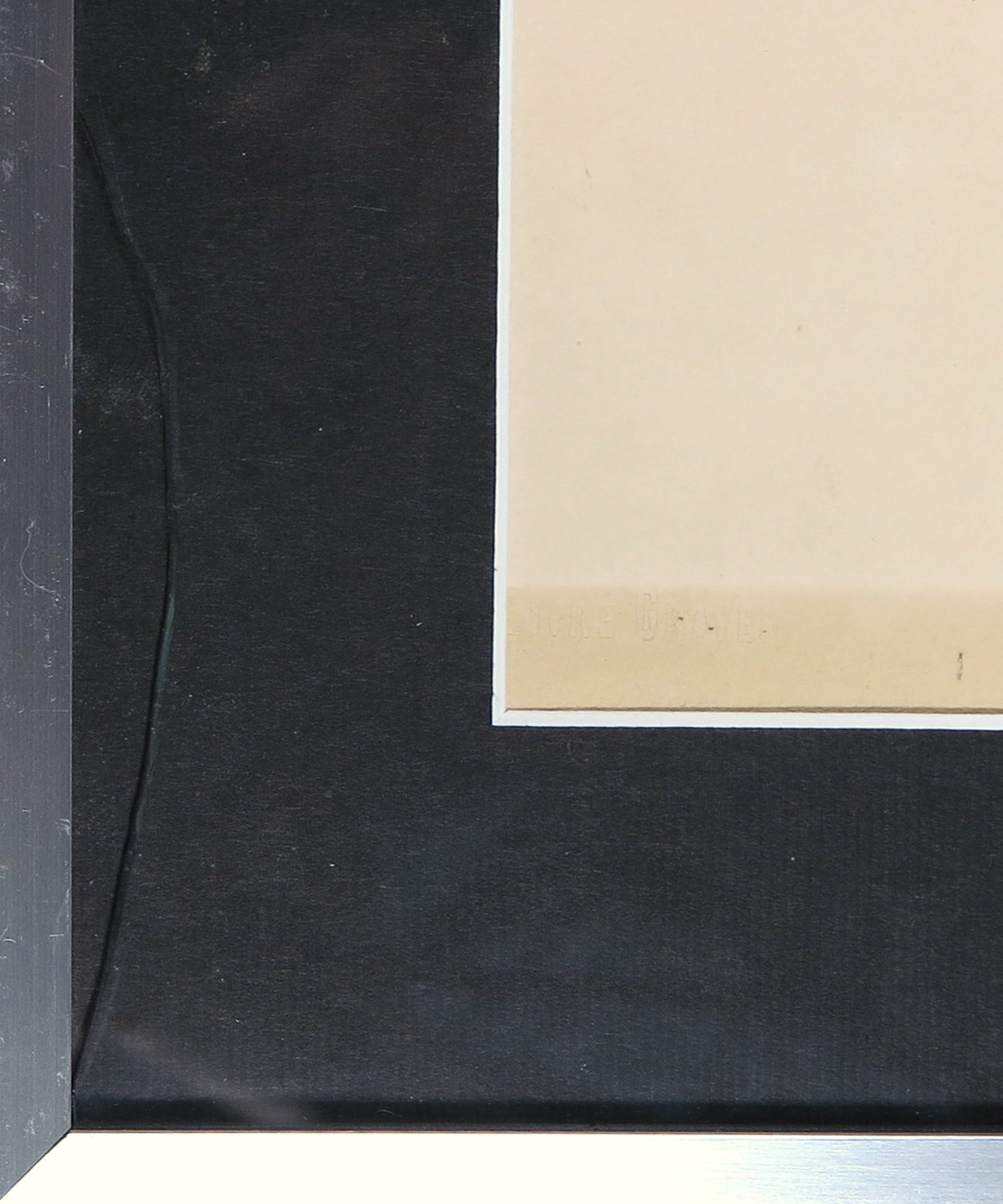 | Over het algemeen goede staat. Blad is licht egaal vergeeld, met een strook sterkere vergeling langs de onderste rand. In het passe-partout zit een (sterke) golving. In de hoek rechtsonder zit een scheurtje in het glas. Zie laatste foto. | |