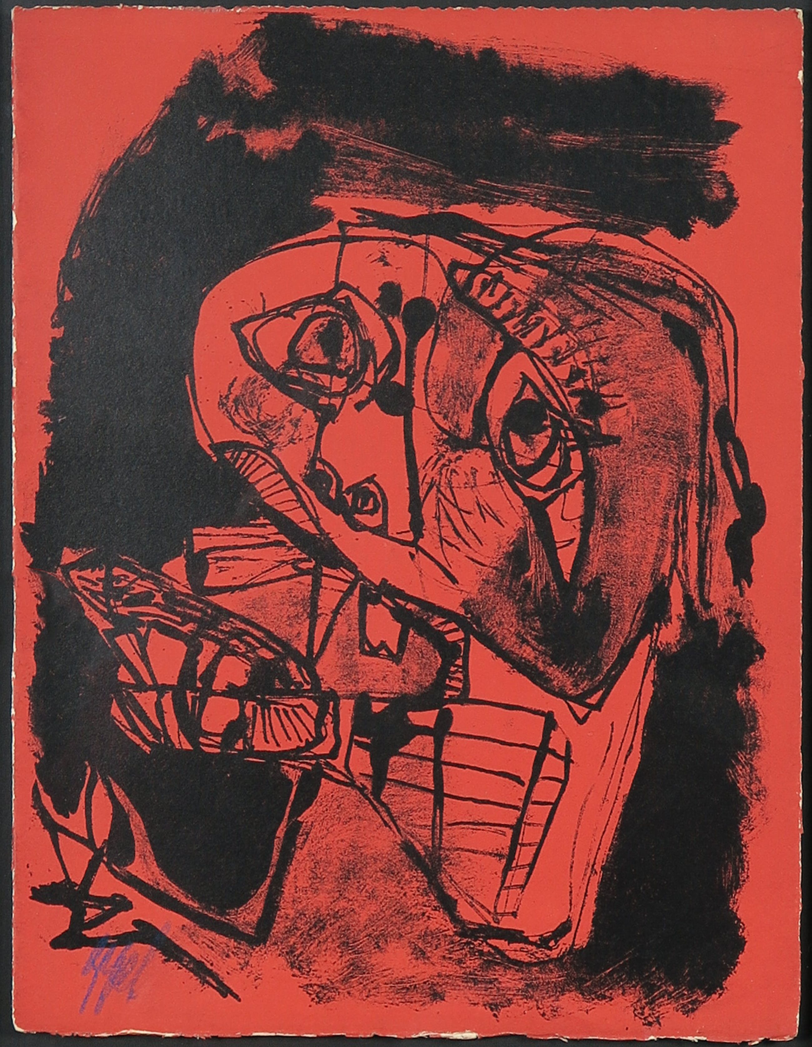 Dit werk is afkomstig uit `Rhapsodie de ma nuit` met text van de Fransman Emmanuel Looten (1908-1974) met 8 losse lithografieën van Karel Appel.