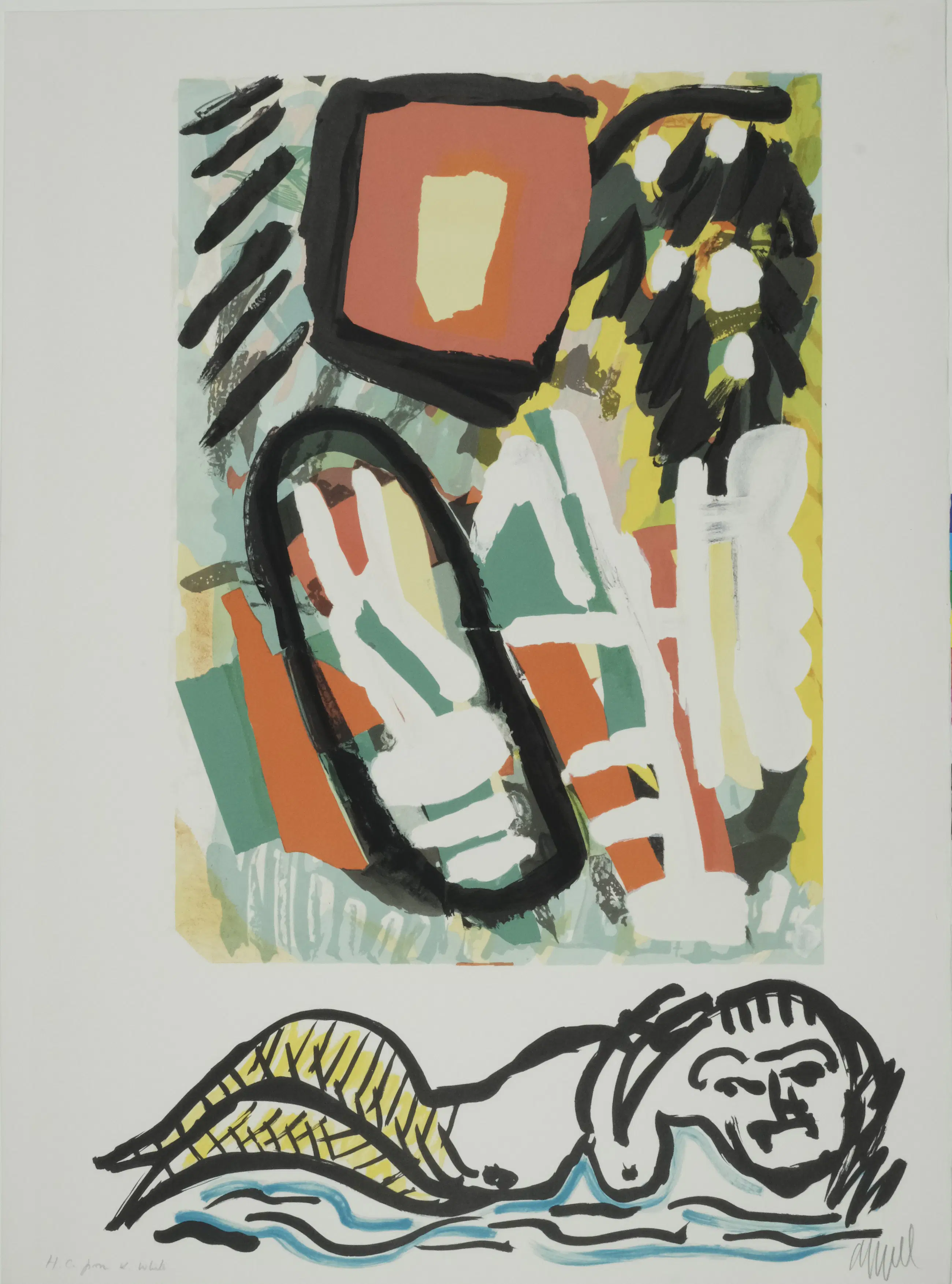 Karel Appel litho uit 1985 'Mermaid' uit de reeks 'Tantrika '