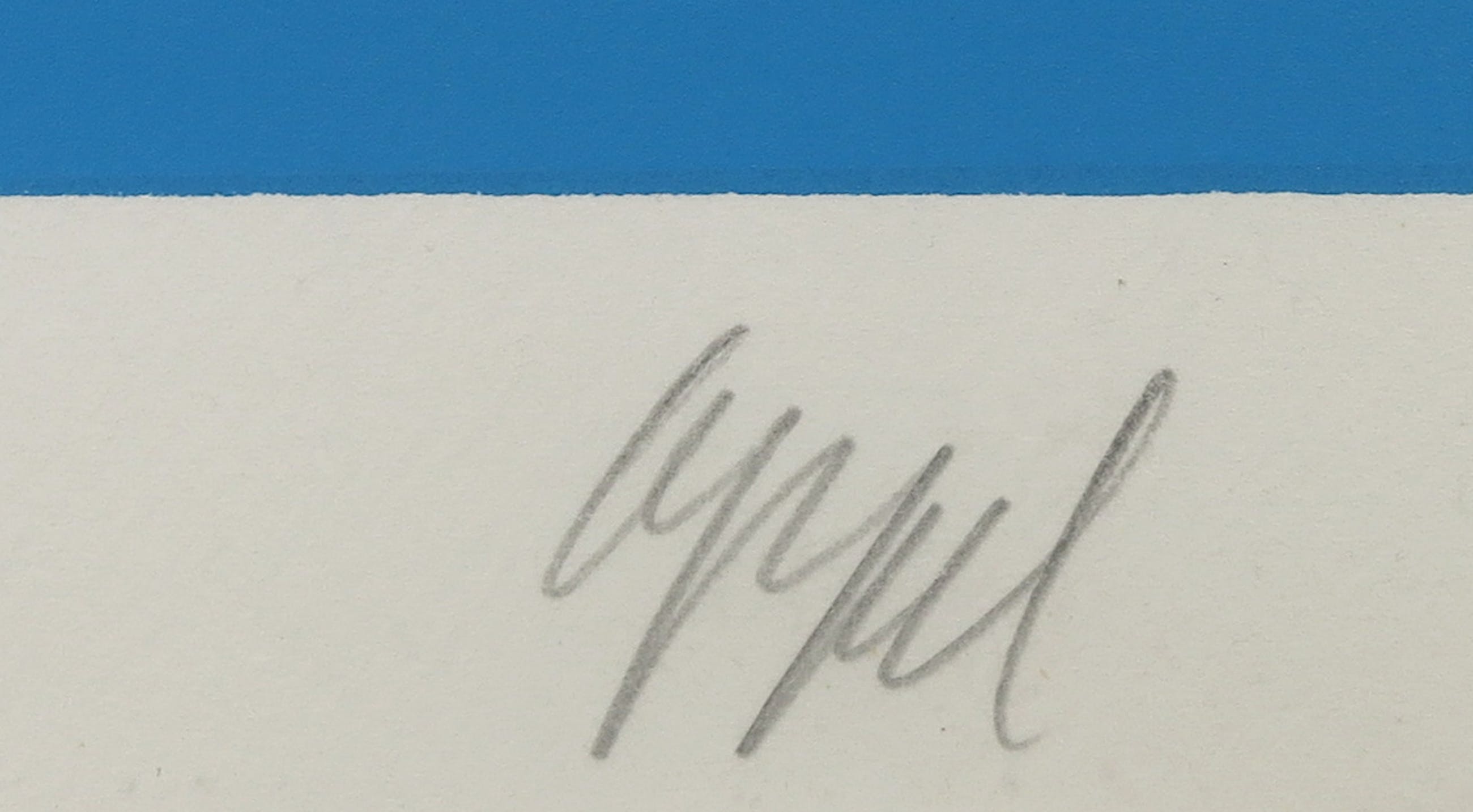 Grote zeefdruk, getiteld Friday, uit de serie Seven Summer Days. In de hoek rechtsonder is het werk met de hand gesigneerd. Het werk is ongenummerd.