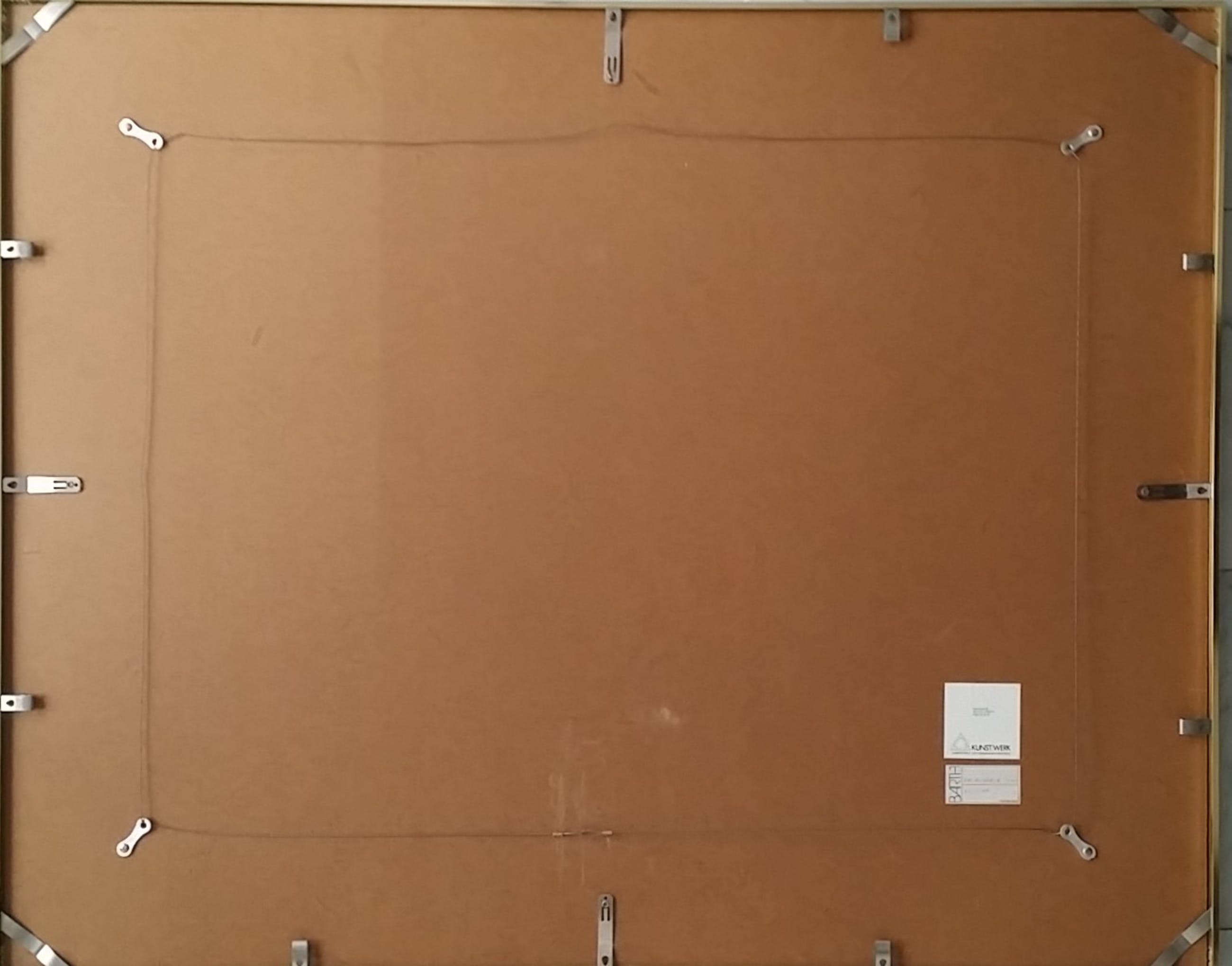 Afmeting +/- 75x55cm Ingelijst en onder zuurvrij passepartout.