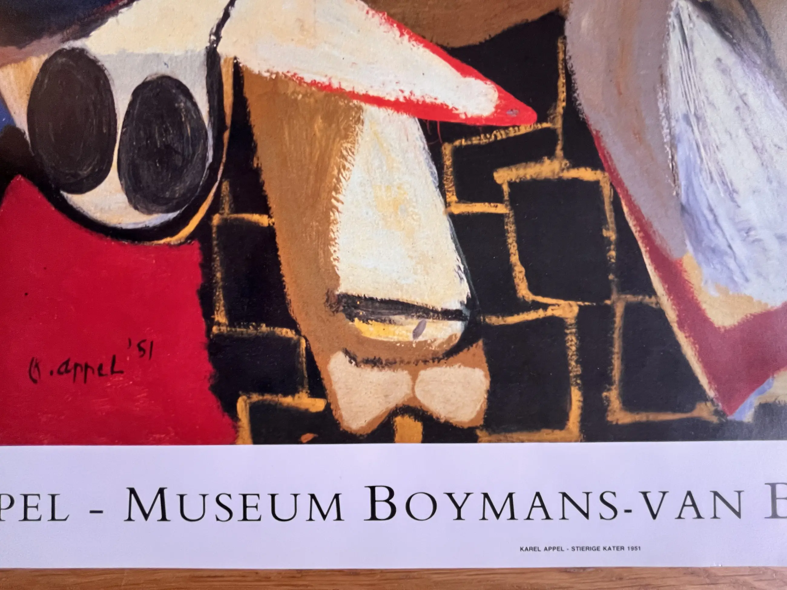 Mooie tentoonstellingsaffiche - Museum Boymans-Van Beuningen. Naar het werk "Stierige Kater" uit 1951 van Karel Appel. Goede staat buiten enkele kreukjes.