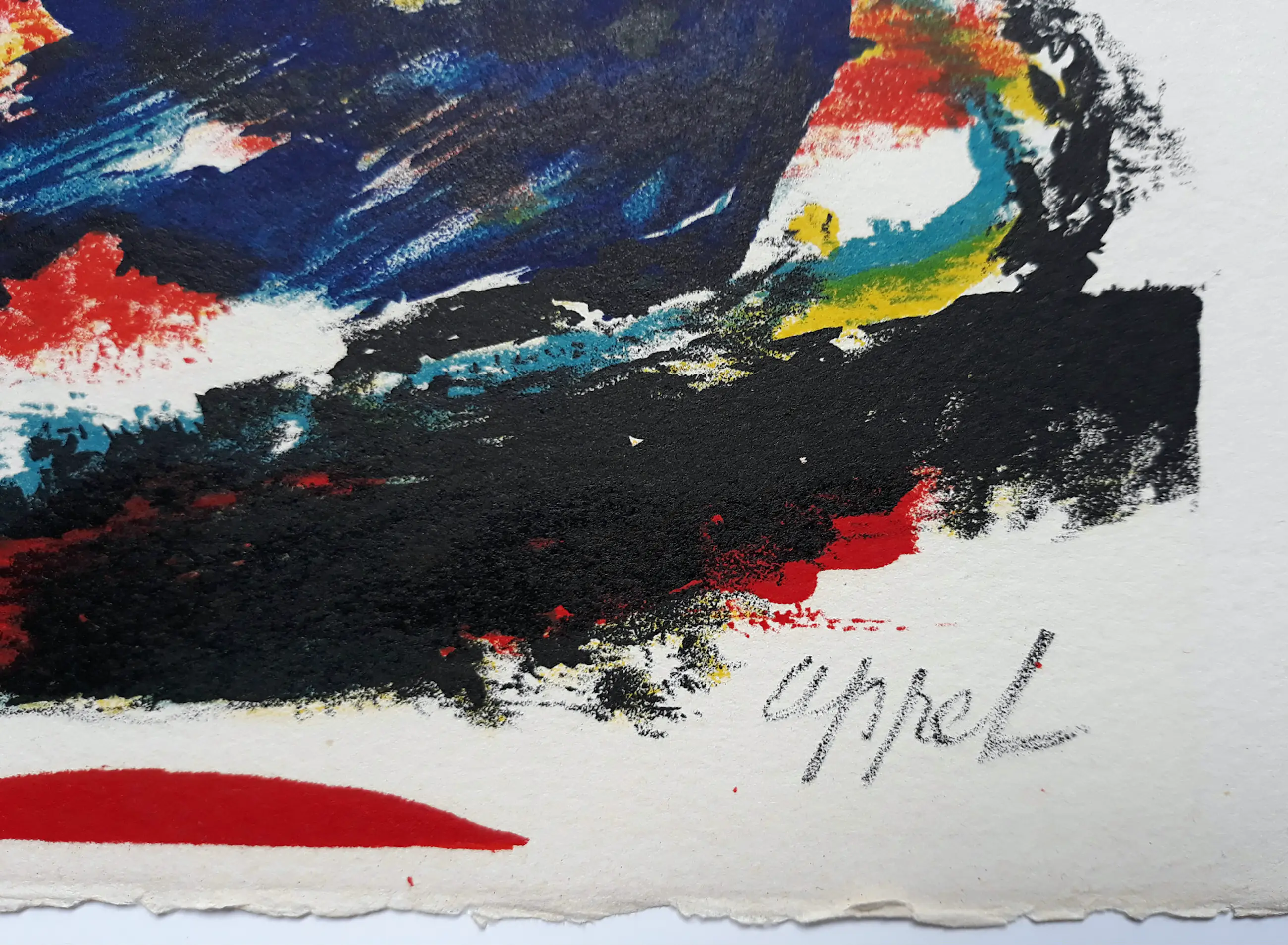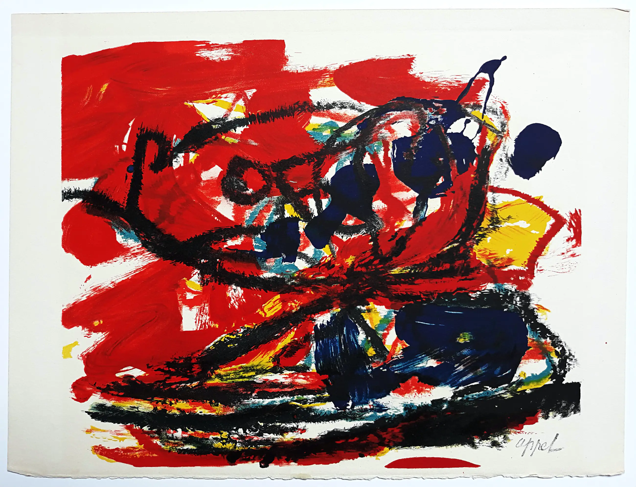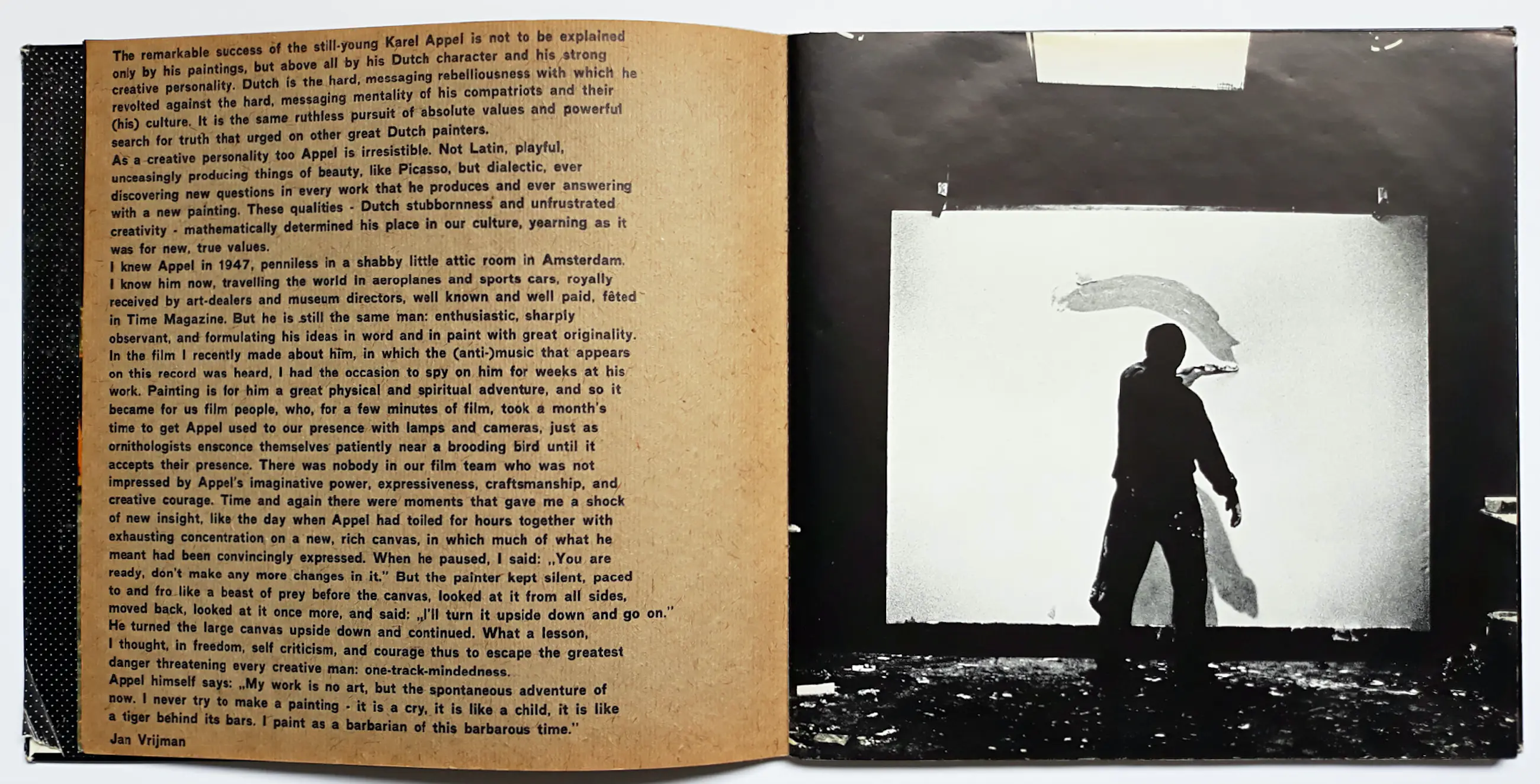Meer “mixed media” dan deze volledige set uit 1963 wordt het nooit meer. Het complete fotoboek, de LP en de litho zoals samengesteld door Karel Appel, Ed van der Elsken en Jan Vrijman. Alles in goede staat; de litho nog in de originele beschermhoes, de zeer goede LP nog in de originele stofhoes maar het fotoboek met wat kleine gebreken; de rug iets gesleten, wat verkleuringen aan de onder- en bovenkant van bladzijden en een paar kleine scheurtjes en vlekjes. Overall absoluut in goede conditie.