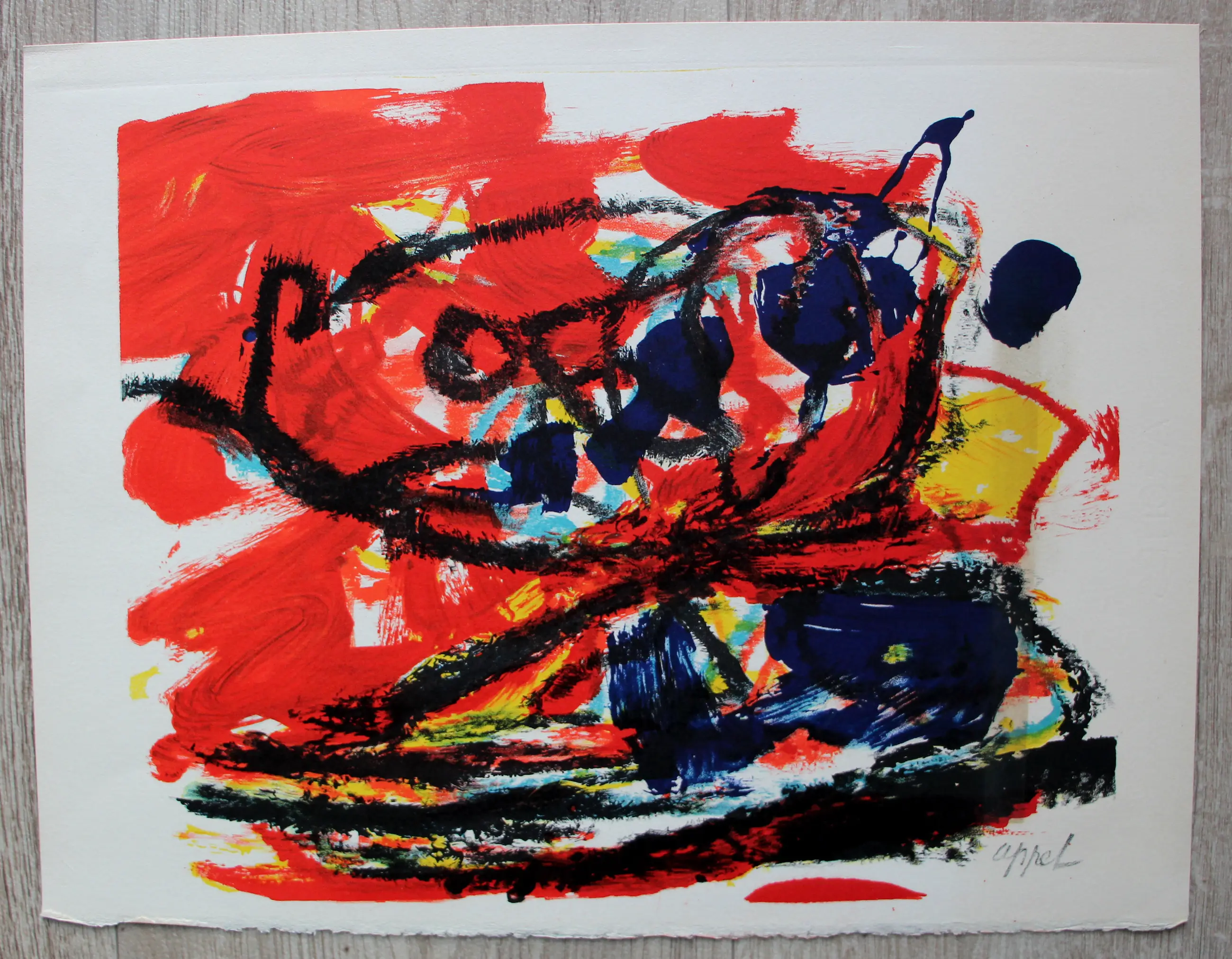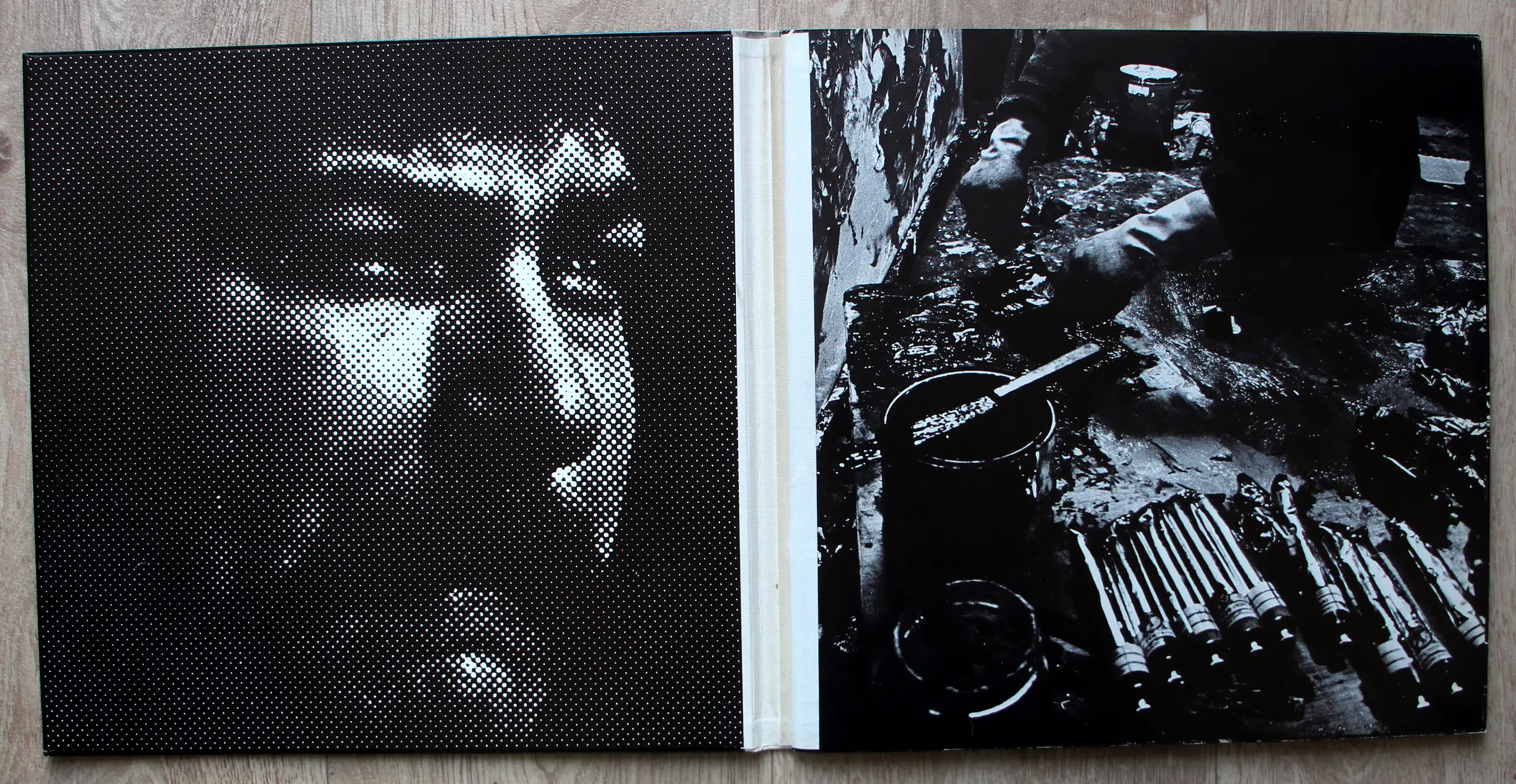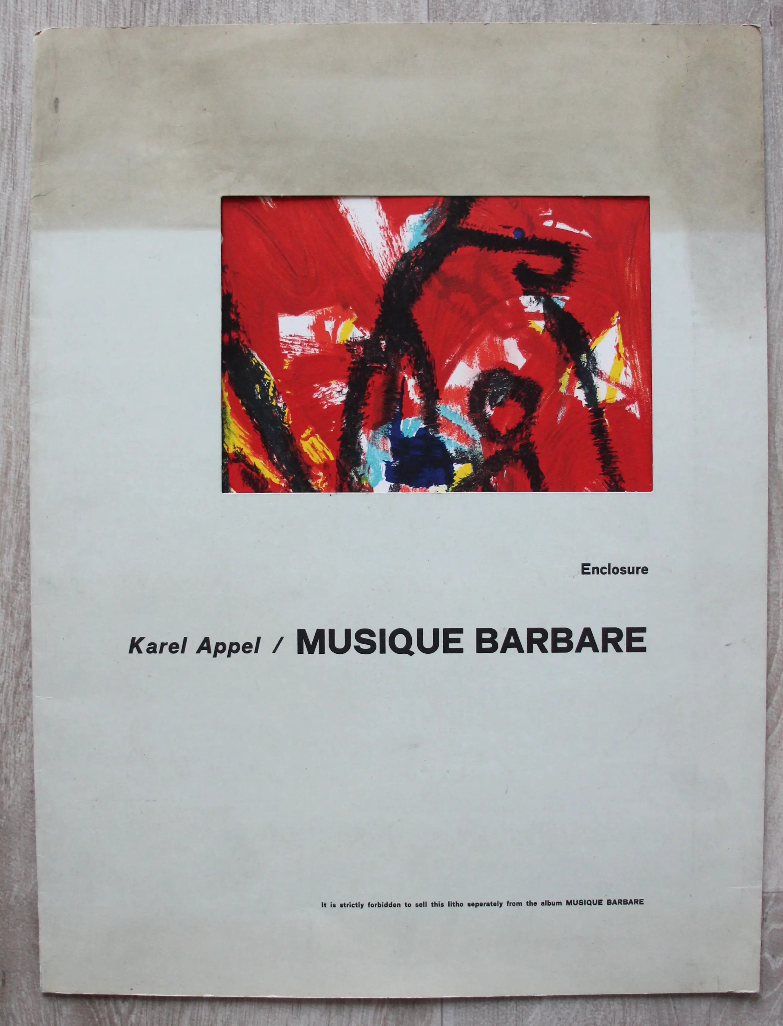 Compleet fotoboek met LP en litho zoals samengesteld door Karel Appel, Ed van der Elsken en Jan Vrijman. Gedrukt door "Bakker", Baarn. In zeer goede staat. Alleen de beschermhoes van de litho is aan de bovenzijde verkleurd (zie foto).