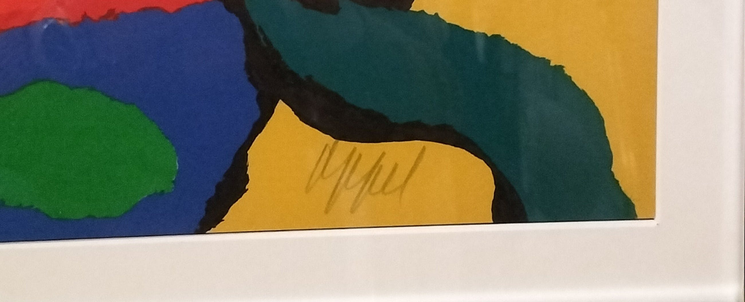 Zeldzame litho. In prima staat. Handgesigneerd en genummerd 46/100. Achterzijde met blad met tekst. Ik weet niet wat de relatie daarvan is met het werk..