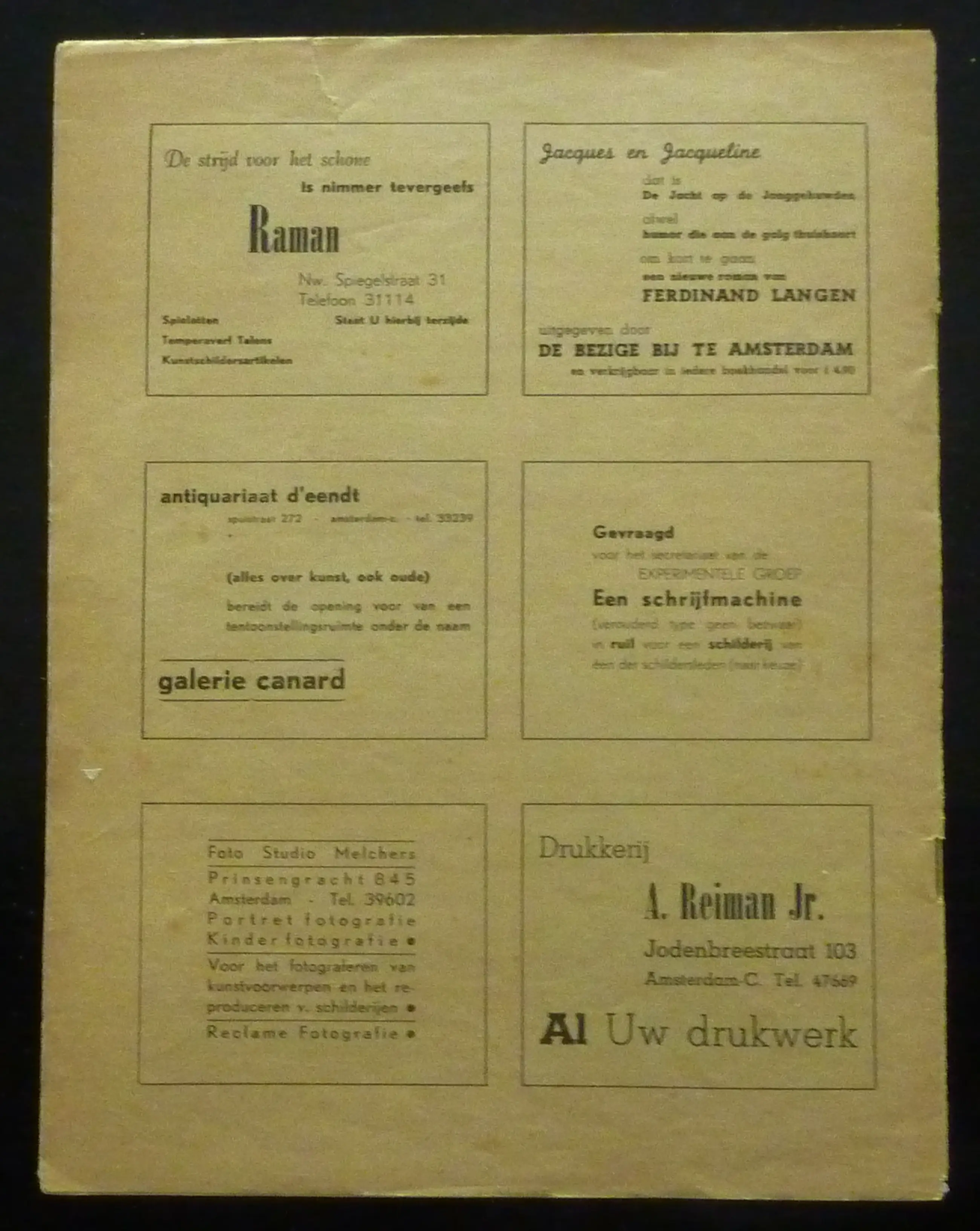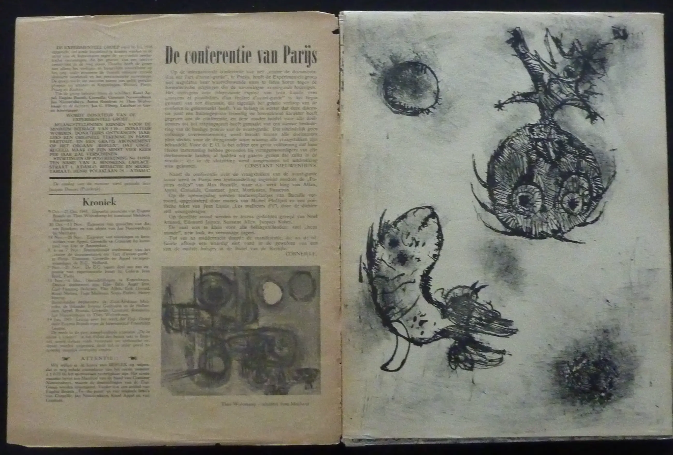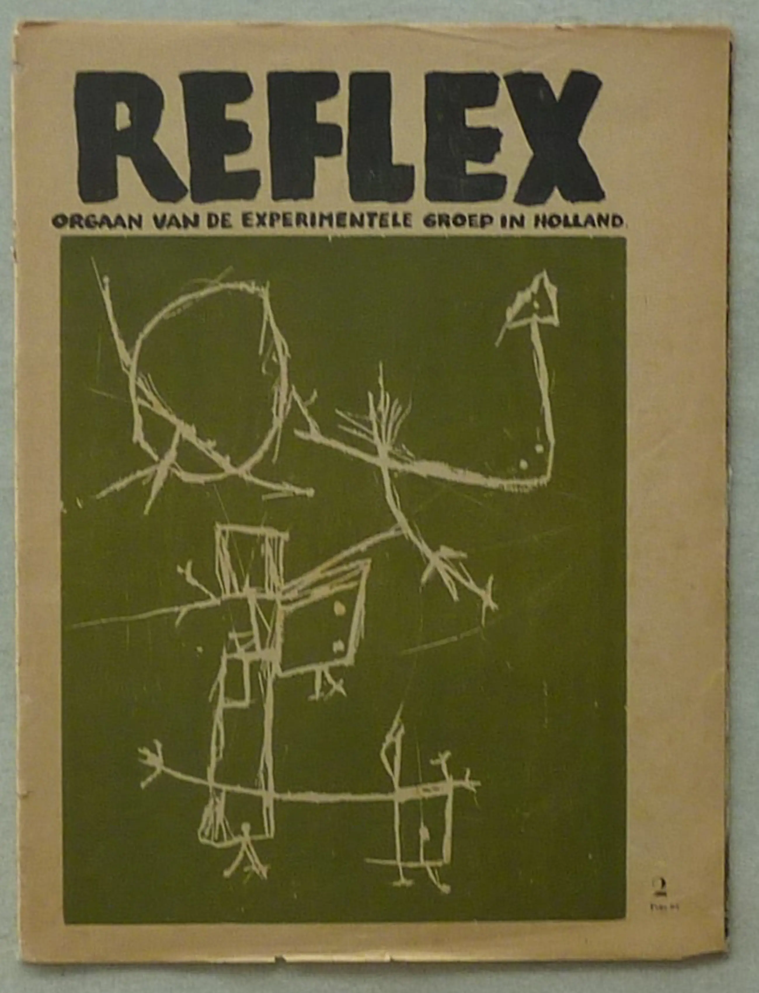 Reflex, orgaan van de experimentele groep in Holland - No. 2. Met litho's van Eugene Brands, Corneille, Anton Rooskens en Theo Wolvecamp. Conditie: in goede staat. Scheurtje op de rug.