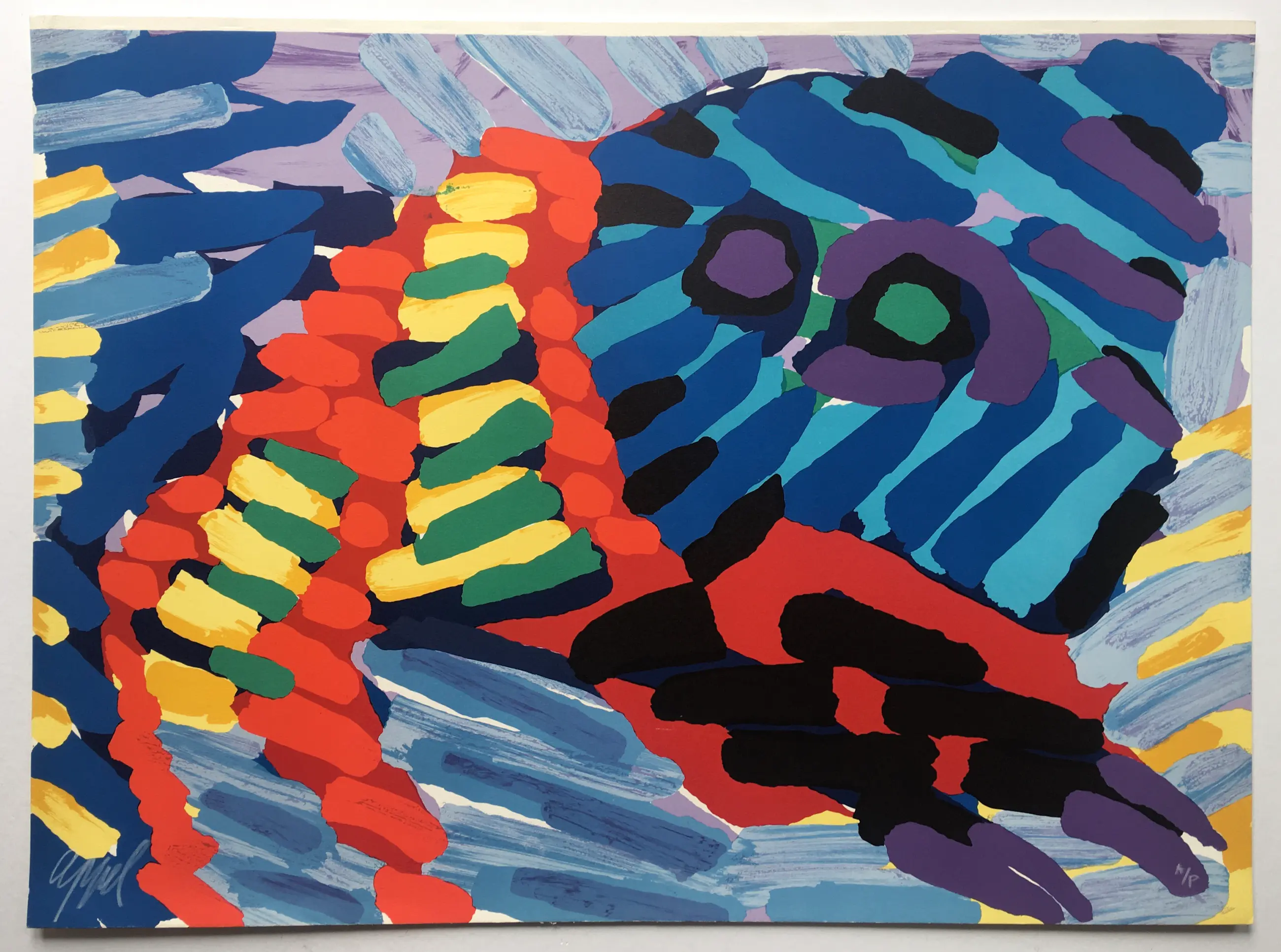 Een fraaie litho van Karel Appel ‘See me running again’ uit 1978, met de kleuren die alleen Karel Appel op deze manier kon samenbrengen. Het werk is gesigneerd en genummerd - oplage A/P.