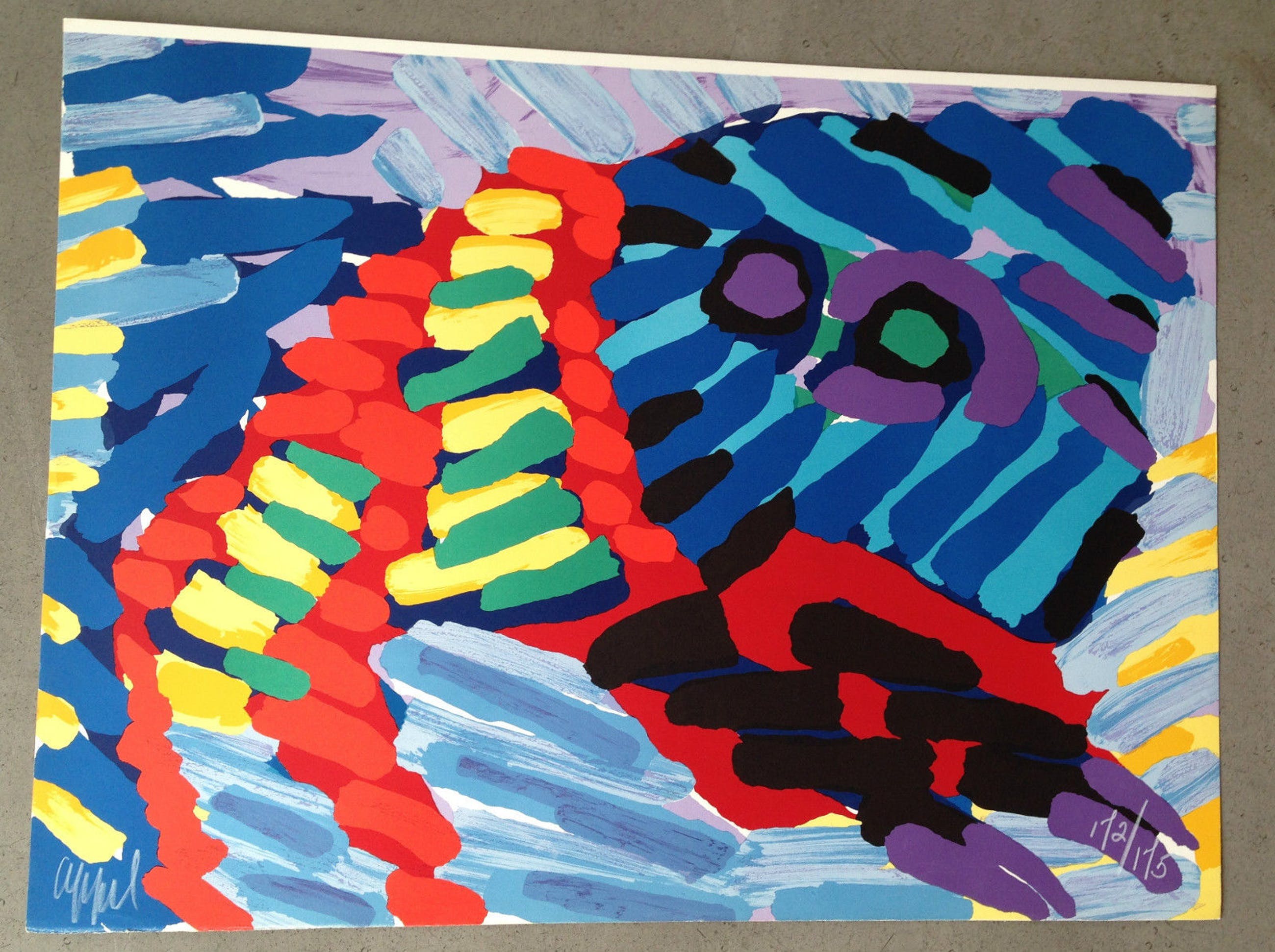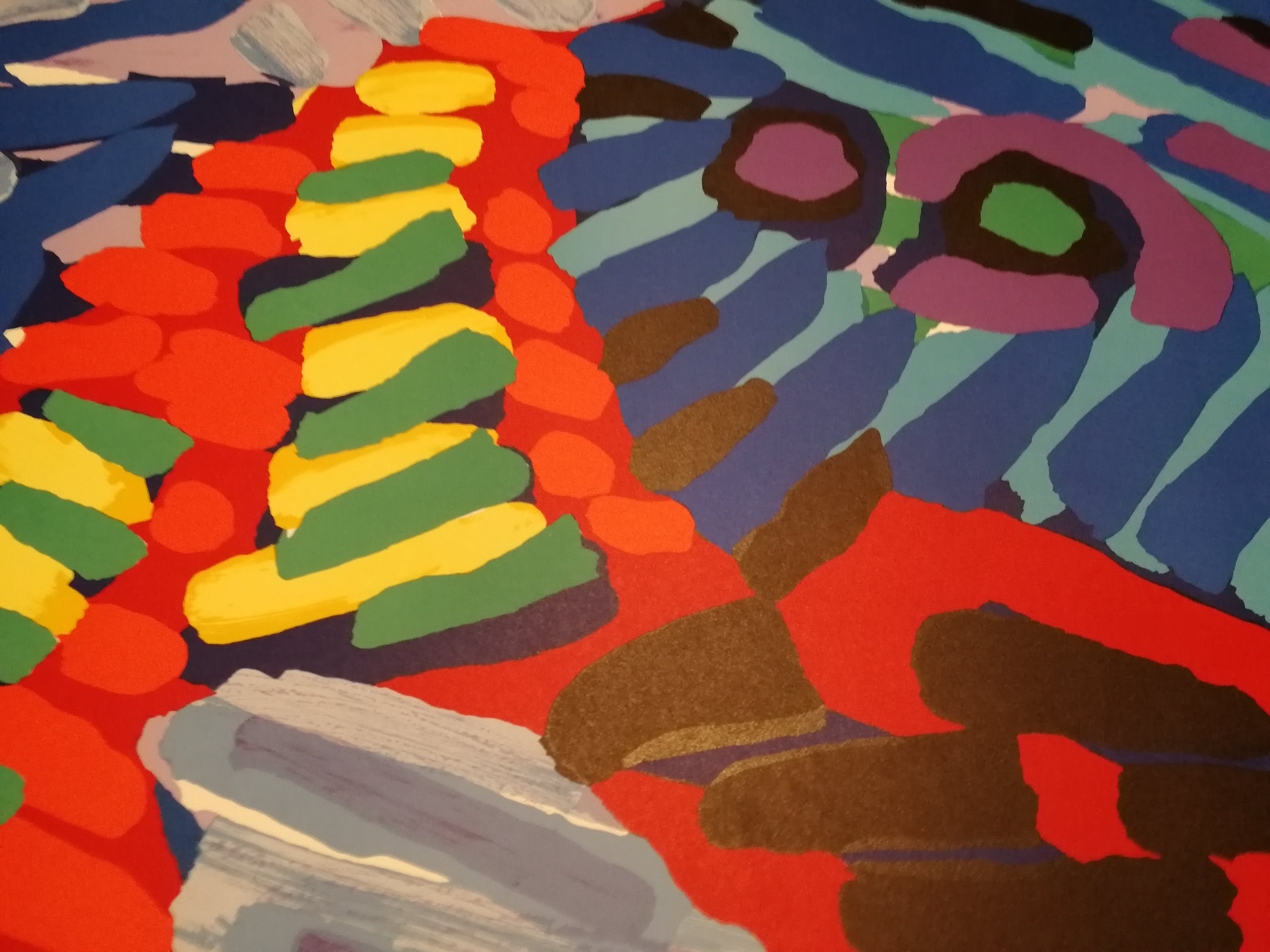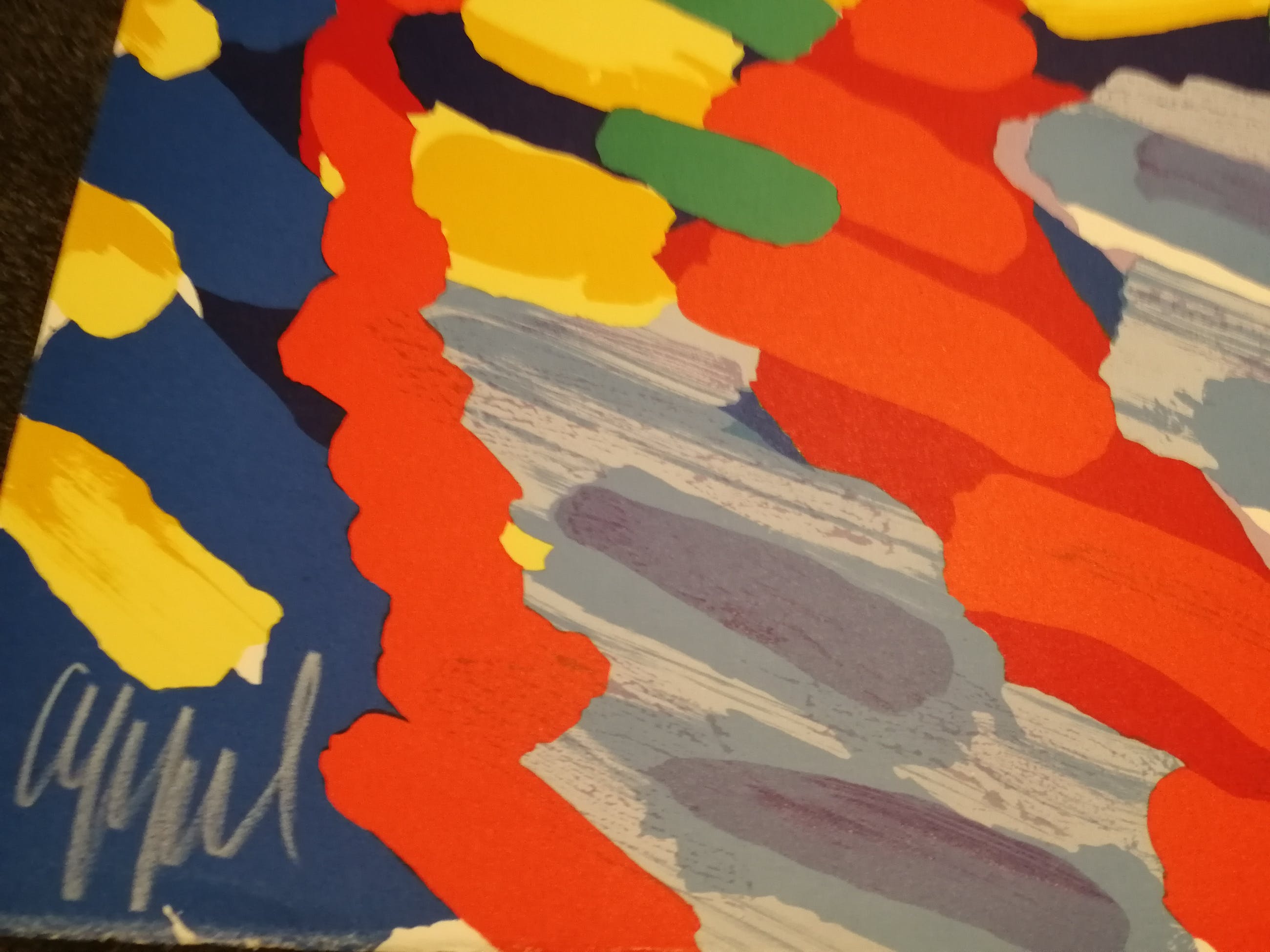 Prachtige litho van Karel Appel uit de streepjes serie. Titel van dit werk is 'See me running again' en komt uit het jaar 1978.