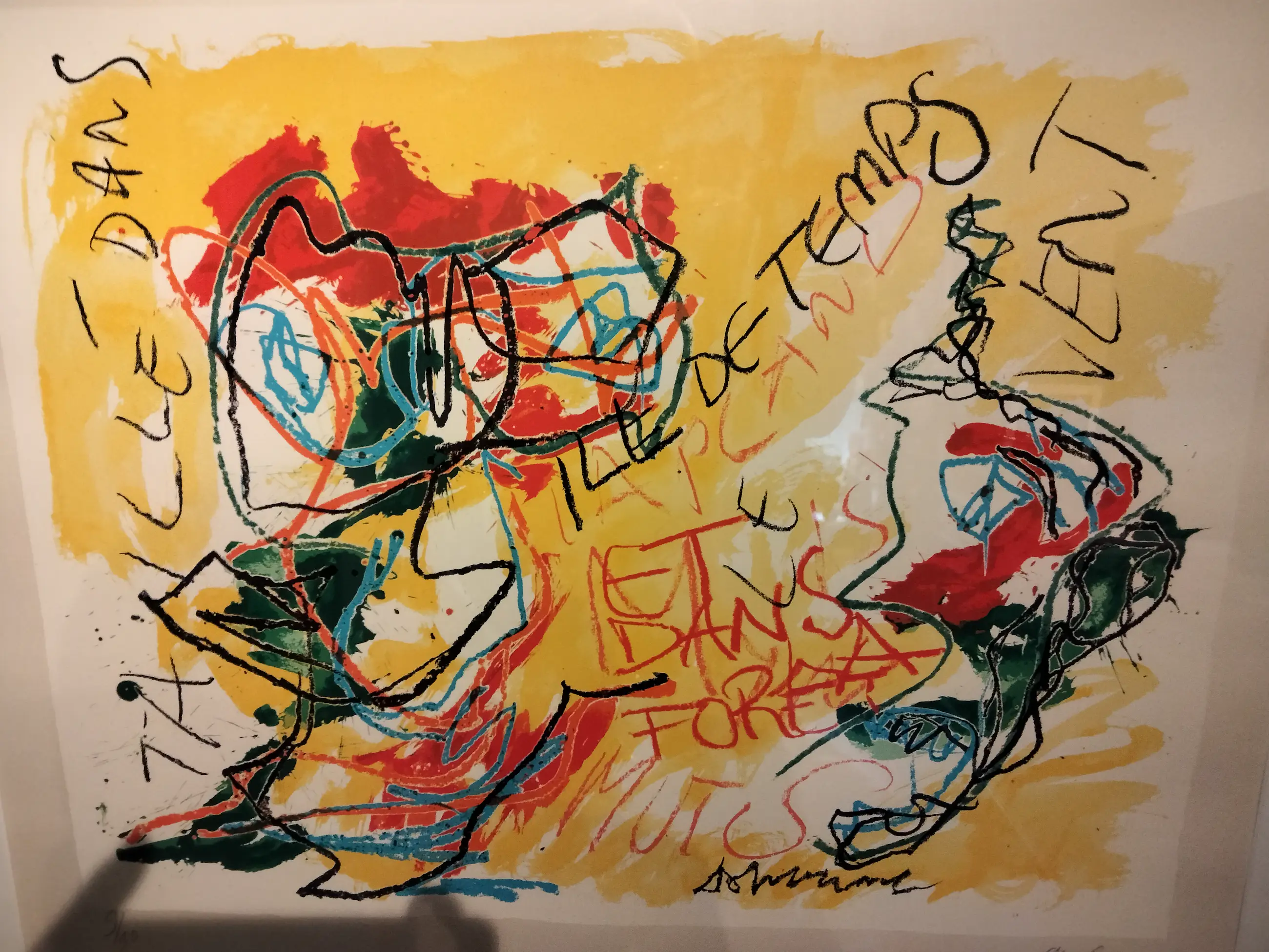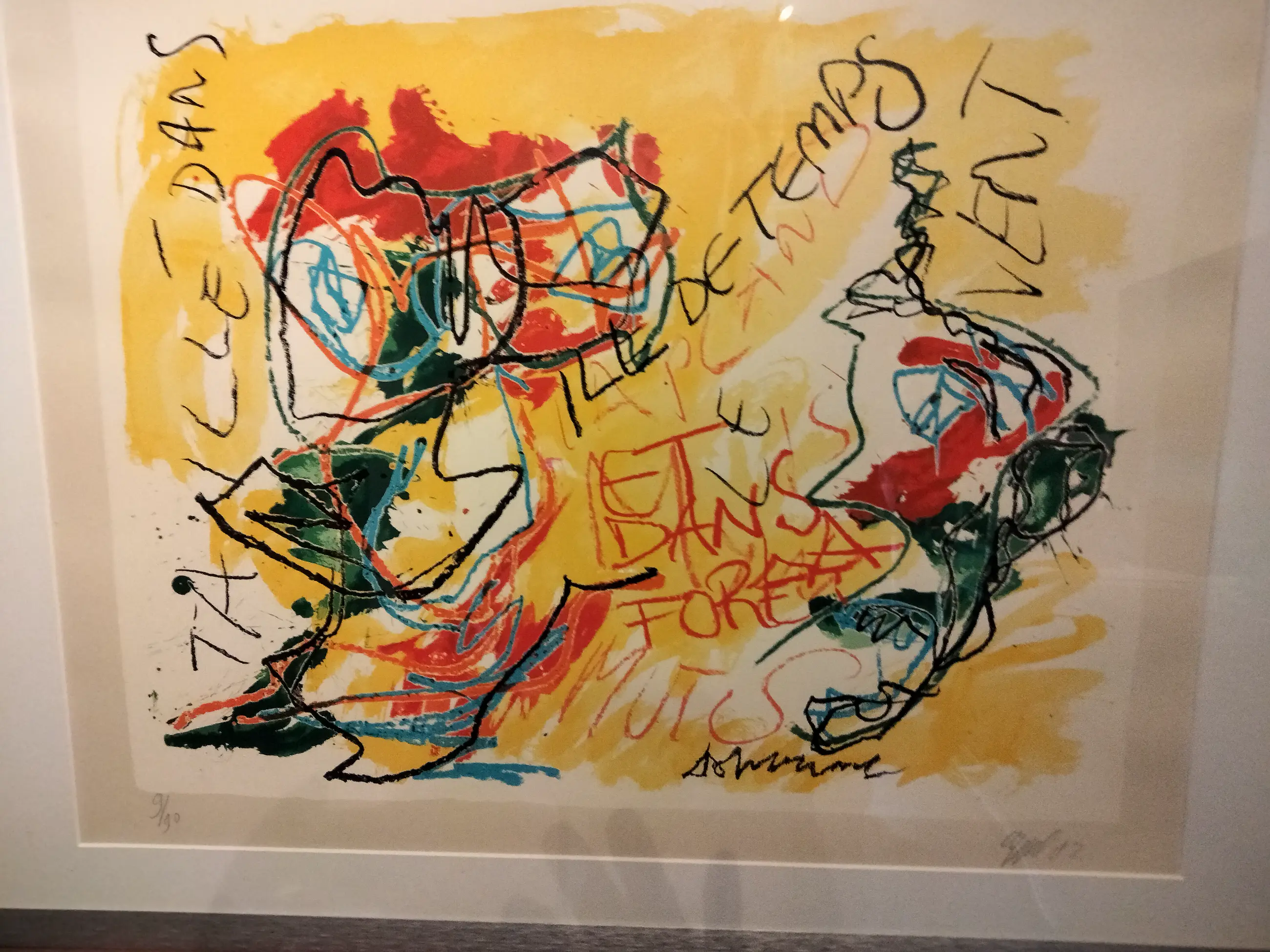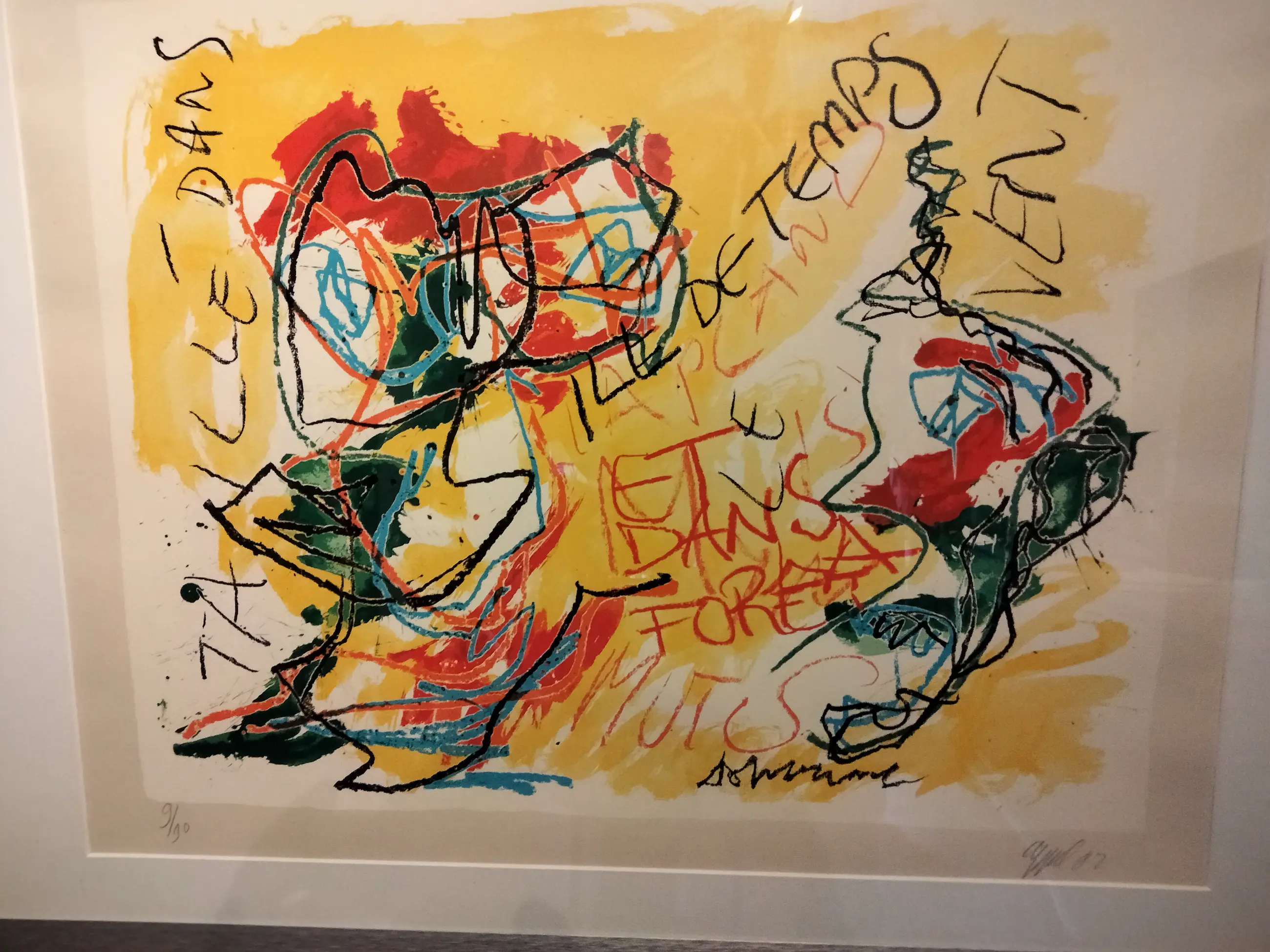 Kleurrijke zeer fraaie zeefdruk van Karel Appel uit 1982 Lage oplage van 90 stuks. Oplage nummer 9/90. Wordt weinig aangeboden. Mooi ingelijst in aluminium geborstelde lijst. Ophangklaar kan zo aan de muur. Uiteraard handgesigneerd en gedateerd en genummerd door Karel Appel. Gedrukt door henk van der vet. Droogstempel van der vet in papier gedrukt rechts onder