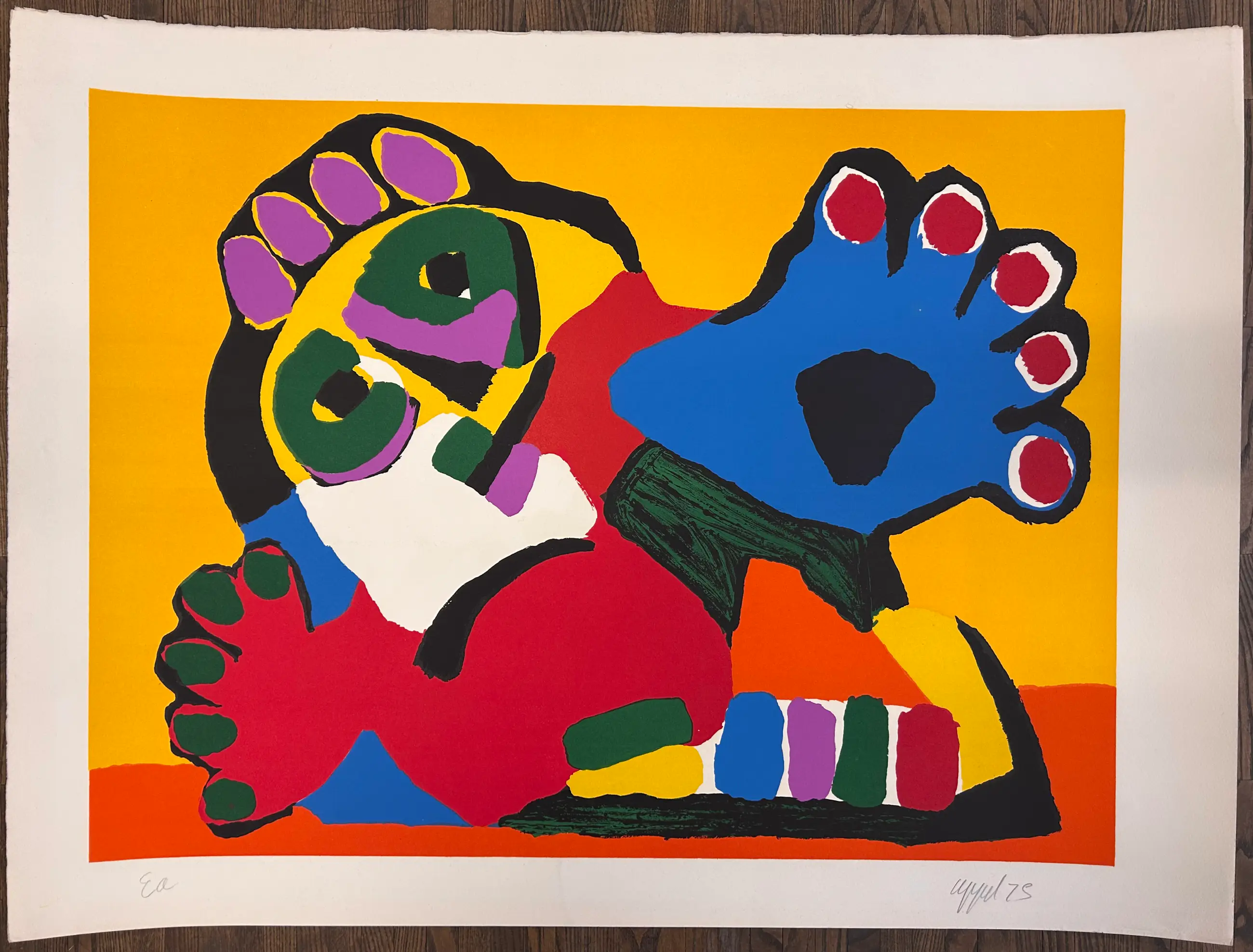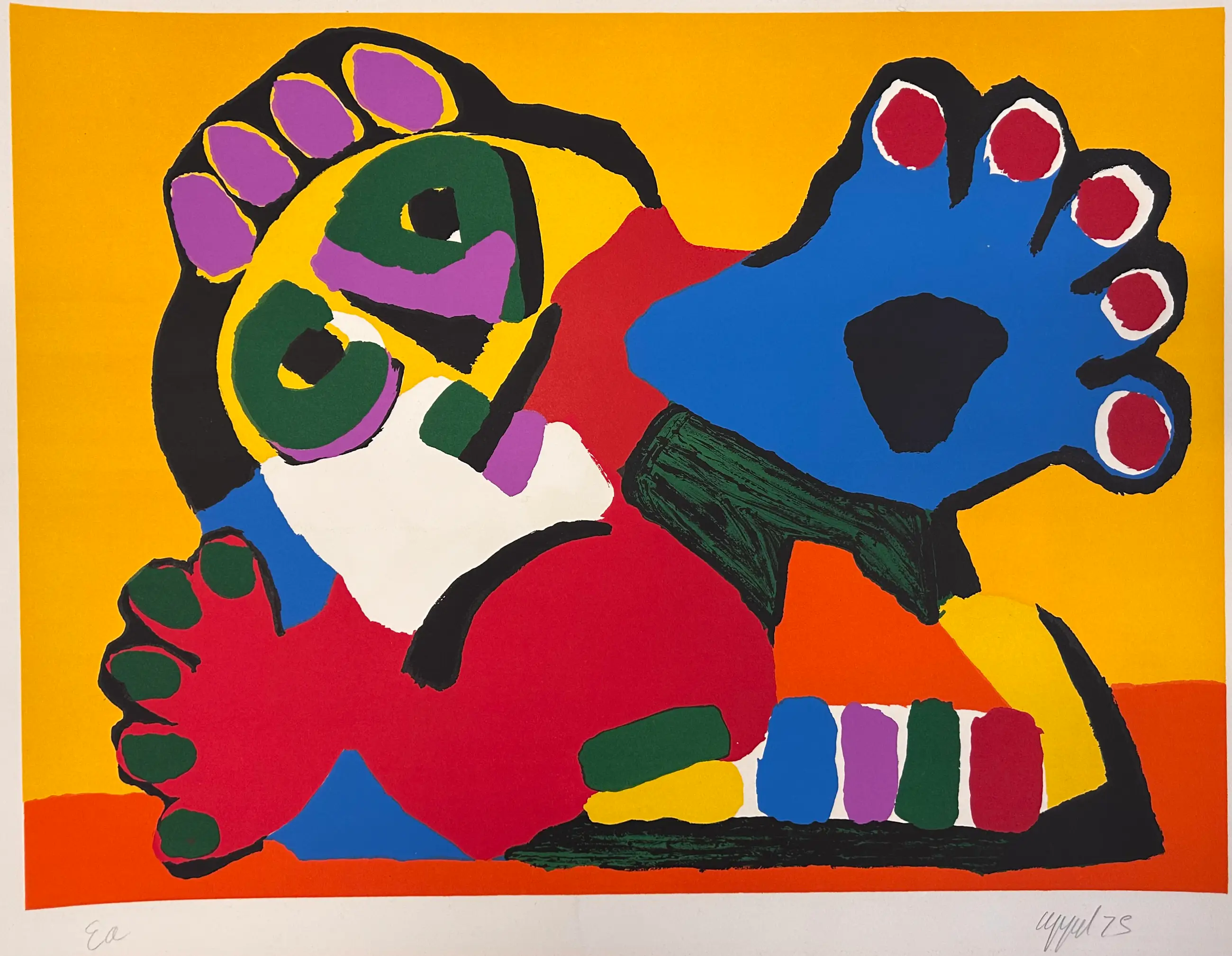Het werk is door Karel appel gesigneerd en genummerd.