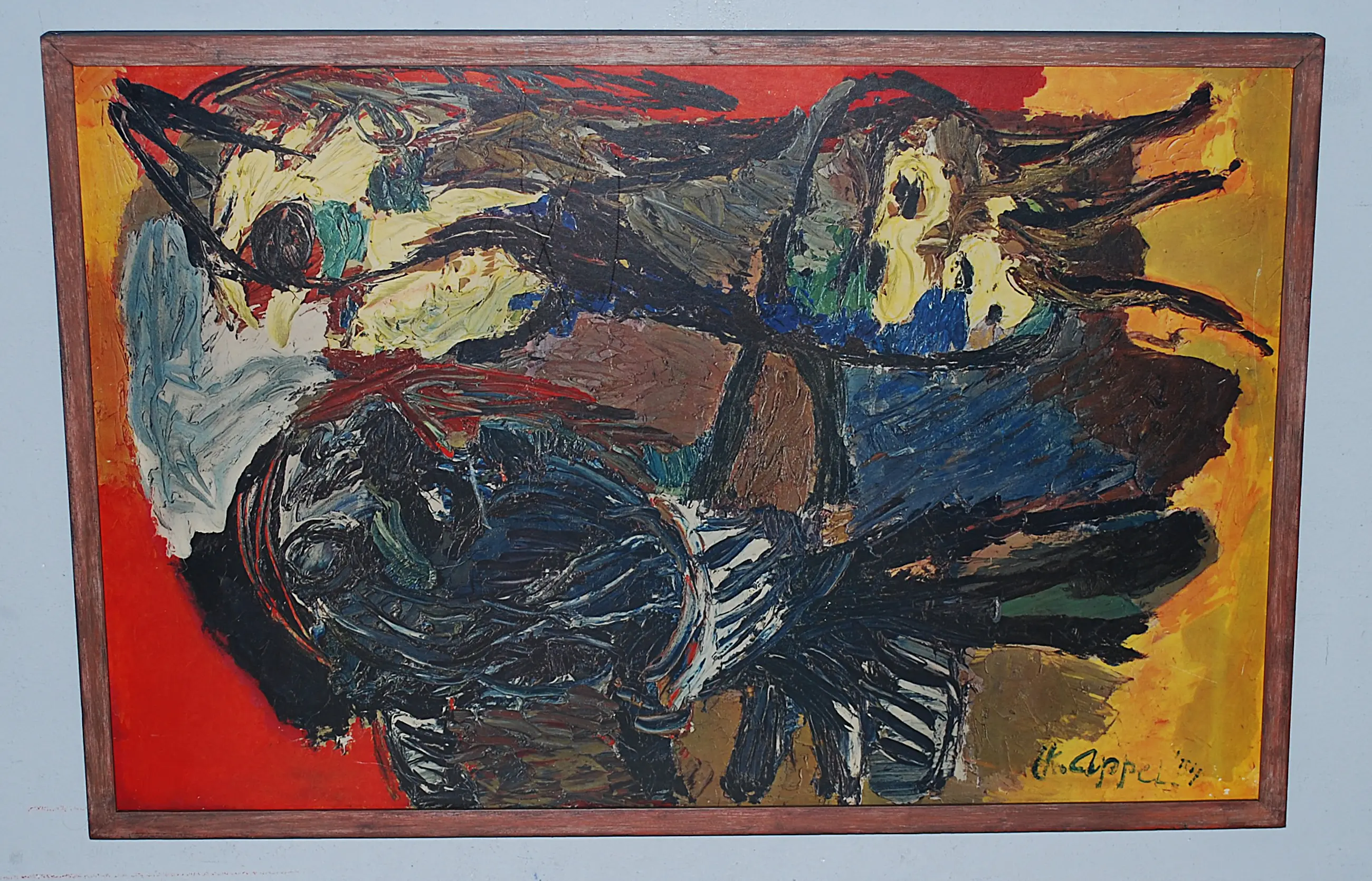 Karel Appel - Twee vogels - antiquarische druk uit de jaren 50 - mooi ingelijst