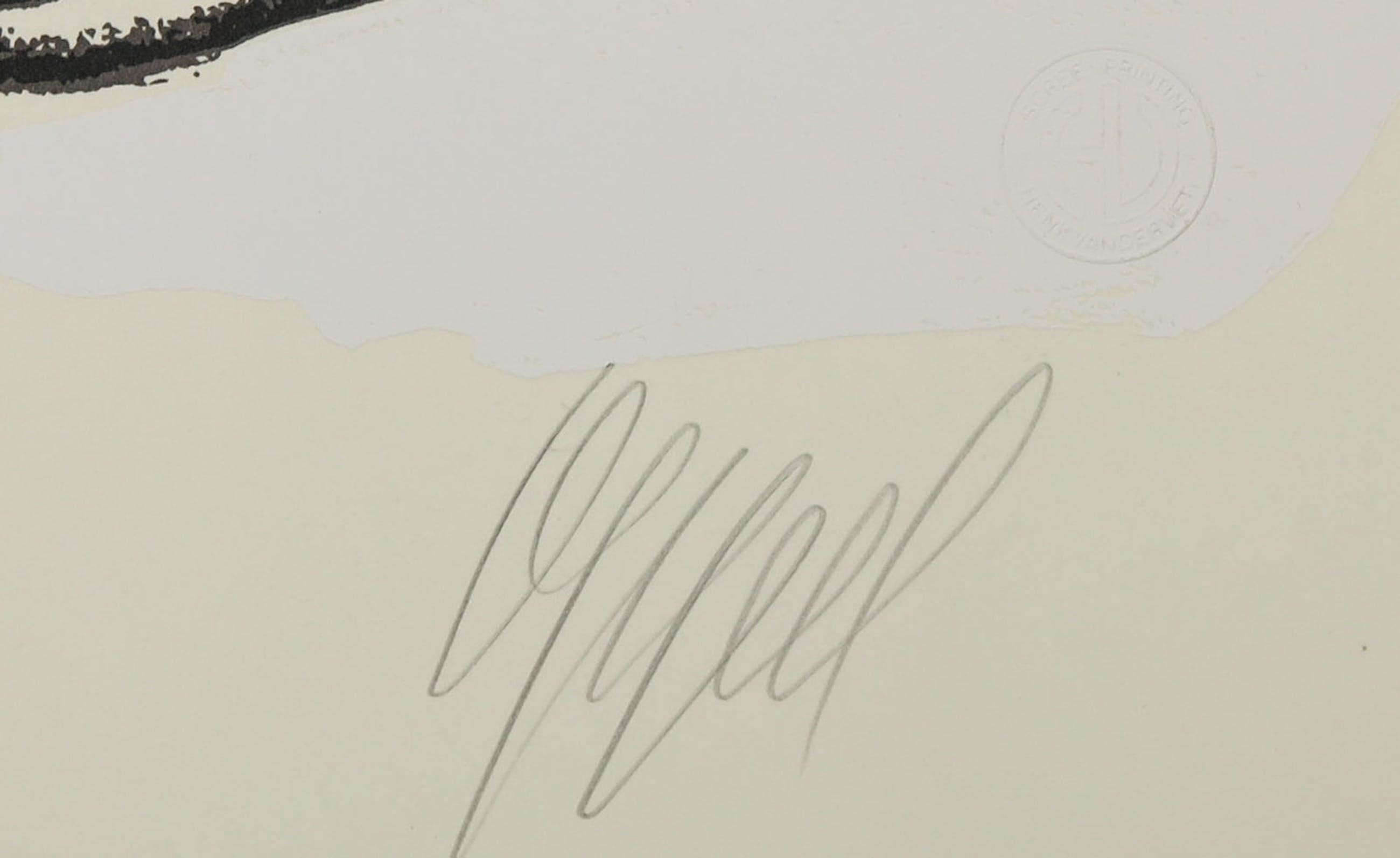 Gedrukt bij atelier van meesterdrukker Henk van der Vet met Appel. (blindstempel in het papier aanwezig).