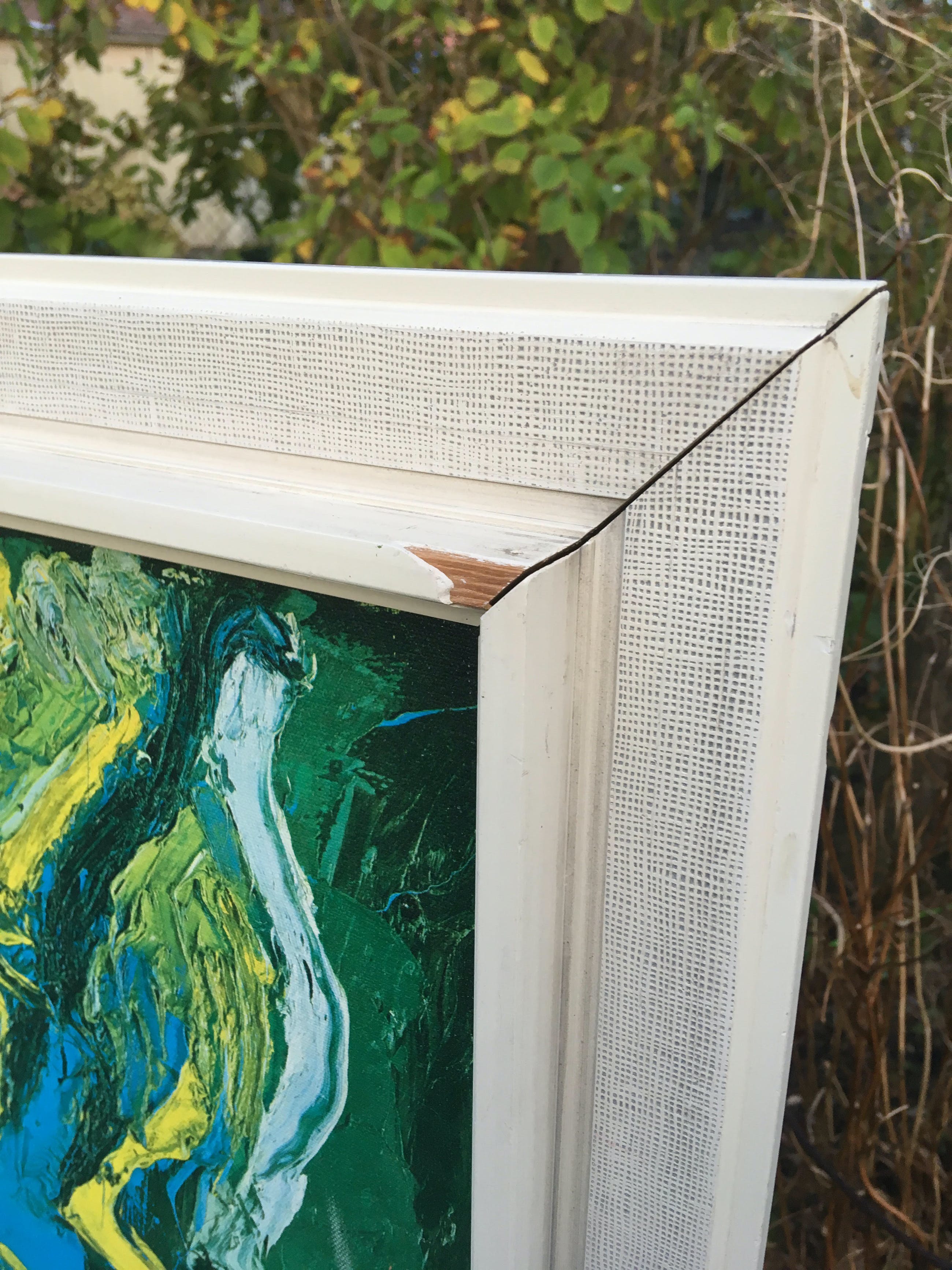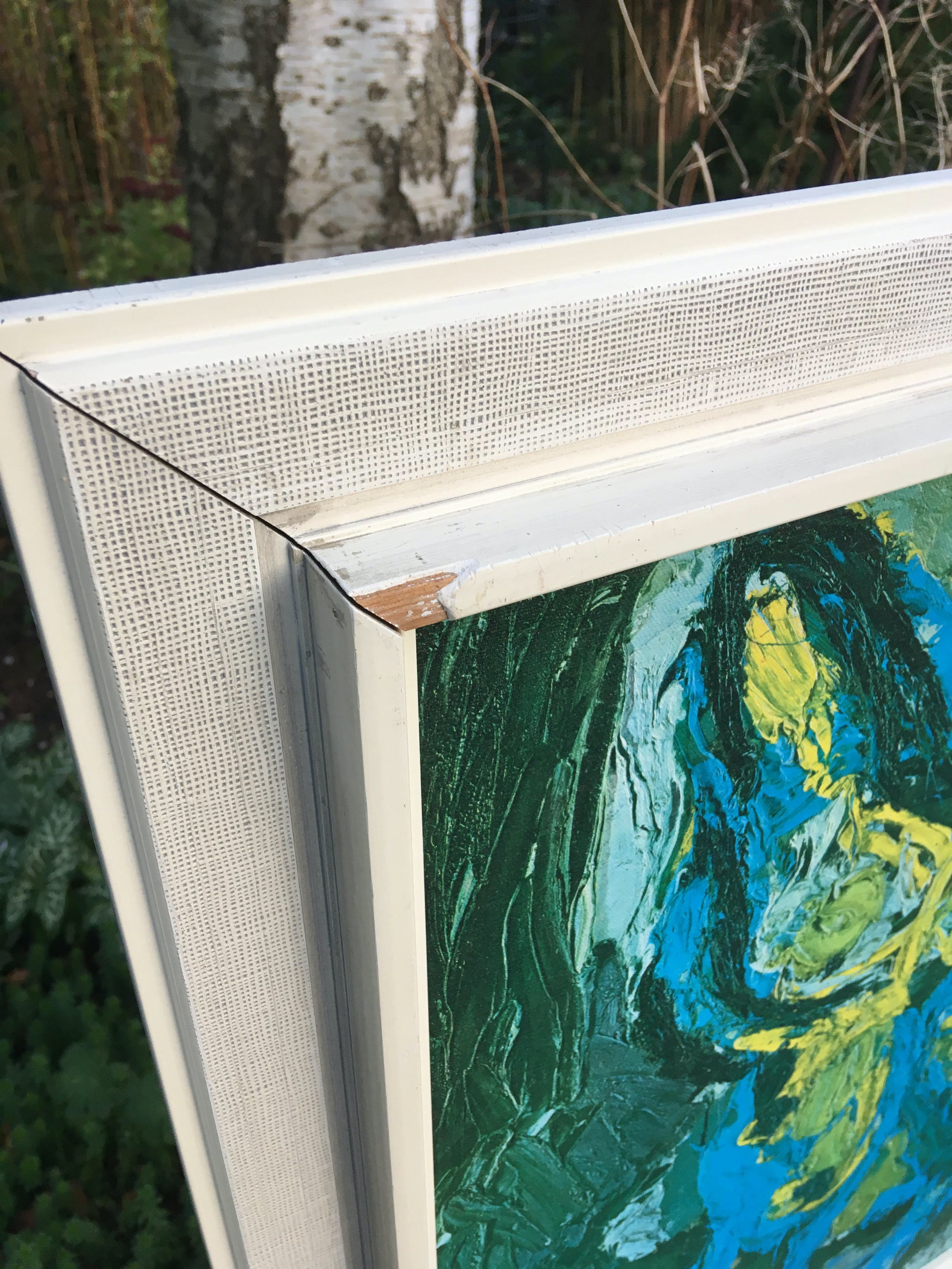 De zeefdruk is in zeer goede staat De lijst is licht beschadigd