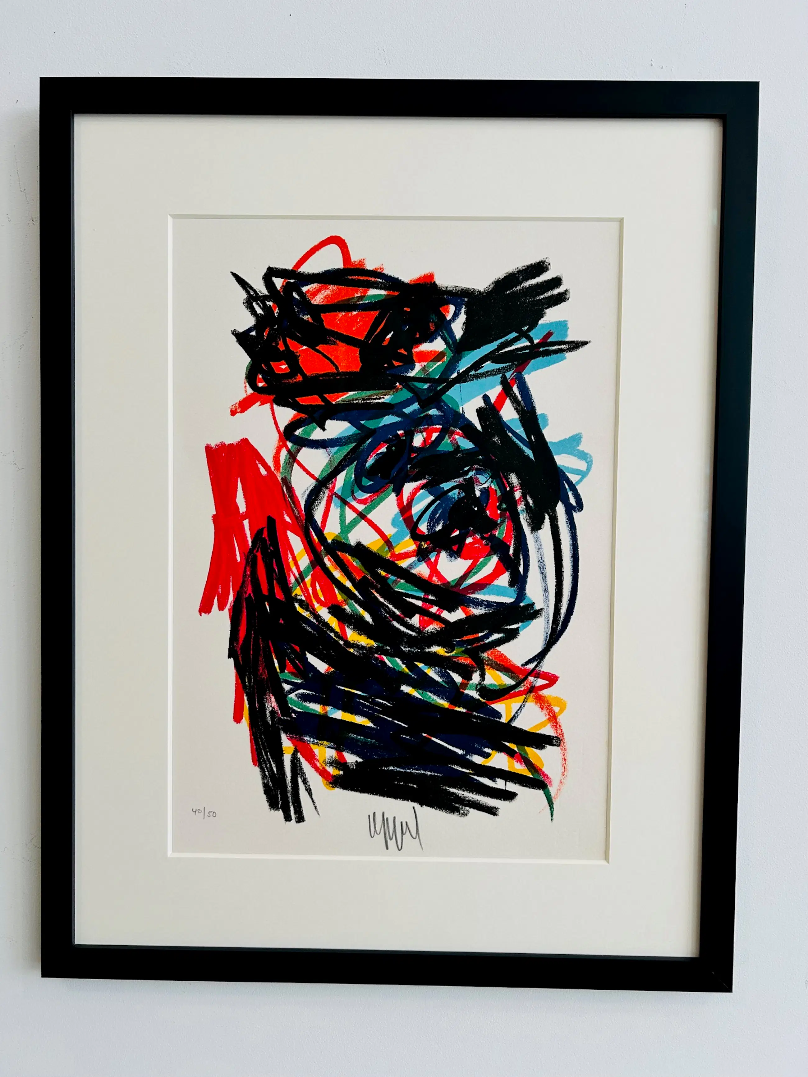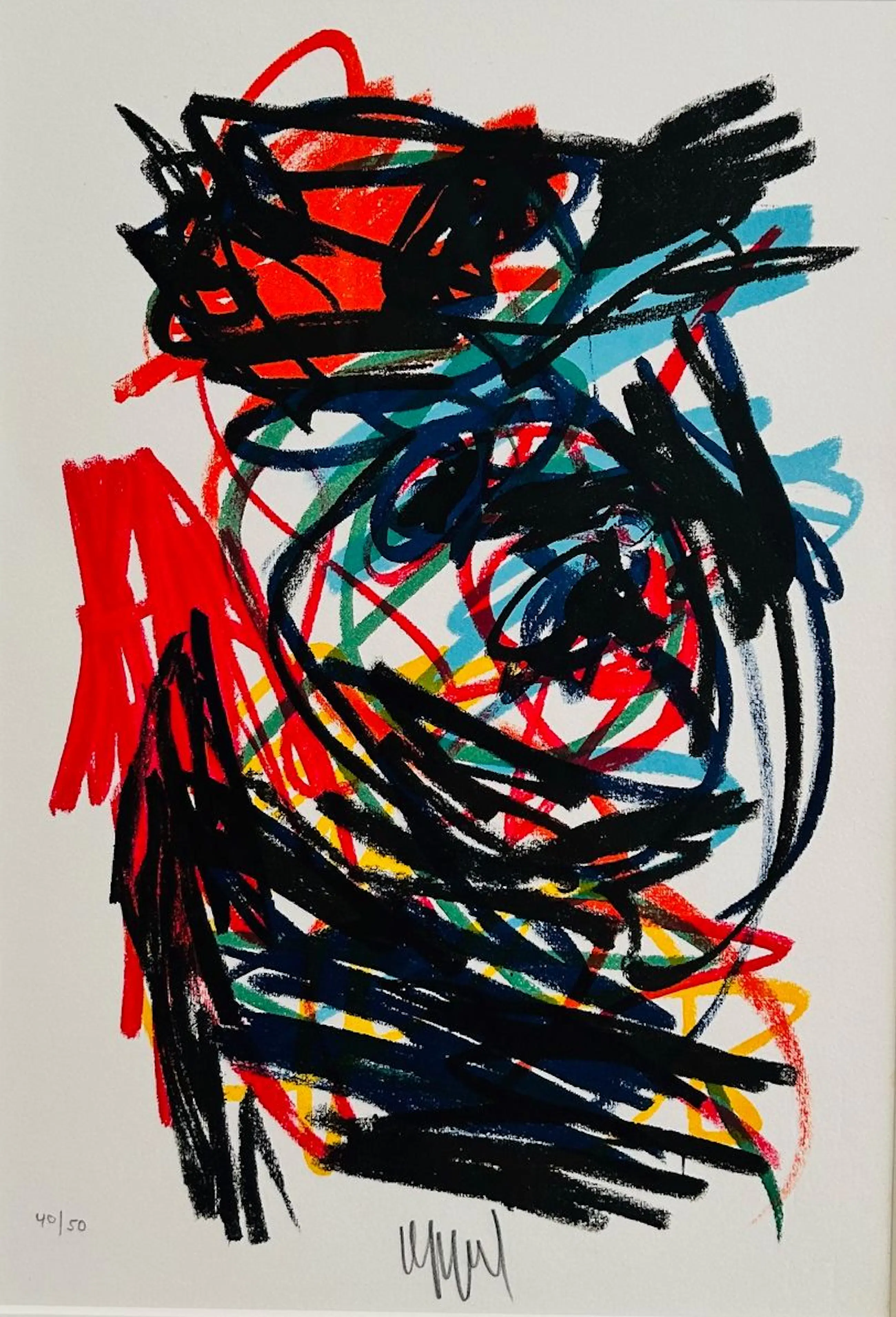 Expressionistisch werk van Cobra-kunstenaar Karel Appel. Gedrukt en gesigneerd in 1962. Genummerd en gesigneerd in potlood. Het werk heeft een nieuwe zwart houten lijst en zuurvrij passe partout. Het werk is in zeer goede staat. De lijst is nieuw en heeft kostbaar uv-werend (70%) glas en kan zo aan de muur. Het werk werd uitgebracht door Der Spiegel zowel als twee lithografie los bij het boek 'Appel' op dun papier en niet gesigneerd en ook los als lithografie op dik papier genummerd en gesigneerd door de kunstenaar in een oplage van 50 exemplaren. Het betreft hier een van de twee gesigneerde exemplaren op dik papier. Het werk kunt u vooraf komen bekijken en beoordelen. Het werk kan na aankoop afgehaald worden bij galerie Rotor in Gorcum of per koerier binnen Nederland en België ( via Swift). . Ophalen is leuker dan drinken we gelijk koffie.