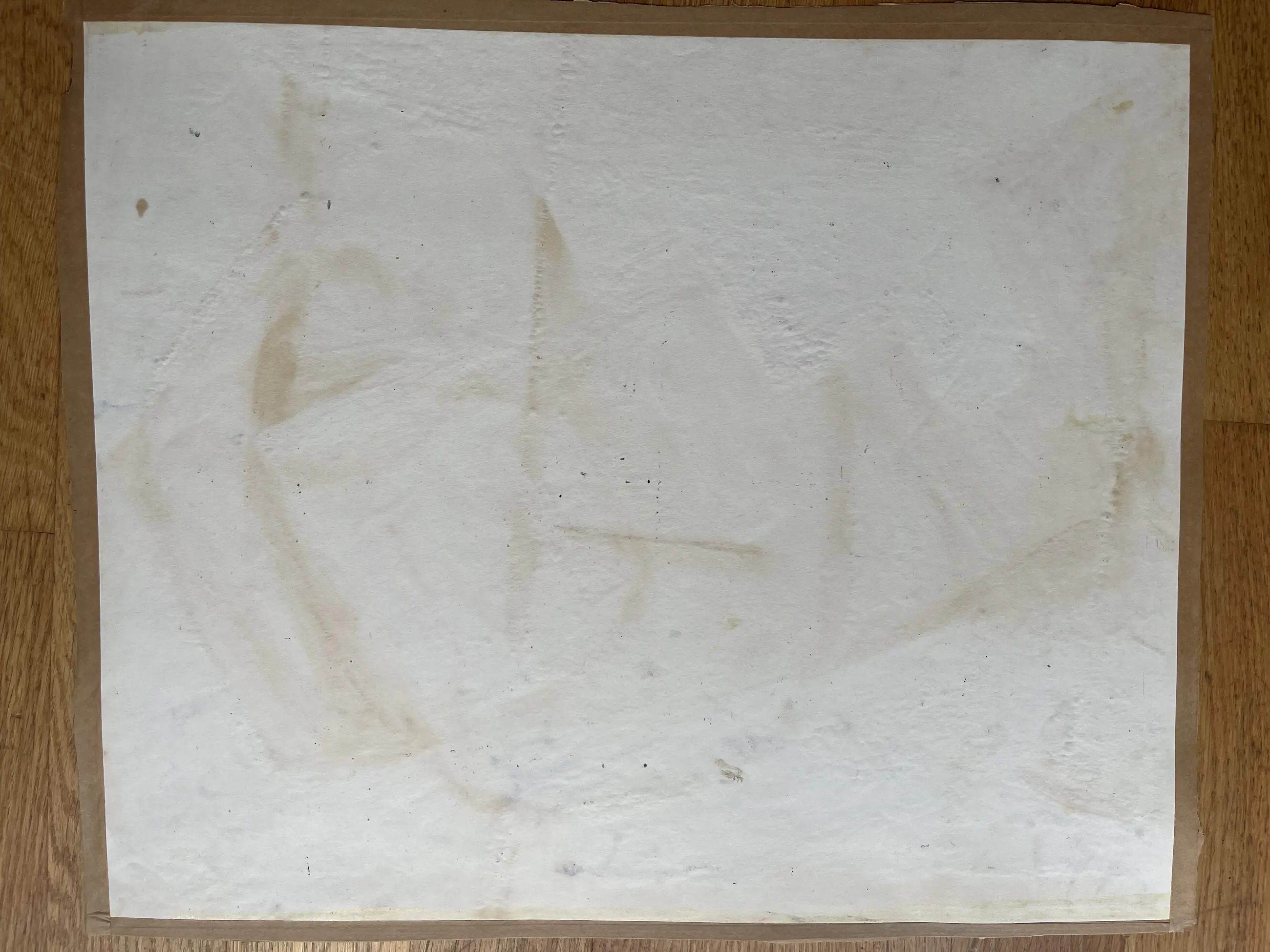 Gouache uit 1943. Werk is gelijst geweest getuige de plakrand aan achterzijde. De rand van de afbeelding is niet kaarsrecht afgesneden. Boven en onderkant scheelt bijna een centimeter. Breedte boven 55,5 cm, onder 54,7 cm. Afmeting 46 x (ongeveer) 55 cm.