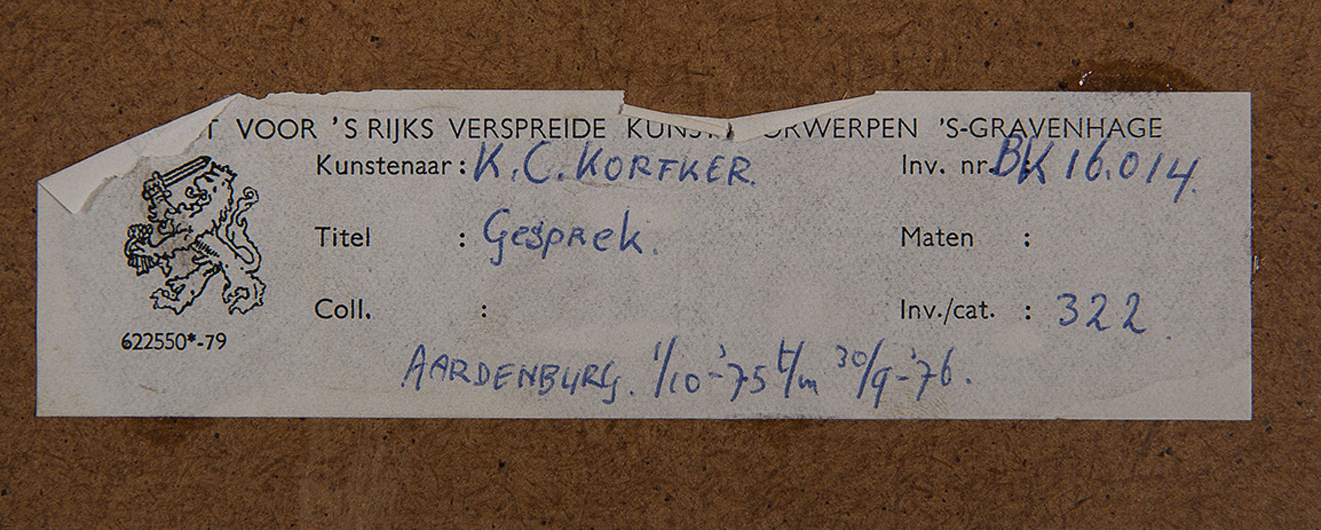 Herkomst: BKR Aardenburg(Het kunstwerk is afgevoerd uit de rijkscollectie in 2018)