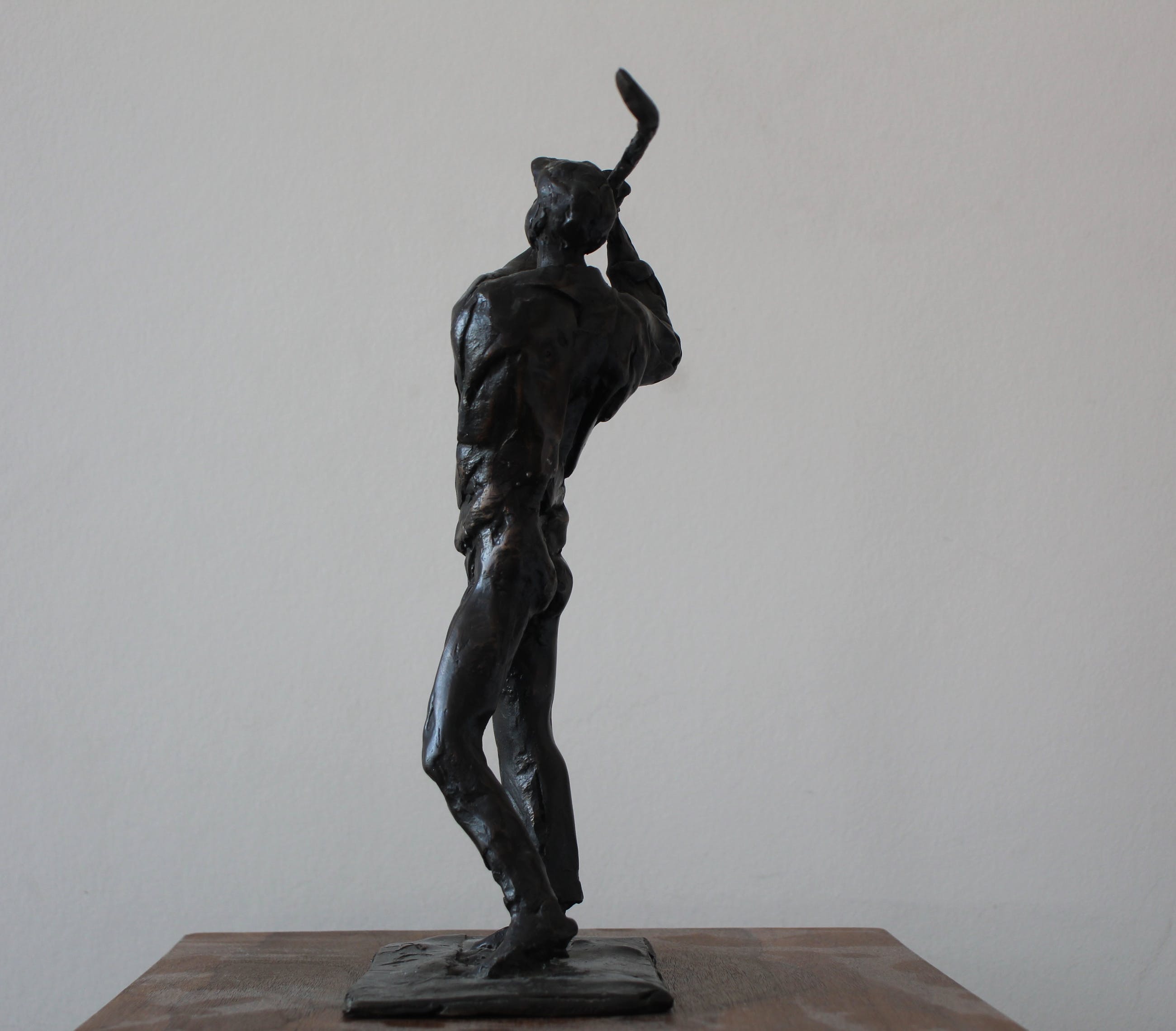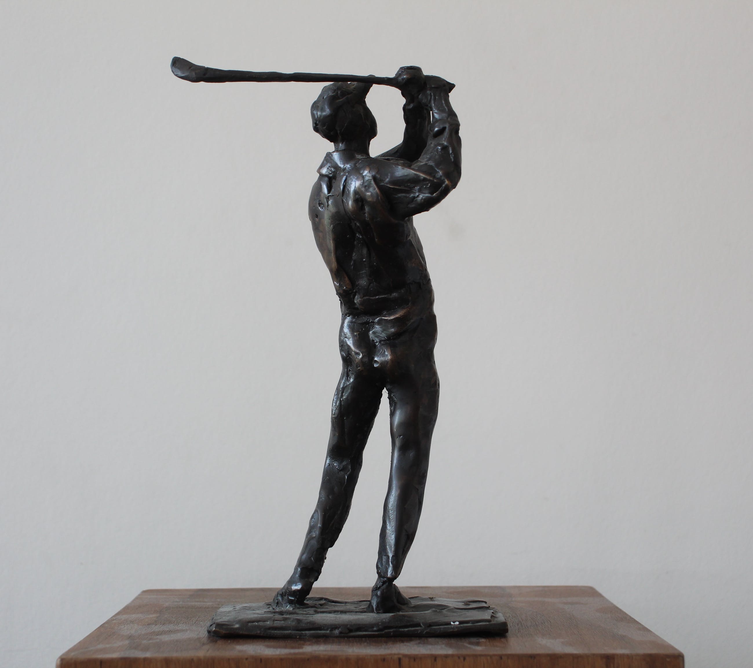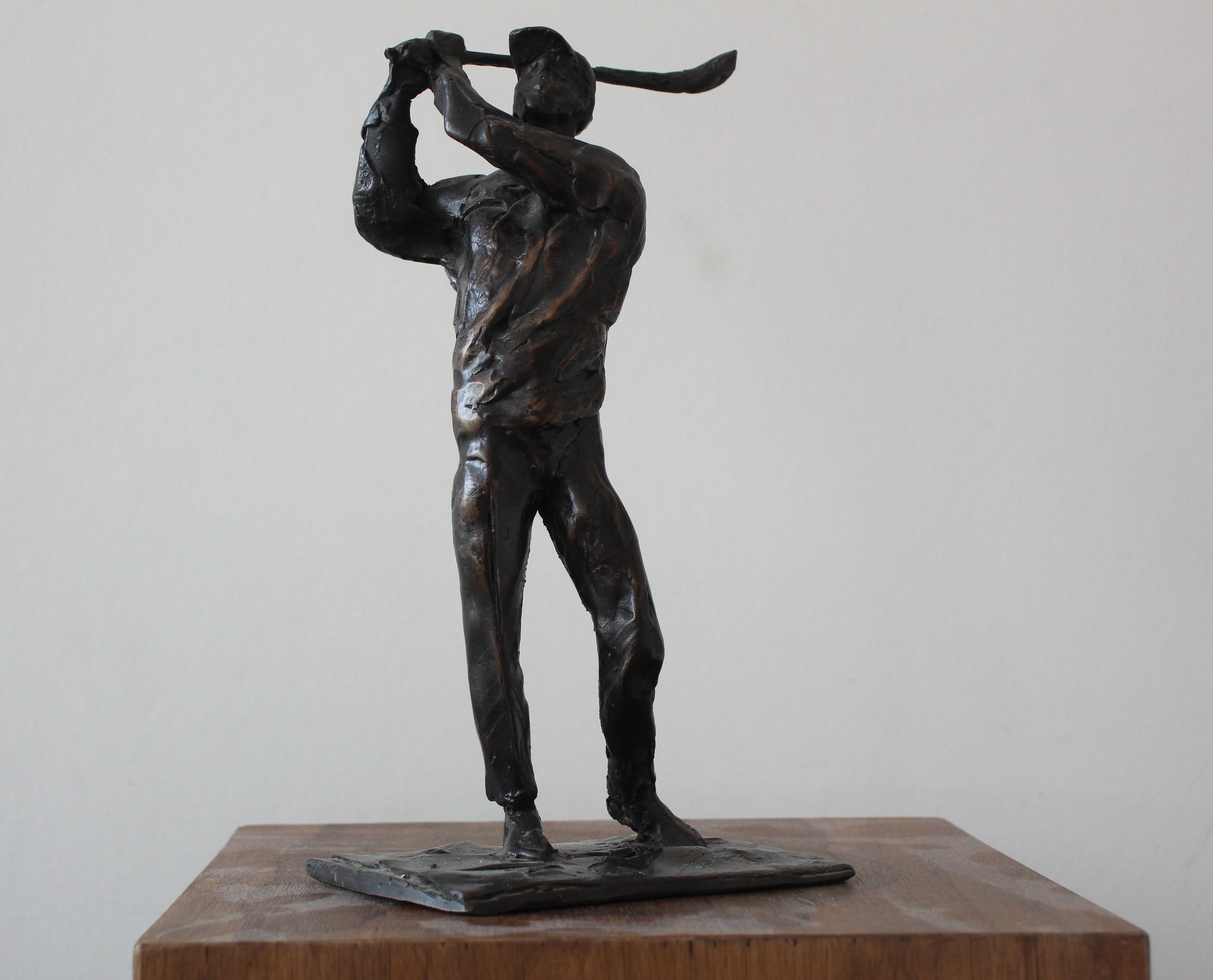 Prachtig bronzen beeld van Karel Gomes. Titel: Golfer. Het werk is op de voet gesigneerd.
