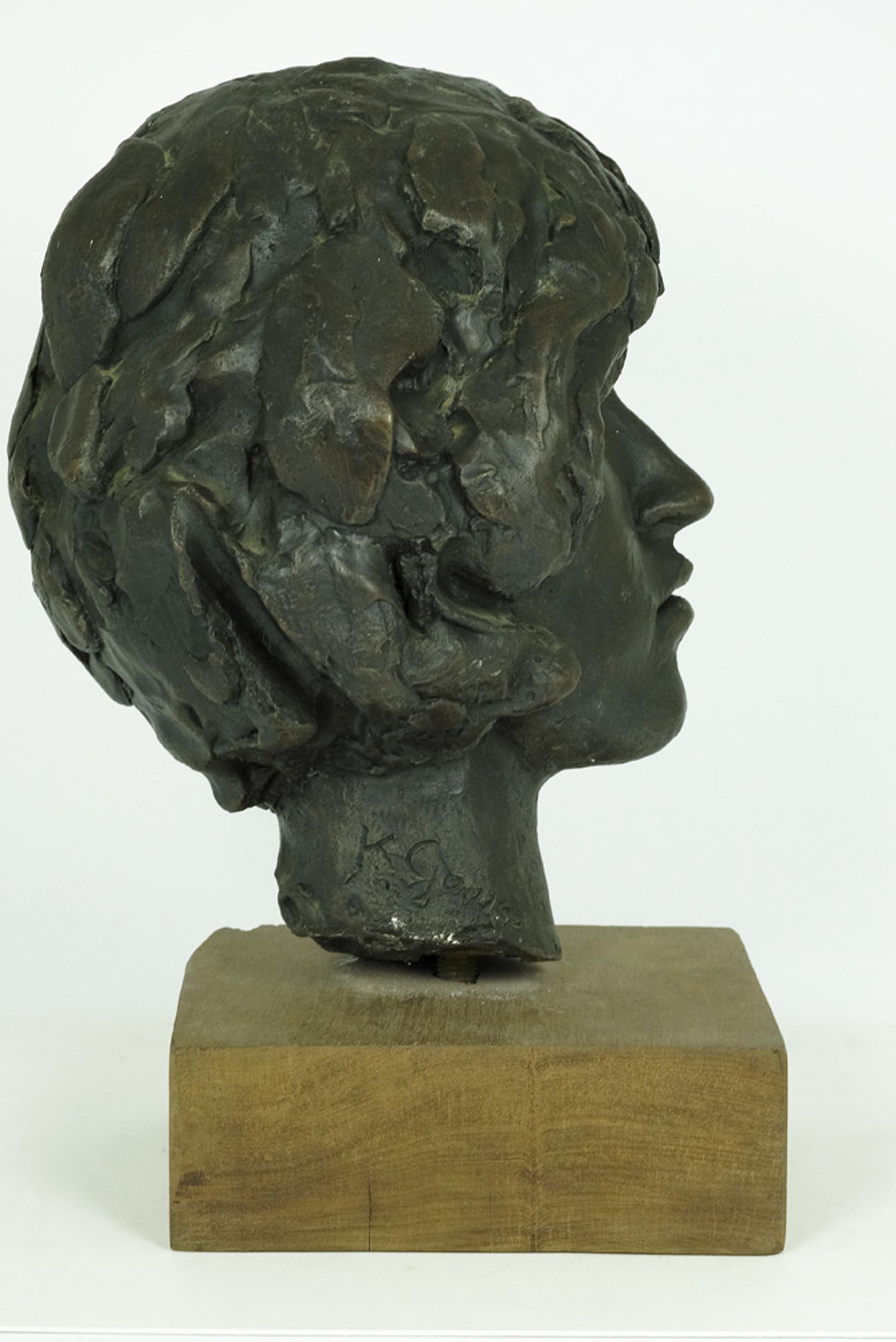 Het betreft een unicum gemaakt van een mooie kwaliteit brons en tevens gemonteerd op een houten sokkel.