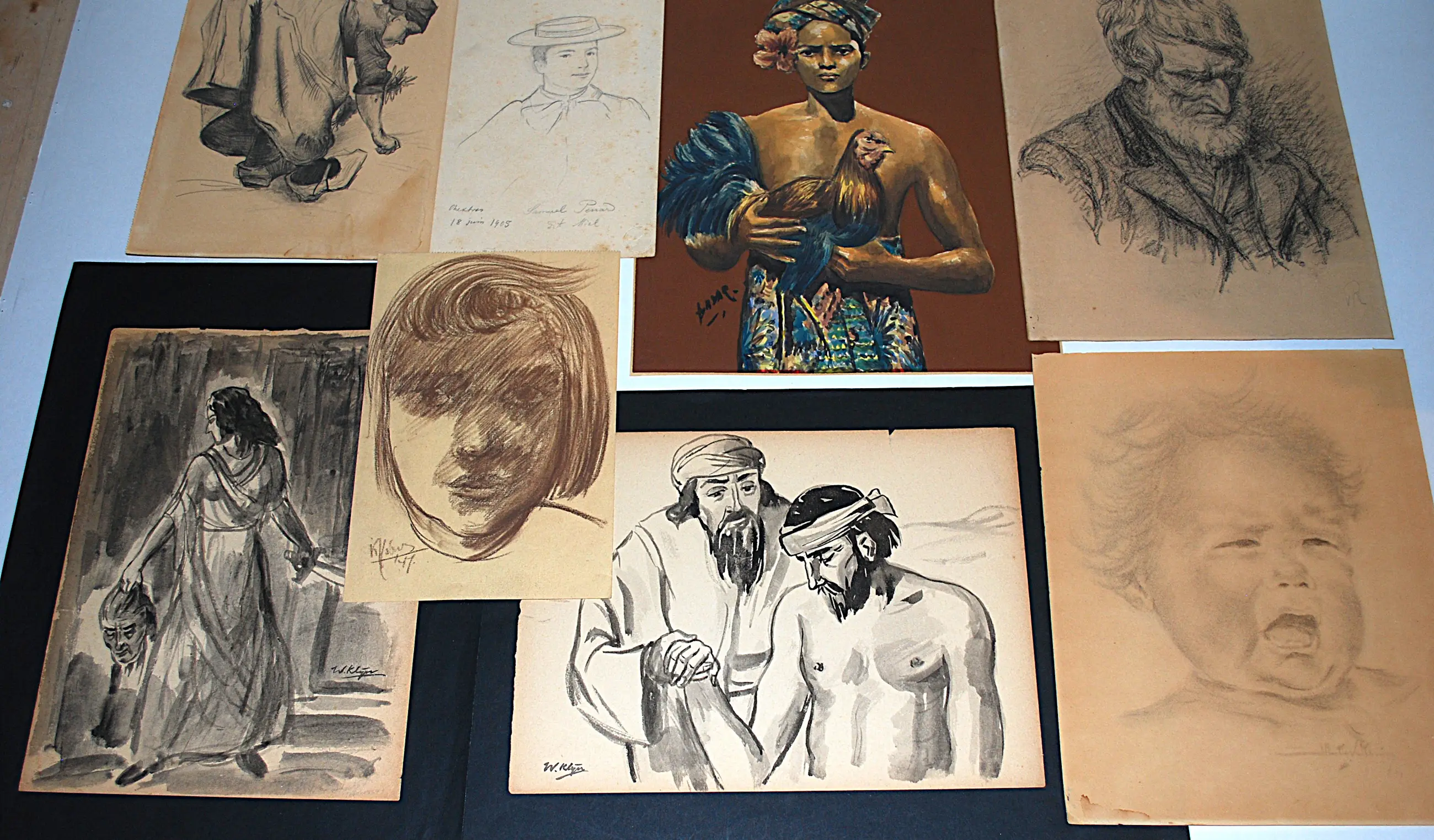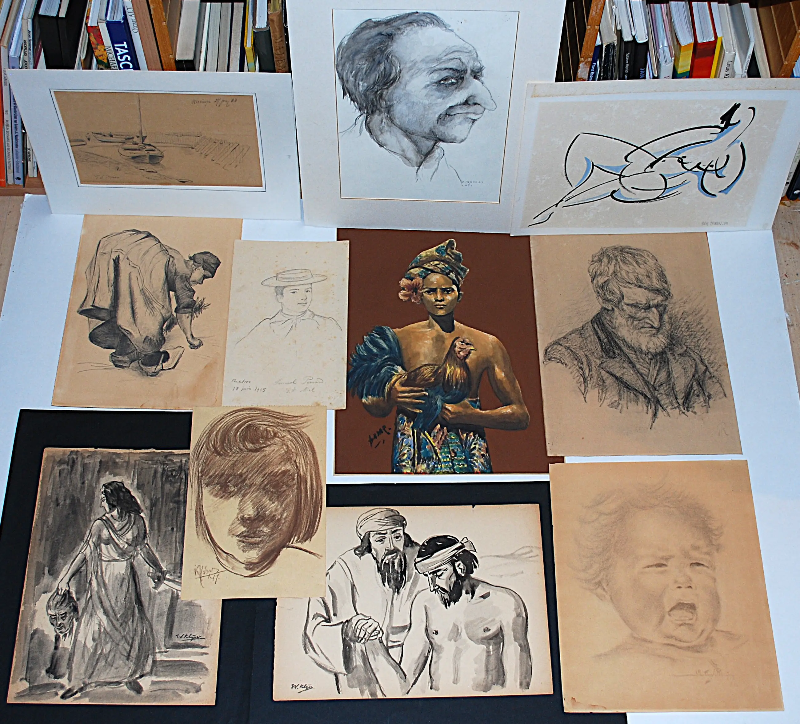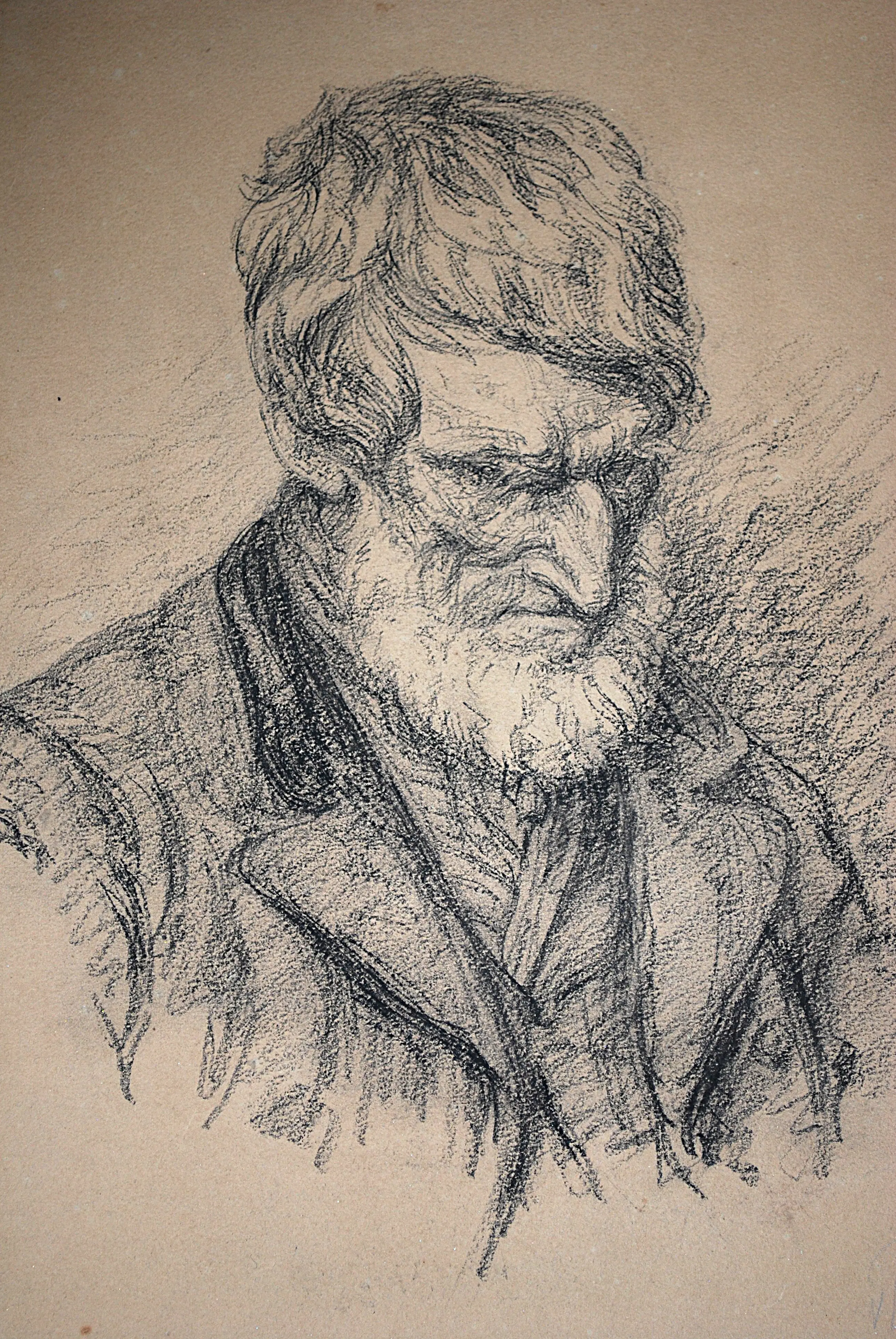 - Gesigneerd v. R.: tekening portret van een nadenkende man, 33x24 cm