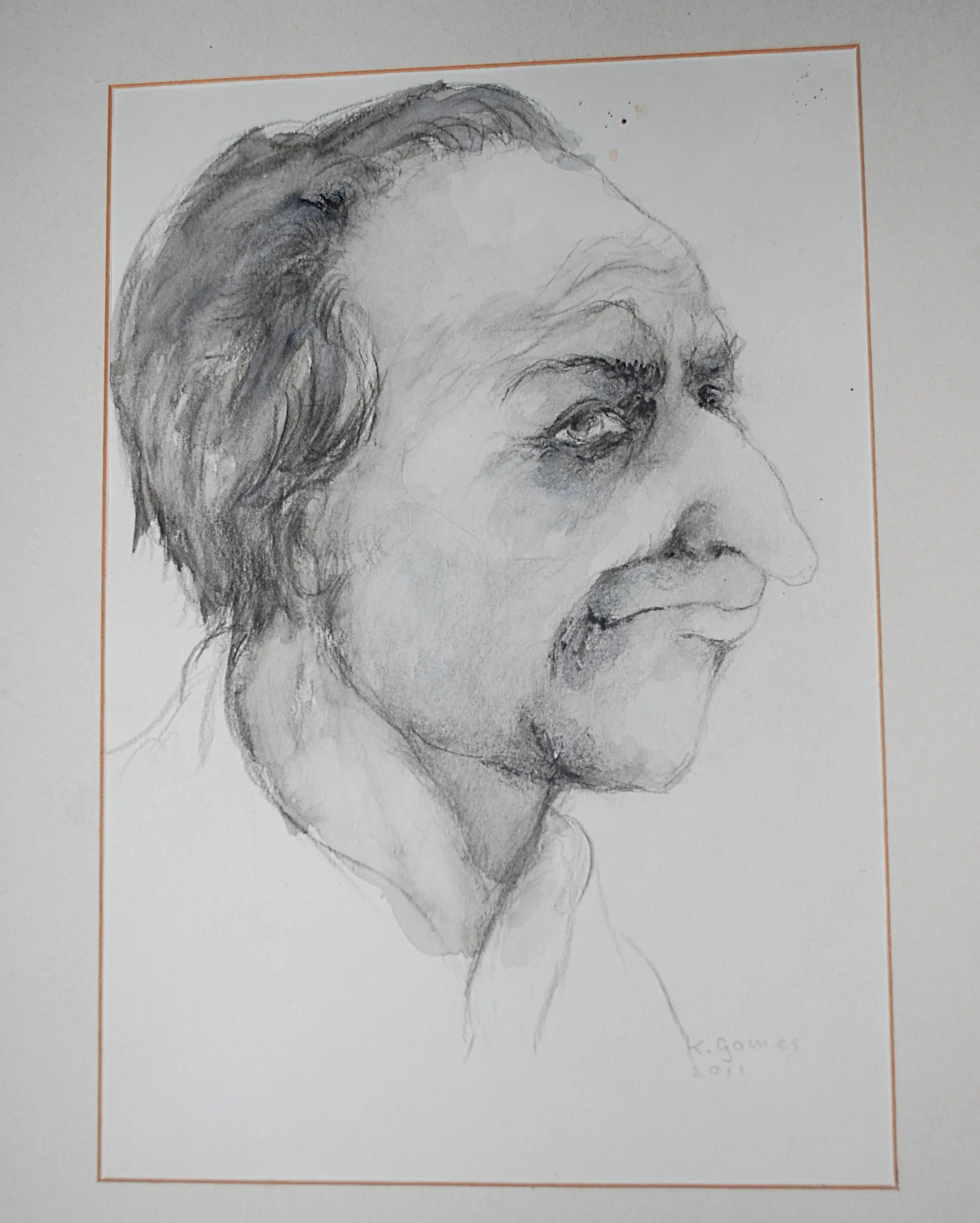 - Gomes tekening 2011 32x24 cm, achter passepartout