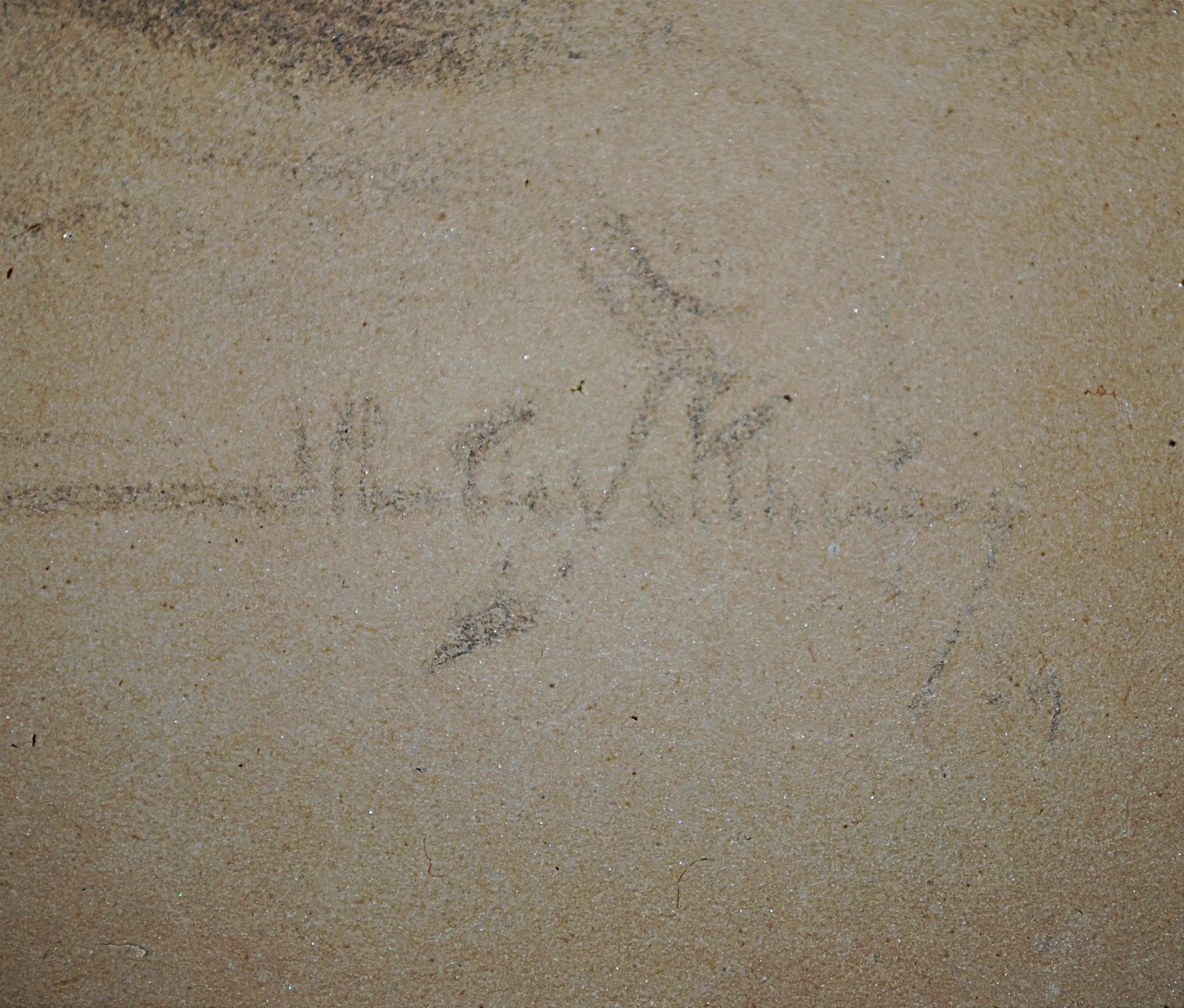 - Onbekende gesigneerd 1947: krijt, jongeman met haarlok, 24x16 cm