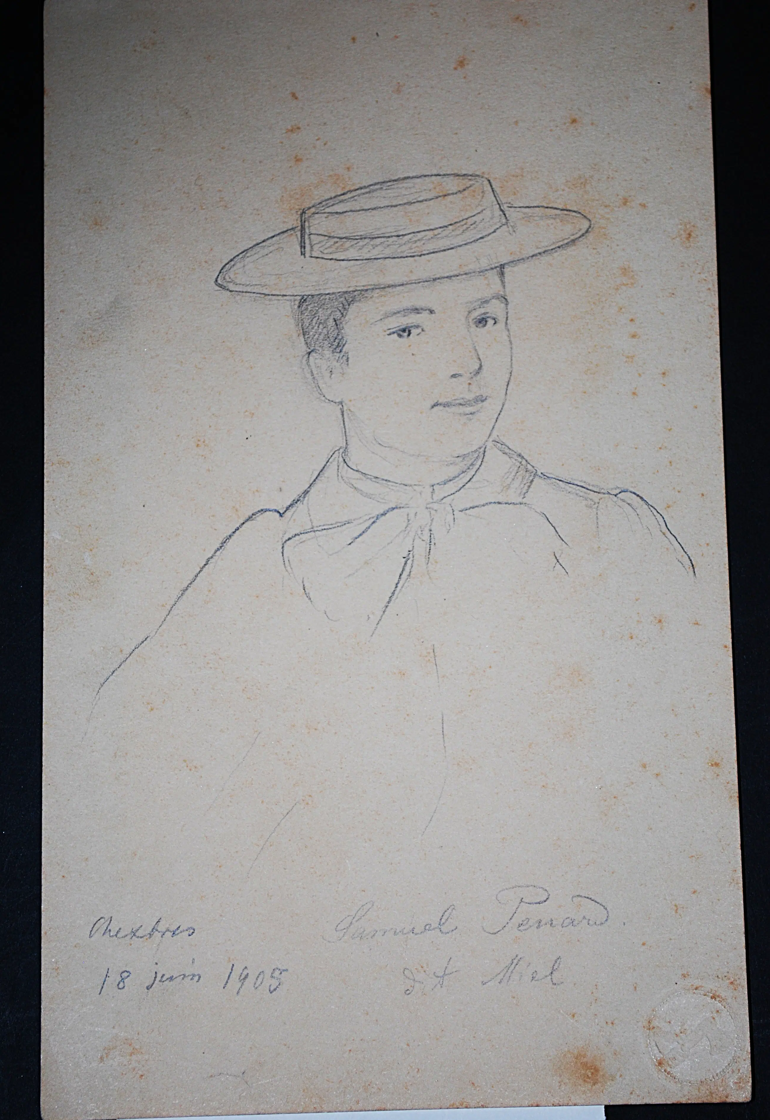 - Samuel Penard (?): tekening jongeman met hoed, 1908, 25x15 cm