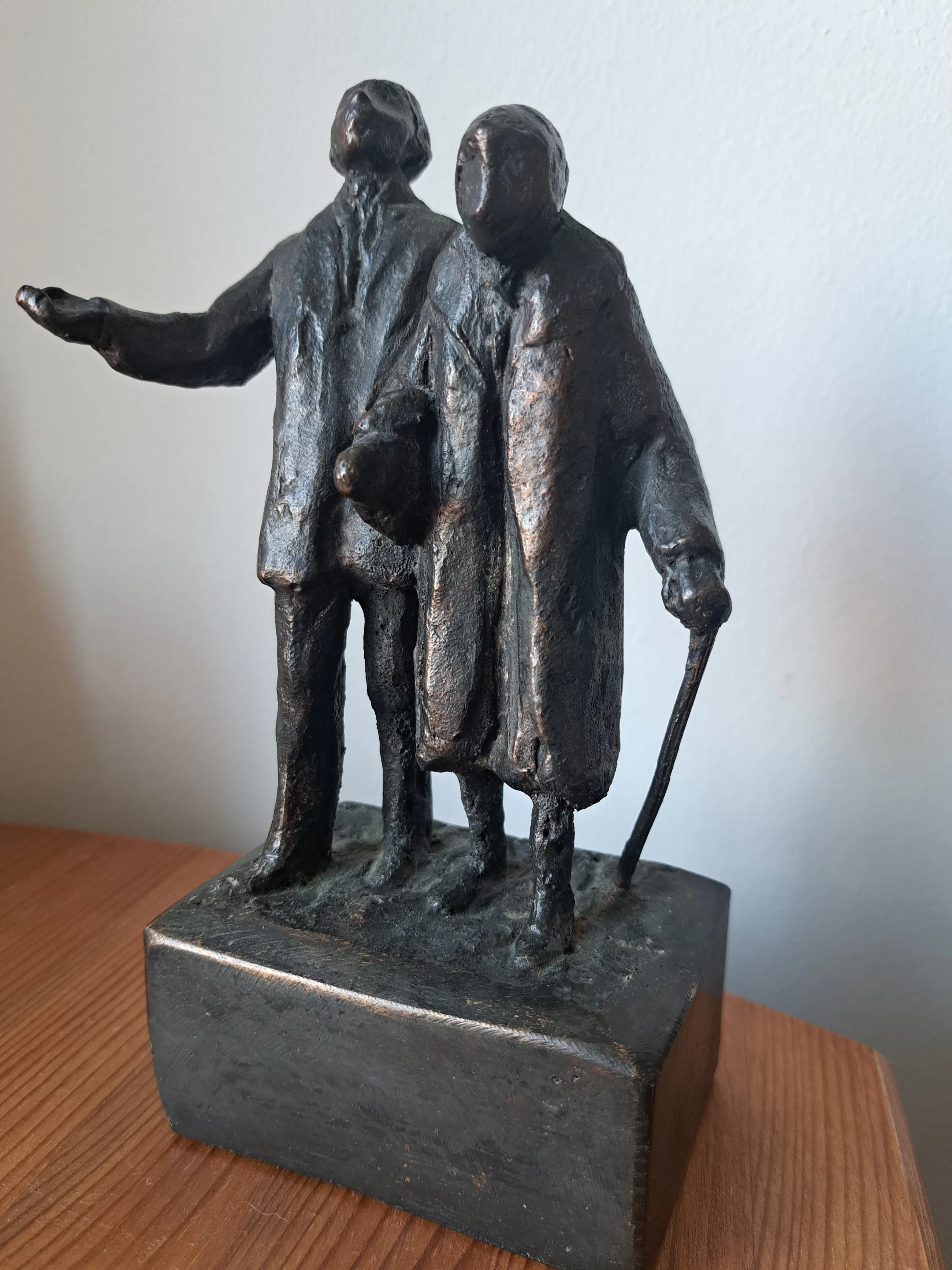 Karel Gomes (NEDERLANDS, 1930-2016) Oud echtpaar gesigneerd met initialen 'KG' (op de sokkel) brons met een donkerbruine patina 19 cm hoog Ontworpen en gegoten op een onbekende datum en in een onbekende oplage. Geveild Christie's https://www.christies.com.cn/en/lot/karel-gomes-dutch-b1930-elderly-couple-4855918/?intObjectID=4855918&lid=1