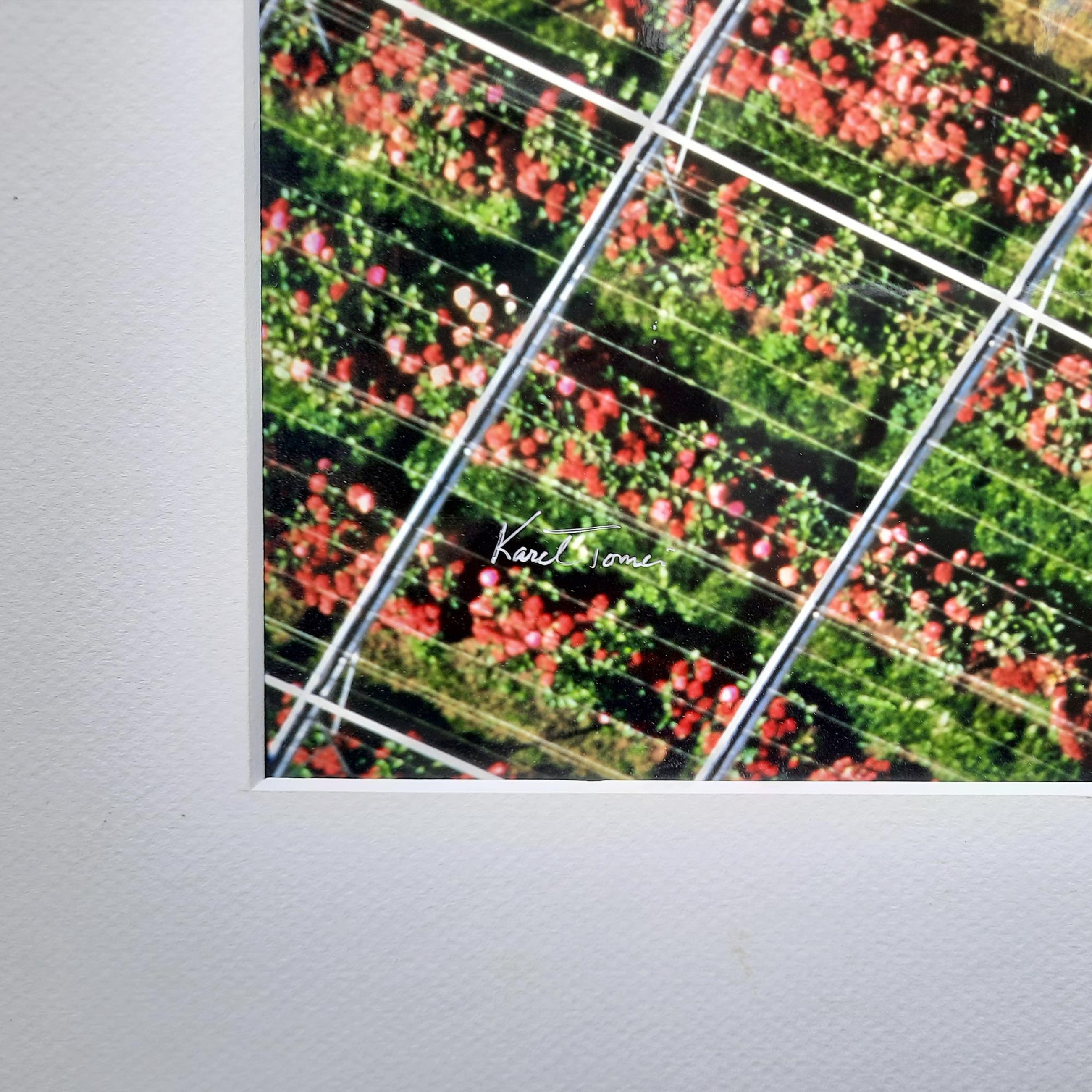 Foto’s van voor het digitale tijdperk en de drones. Authentieke foto’s, gemaakt met de analoge spiegelreflexcamera. De foto is voorzien van een passe-partout van 60 x 80 cm. Karel Tomeï (Rotterdam, 1941) is een Nederlands fotograaf die is gespecialiseerd in luchtfotografie. Hij publiceerde verschillende boeken met luchtfoto’s van Nederland en België. Verder fotografeerde hij de Antillen en Zuid-Afrika vanuit de lucht. Hij werd voor zijn werk meermaals met internationale prestigieuze prijzen bekroond. Zoals de ‘Kodak Commercial and Industrial Award’ (1988, Houston, USA) en de prestigieuze ABC jaarprijs (1997). Ook hangen zijn foto’s op jumboformaat aan de muur van de prijsvechters-pier op Schiphol. Zijn werk, zijn jarenlange ervaring als luchtfotograaf en zijn kijk op Nederland waren voor de redactie van het succesvolle VPRO-programma Nederland van boven een meer dan welkome bron van inspiratie.