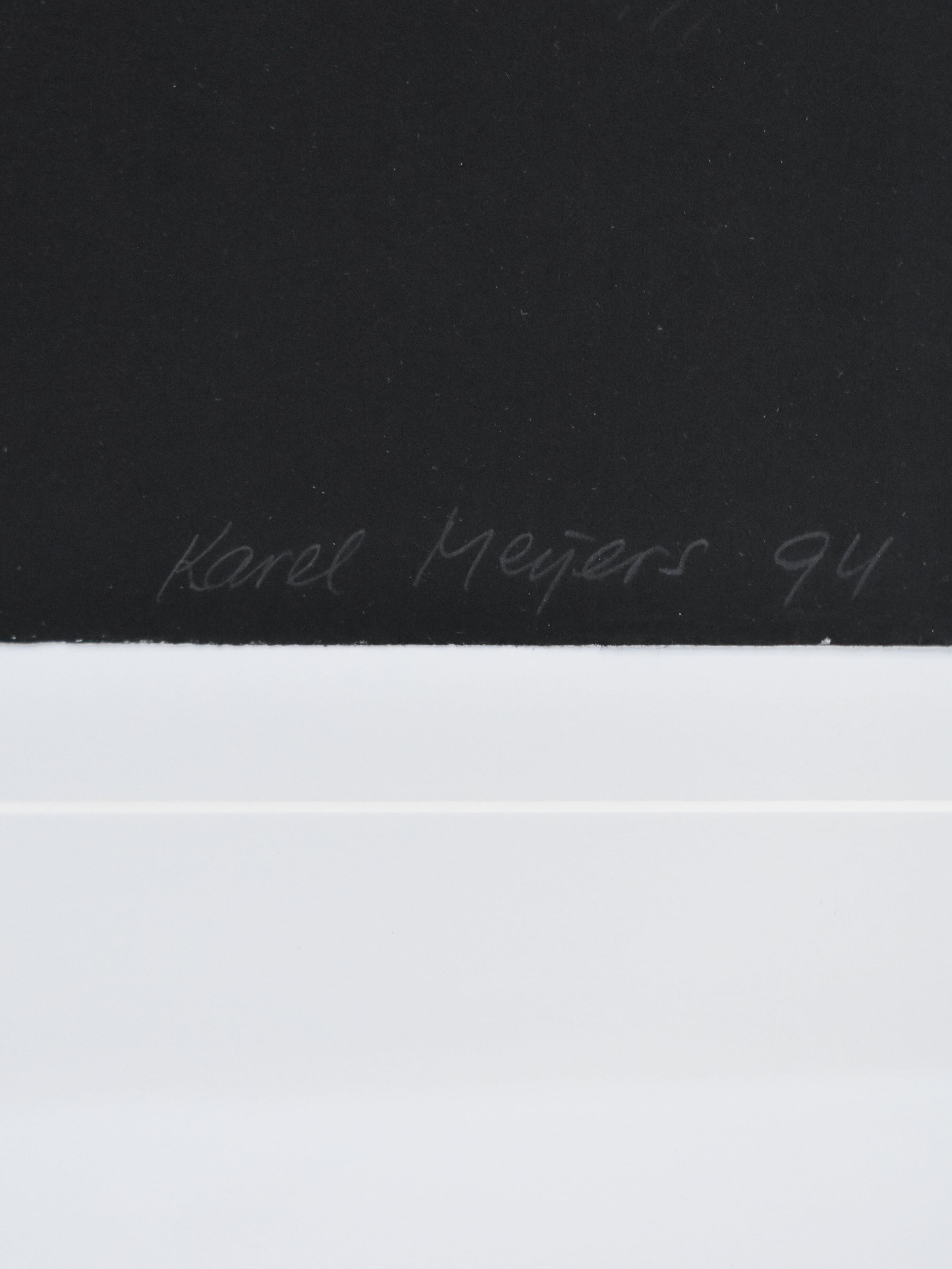 Aangezien het werk uit een bedrijfscollectie komt, kan de lijst wat gebruikssporen overeenkomstig met de leeftijd tonen, deze zijn eenvoudig te verwijderen door de houten lijst licht op te schuren