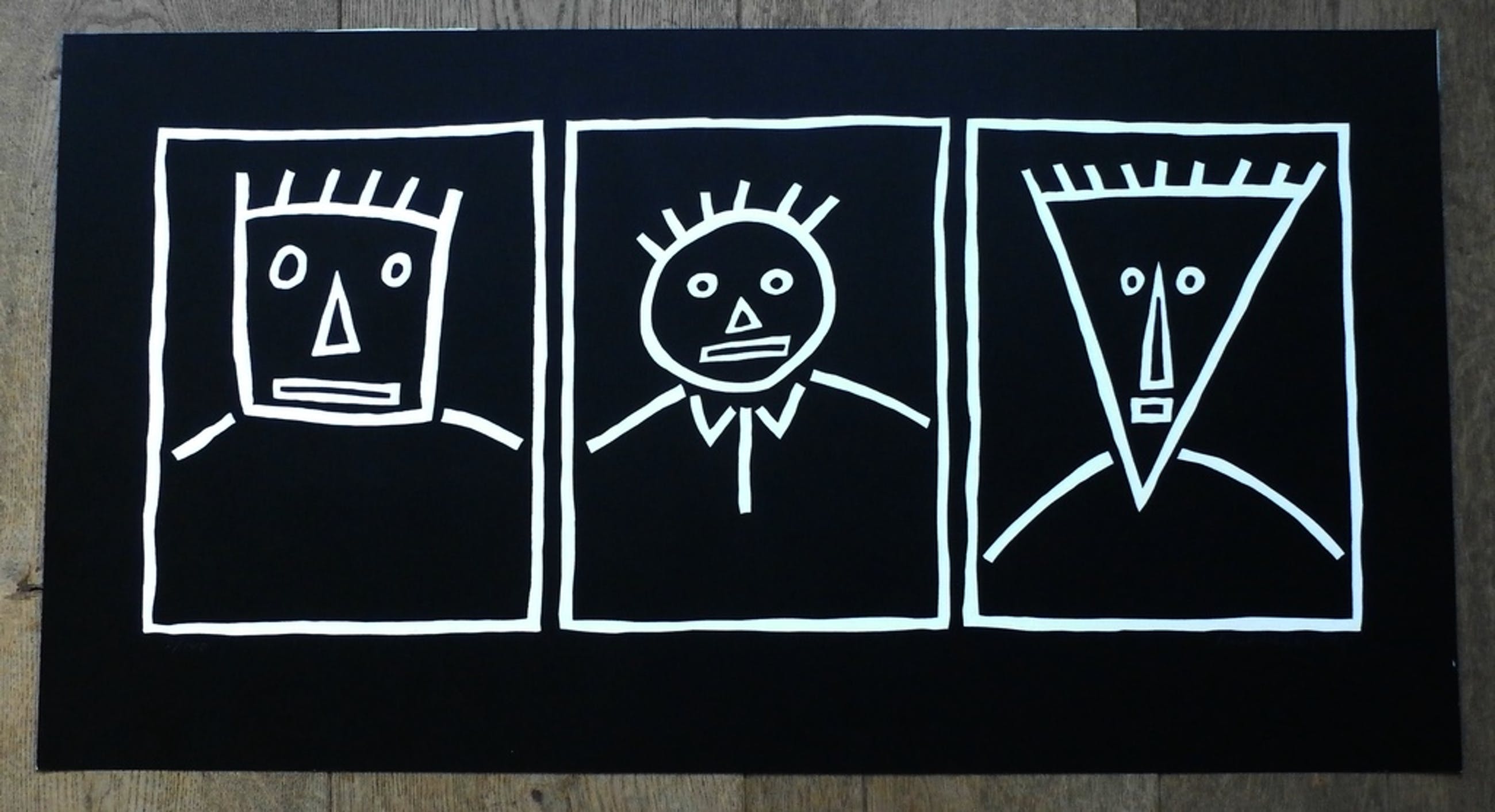 Zeefdruk van Karel Meijers uit 1985. Titel: 3 gezichten. Nummer: 2/140. Afmetingen blad: H40,5 x b75 cm. Rechtsonder door de kunstenaar gesigneerd met potlood. De authenciteit van het, aangeboden, werk wordt voor 100% gegarandeerd. Herkomst: collectie ABN AMRO. Een certificaat kan, op aanvraag, worden meegeleverd