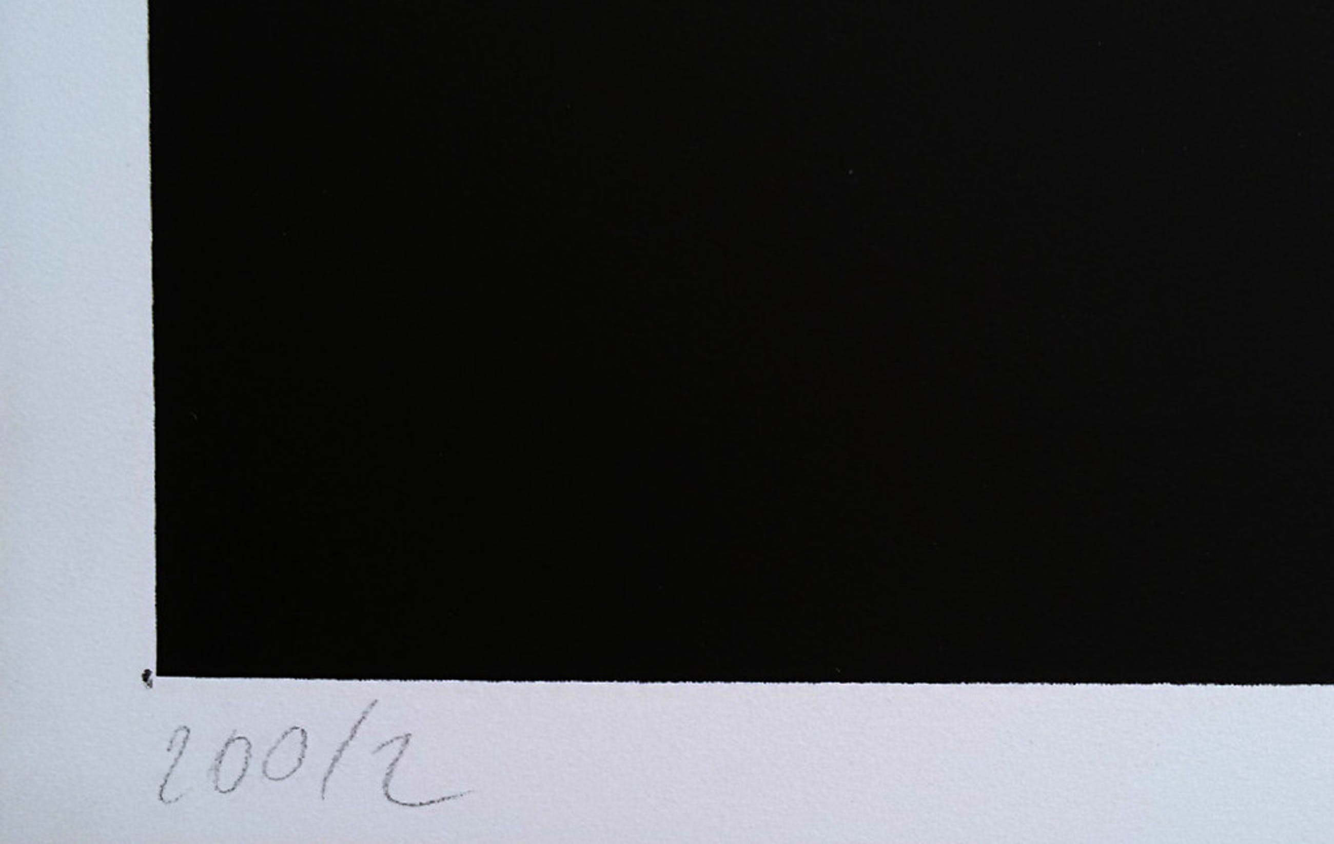 Karakteristiek, geometrisch werk van de Tsjechische kunstenaar Karel Novosad, vooral bekend in Duitsland en natuurlijk Tsjechië. Zeefdruk op wit plastic, met potlood gesigneerd, gedateerd (73) en genummerd (2/200). In uitstekende conditie. Omdat bijgaande foto's digitale representaties van de werkelijkheid zijn lijken de lijnen korrelig (=pixelatie), maar in werkelijkheid zijn de lijnen superstrak.